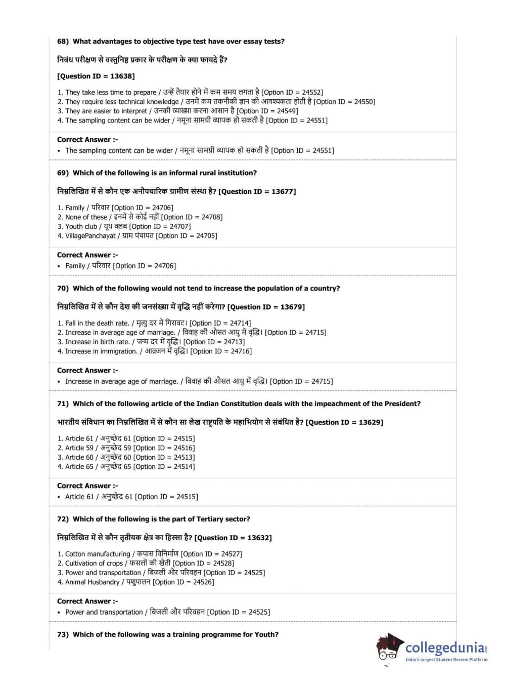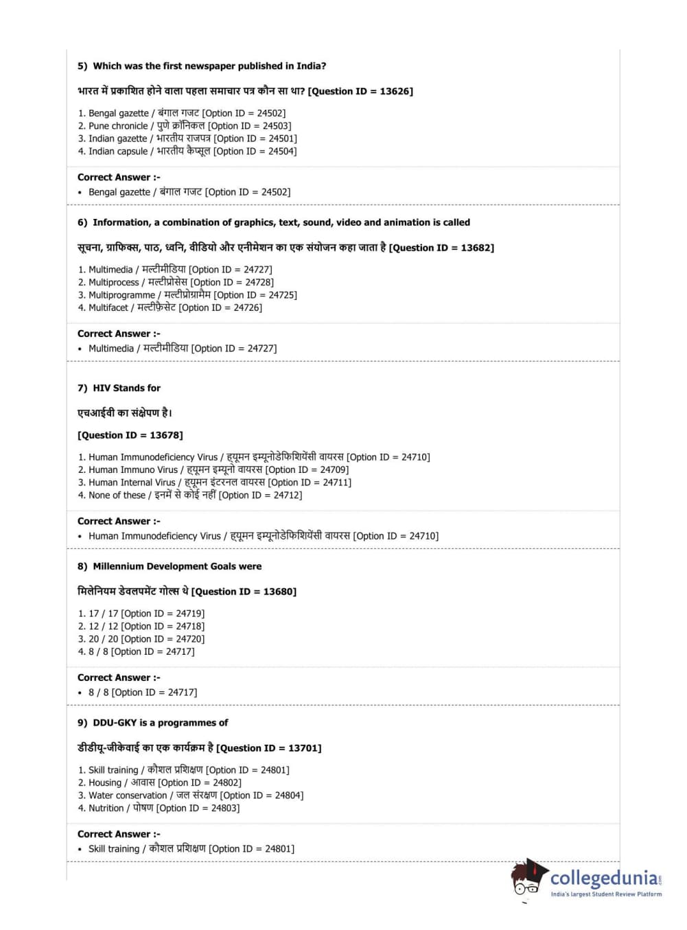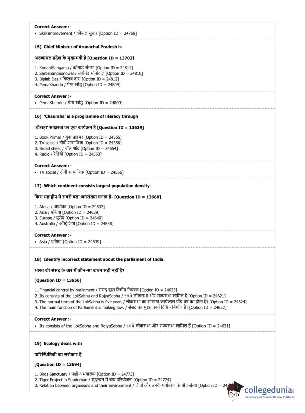 | DUET Subject | Question Paper with Answer Key PDF |