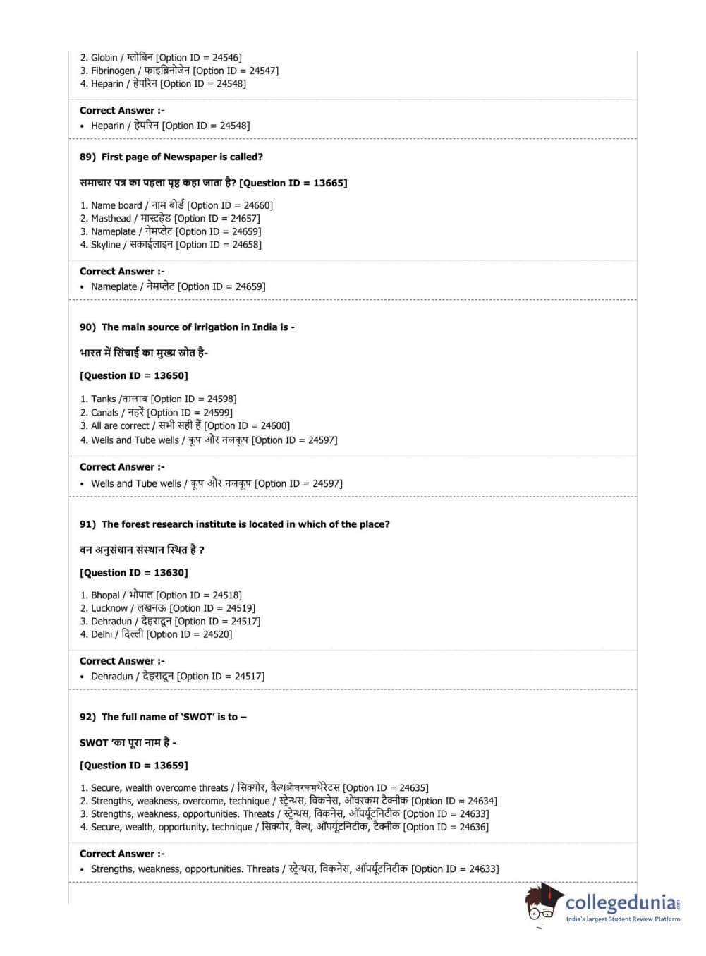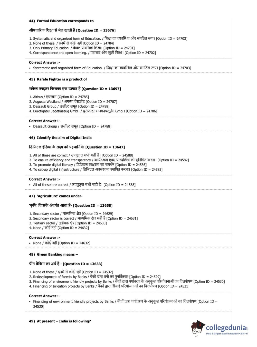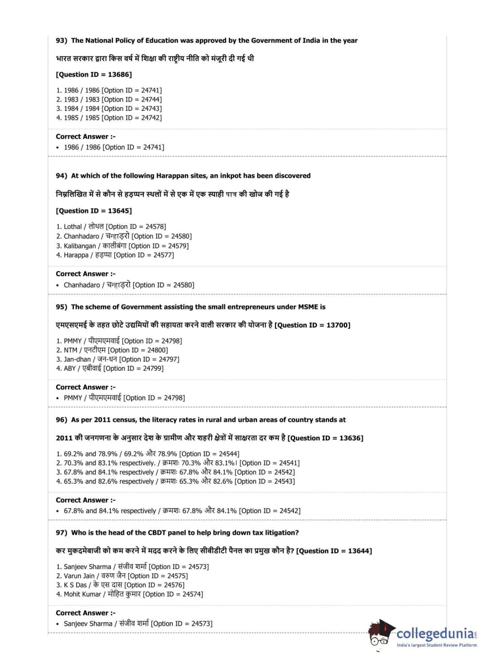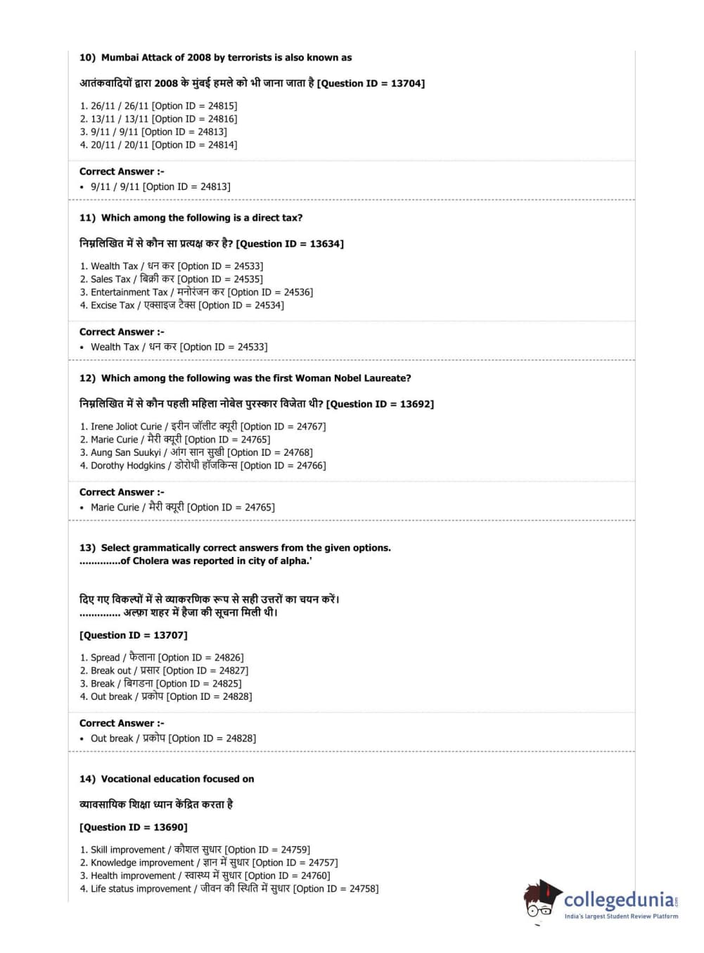 | DUET Subject | Question Paper with Answer Key PDF |