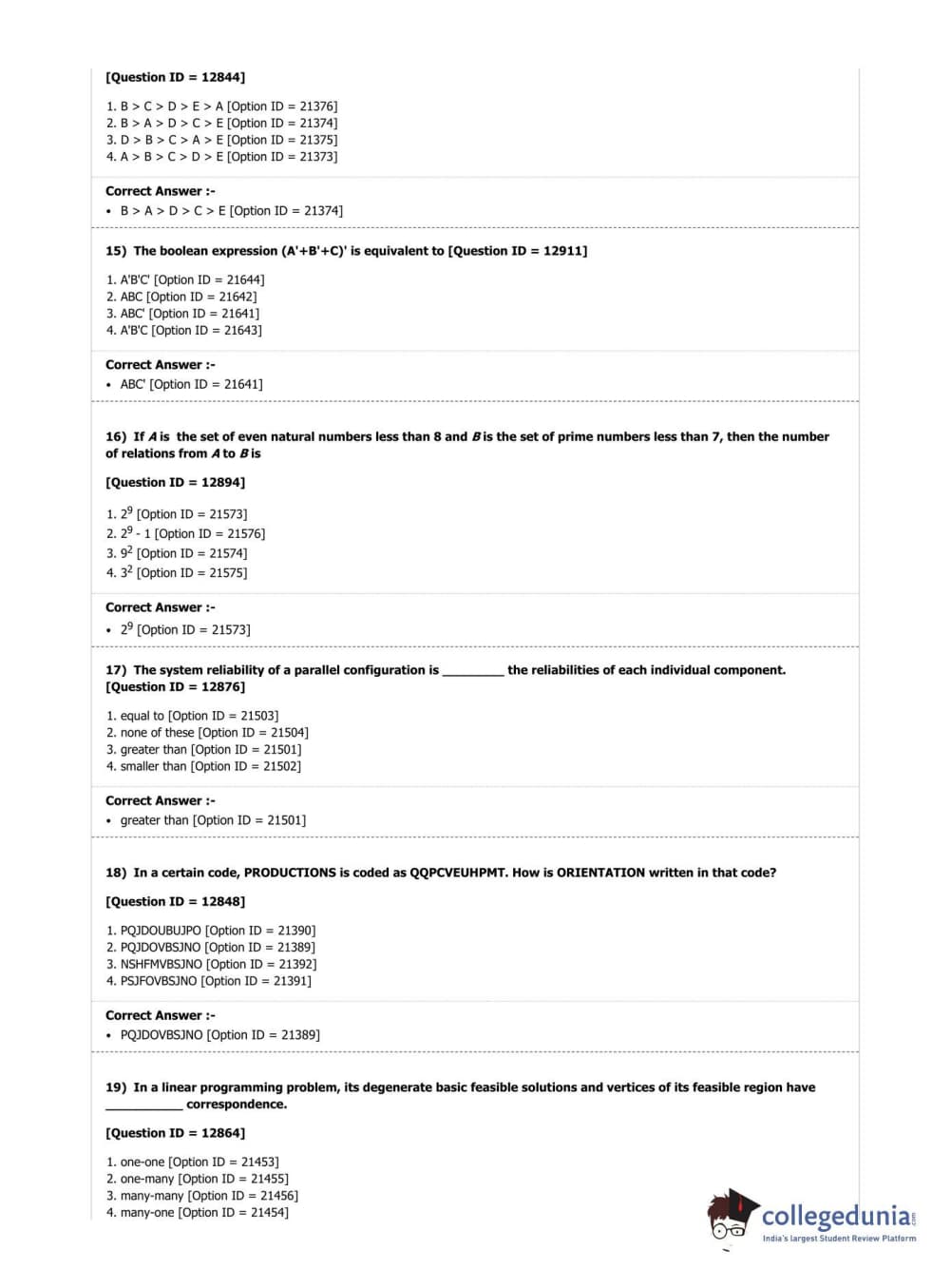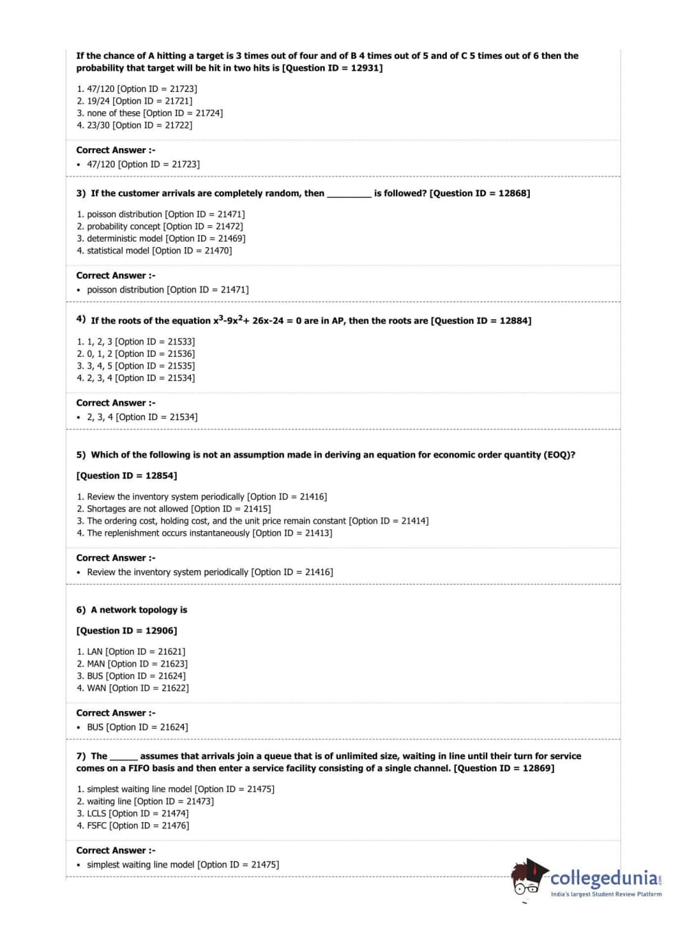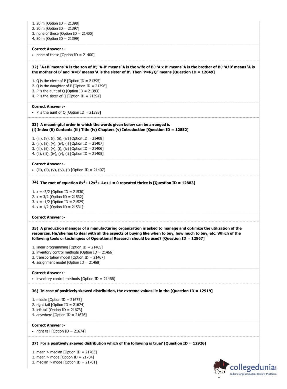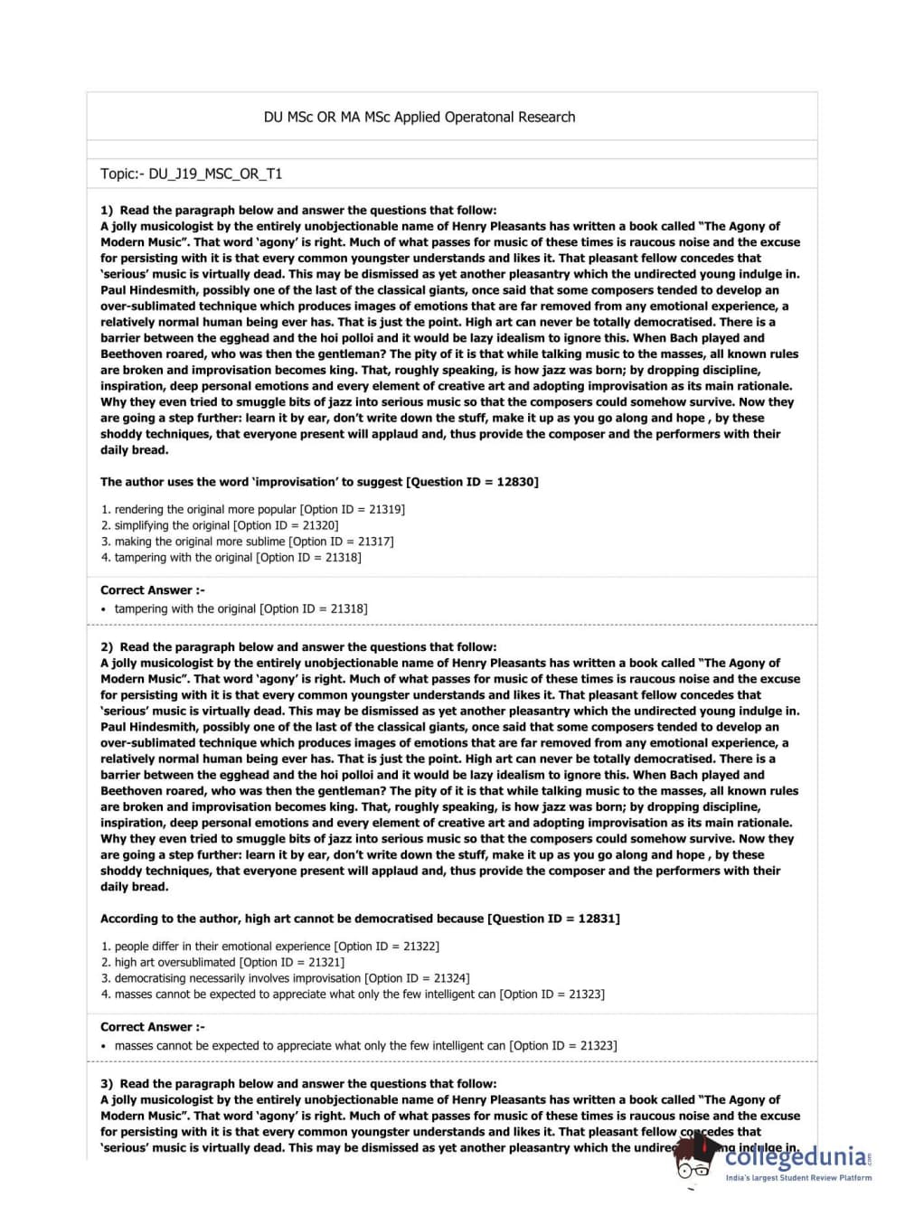 DUET 2019 M.A./M.Sc. Applied Operational Research Question Paper with Answer Key PDF Shift 3