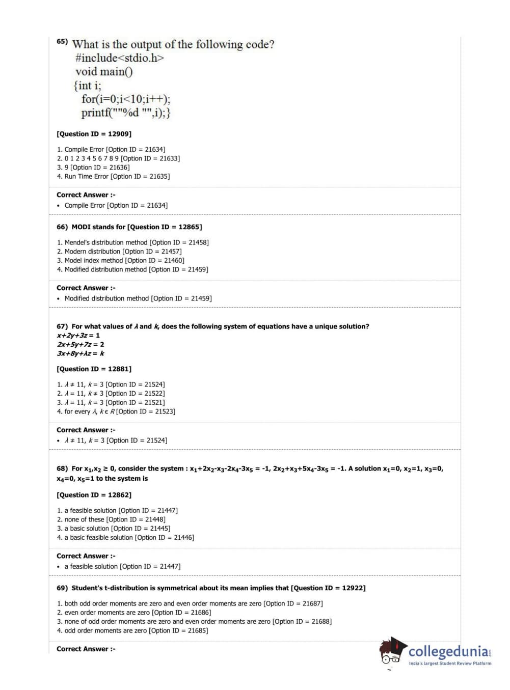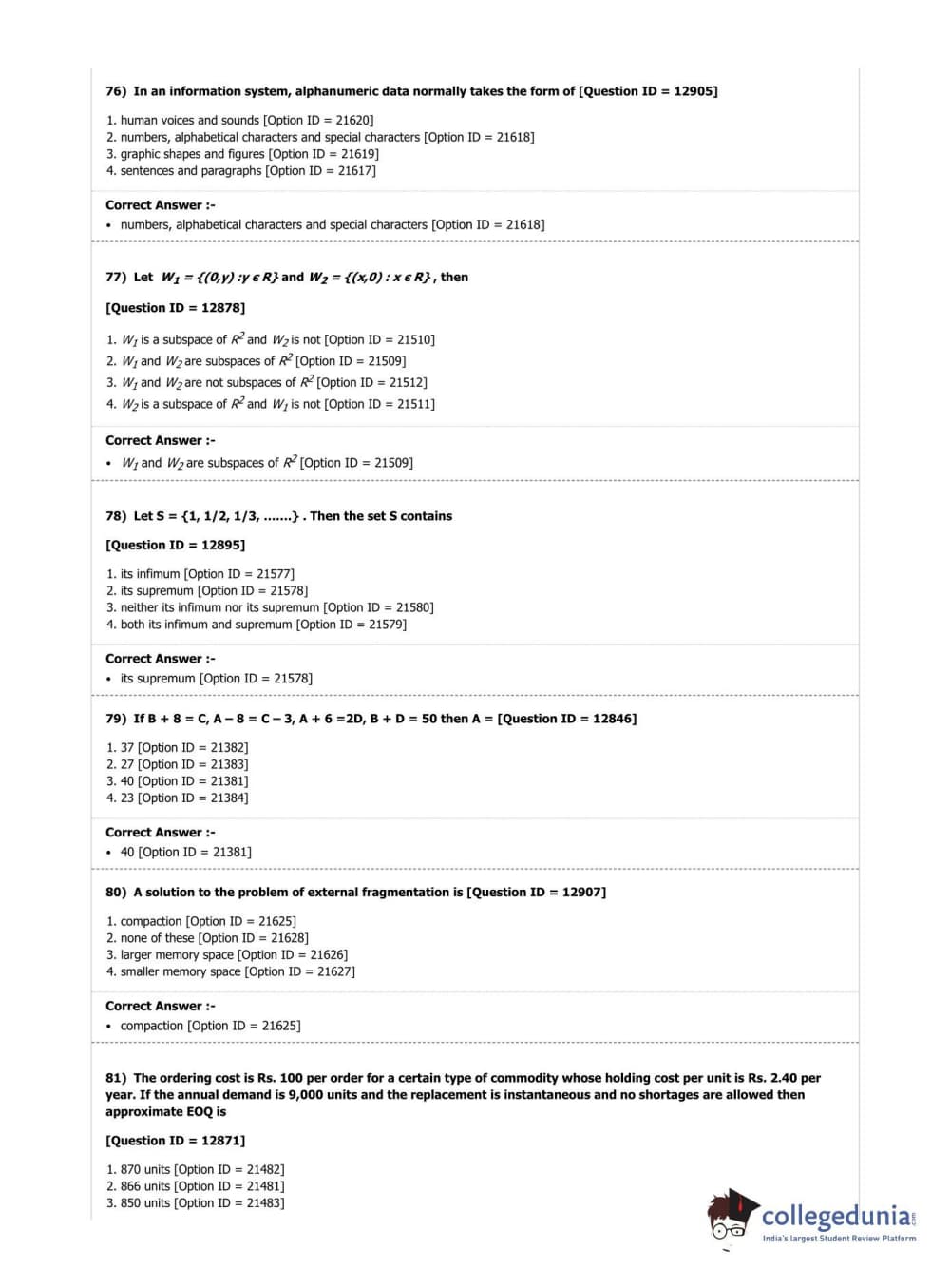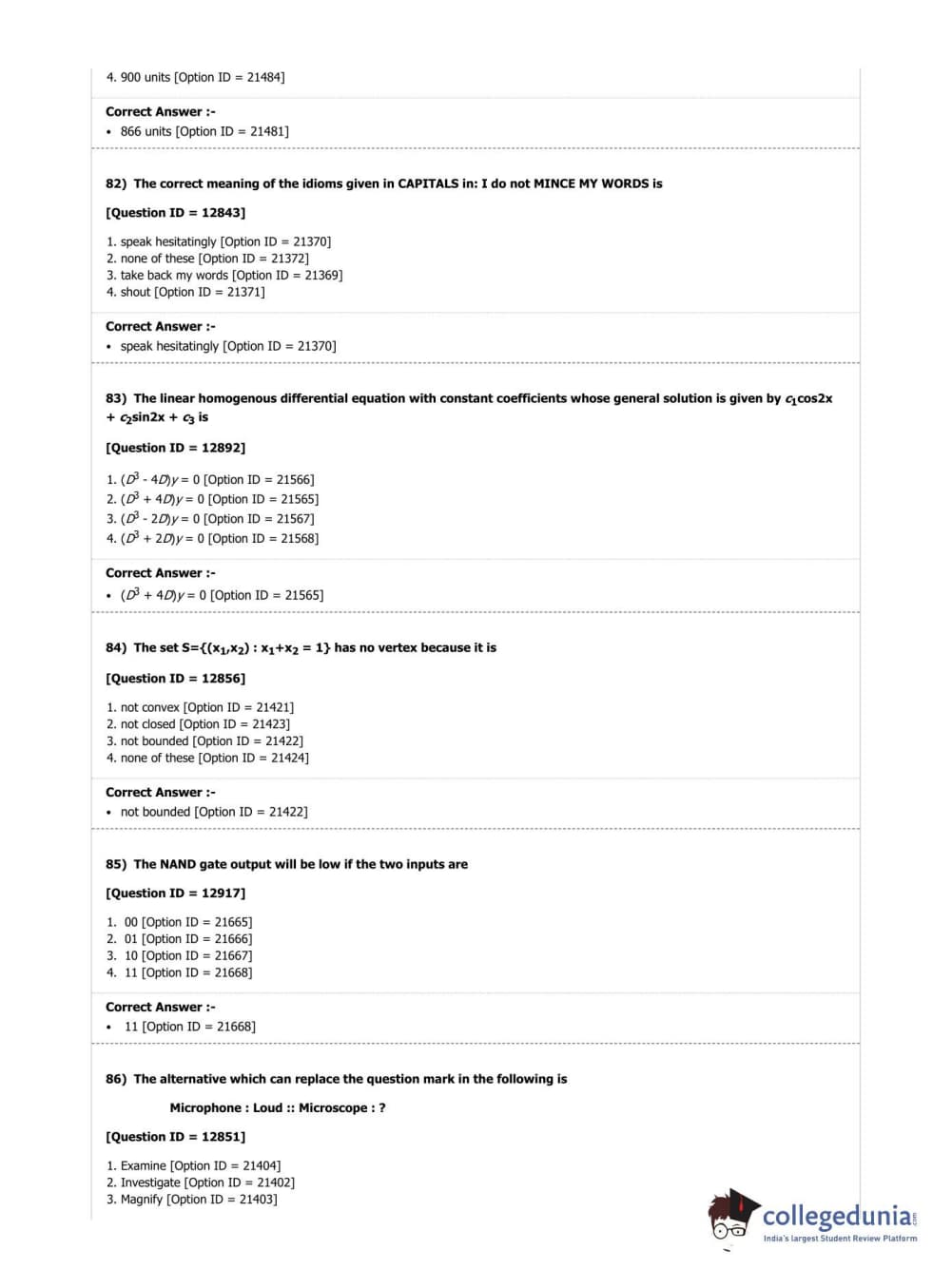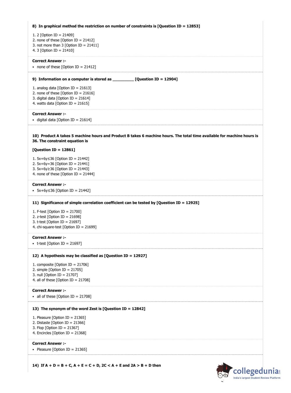 | DUET Subject | Question Paper with Answer Key PDF |