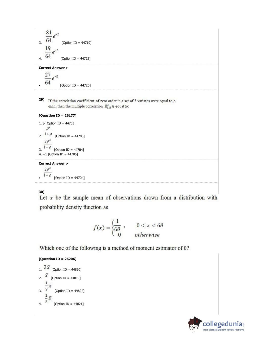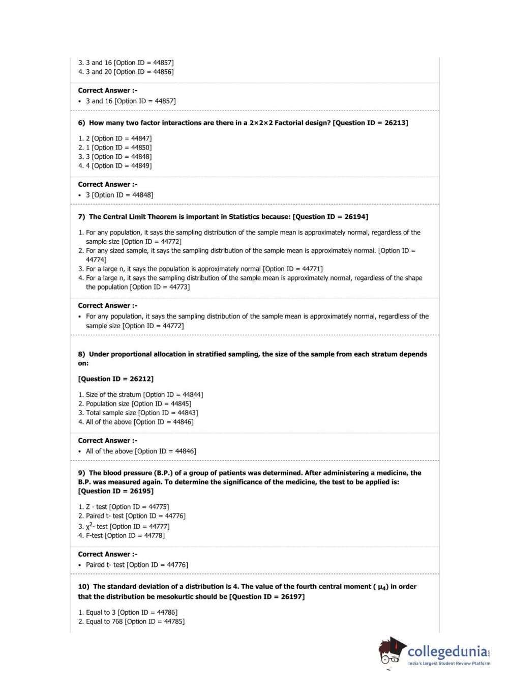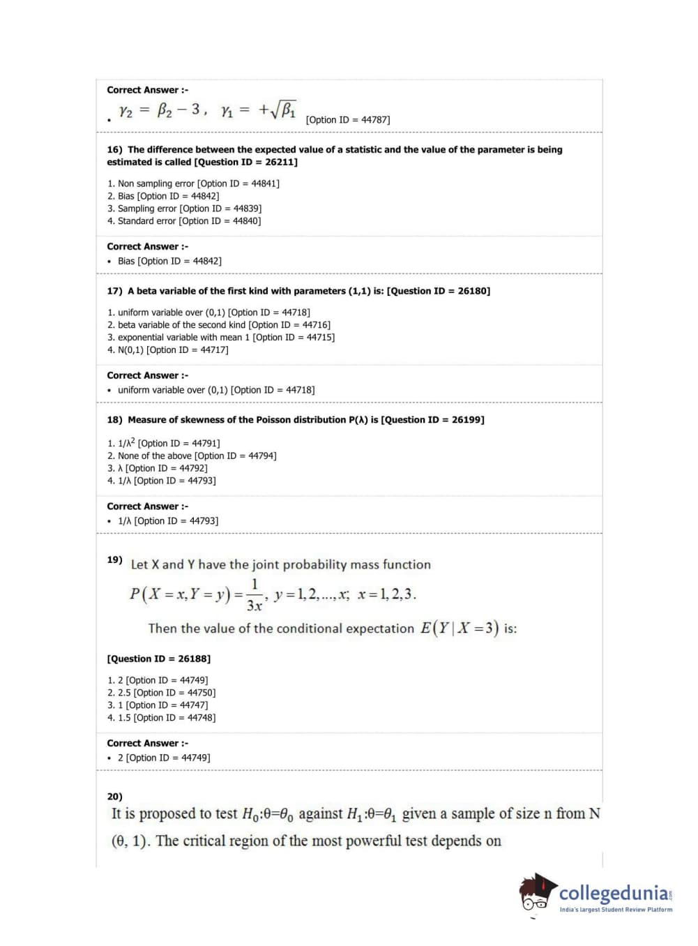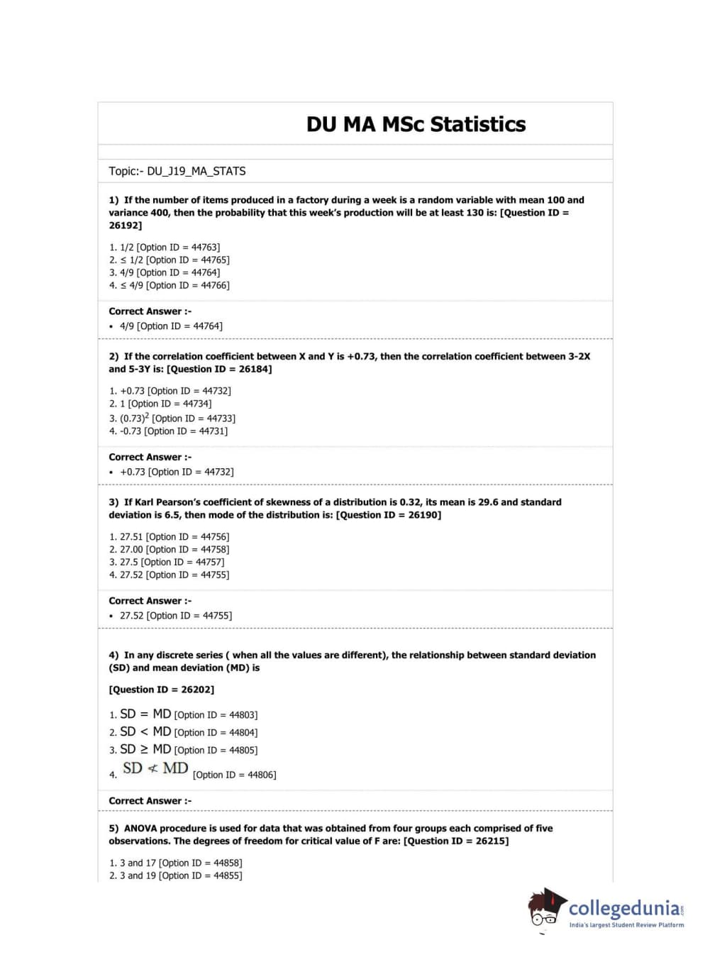 DUET 2019 M.A./M.Sc. Statistics Question Paper with Answer Key PDF Shift 1