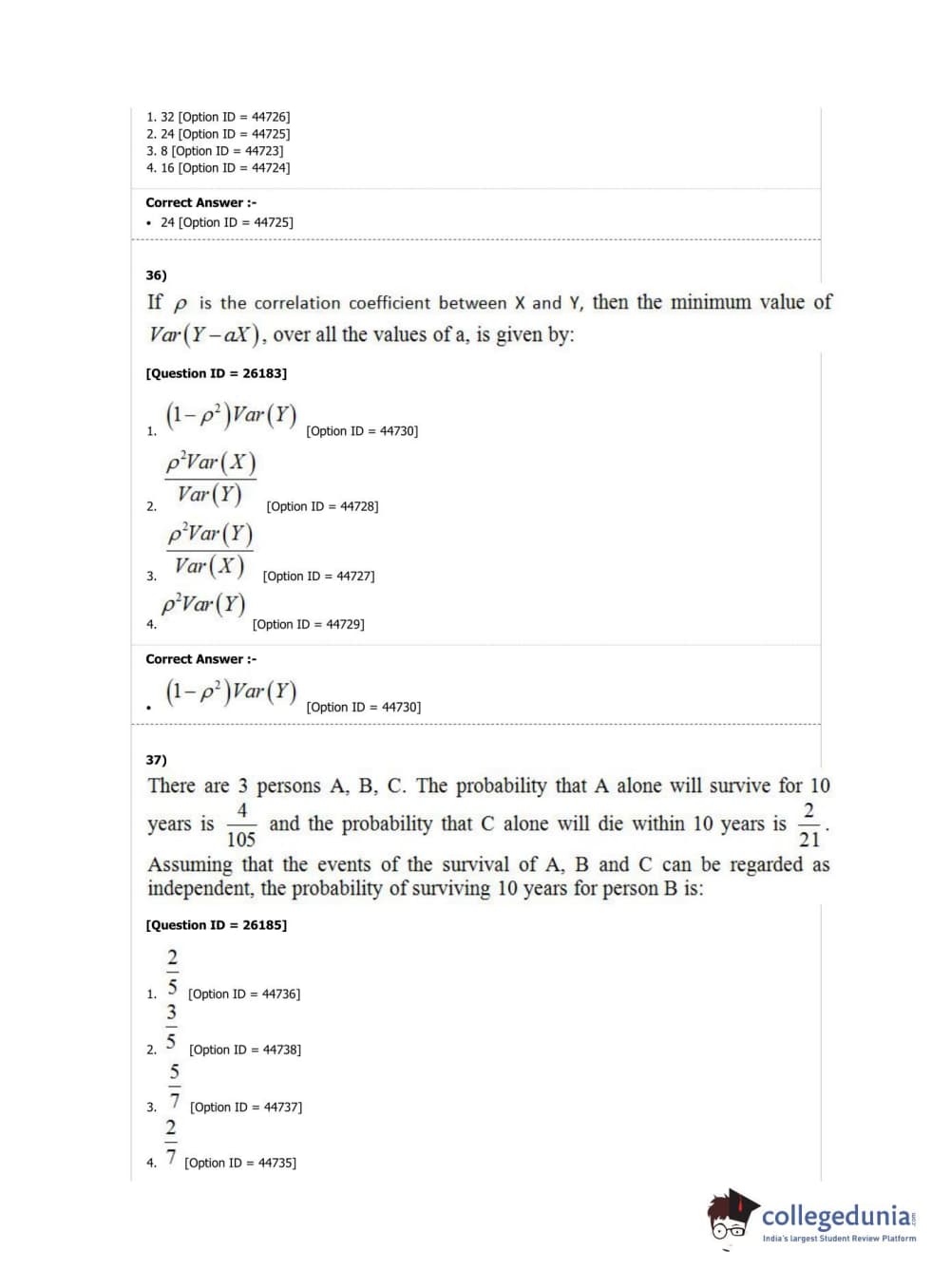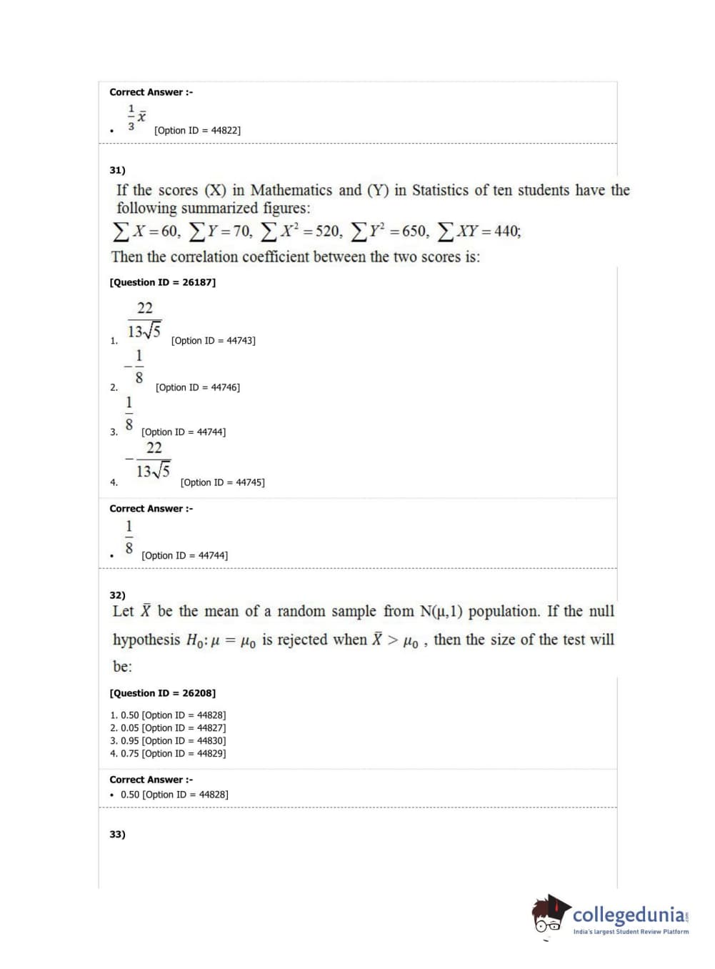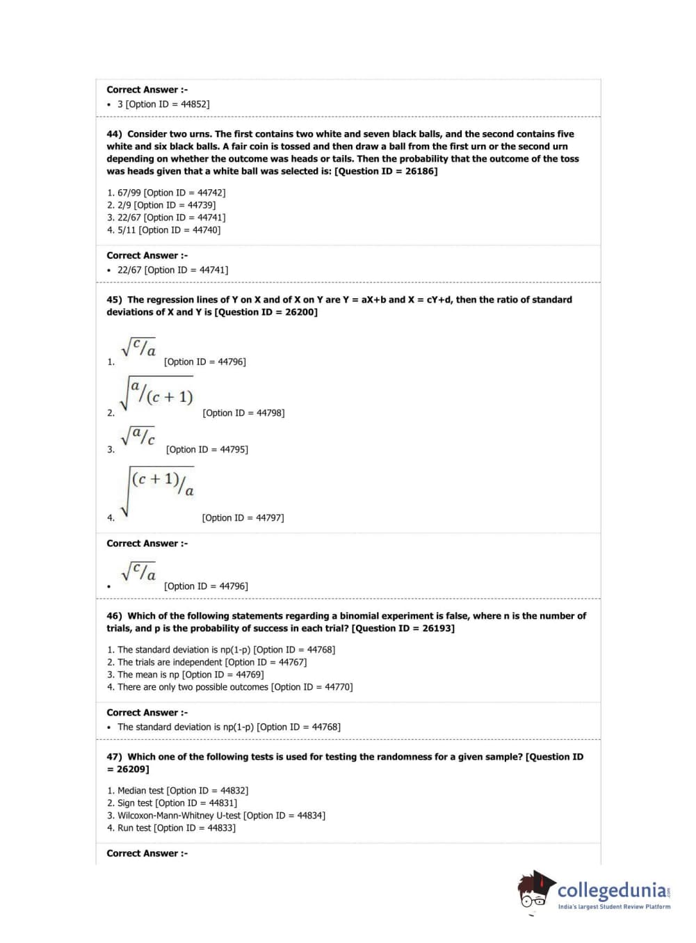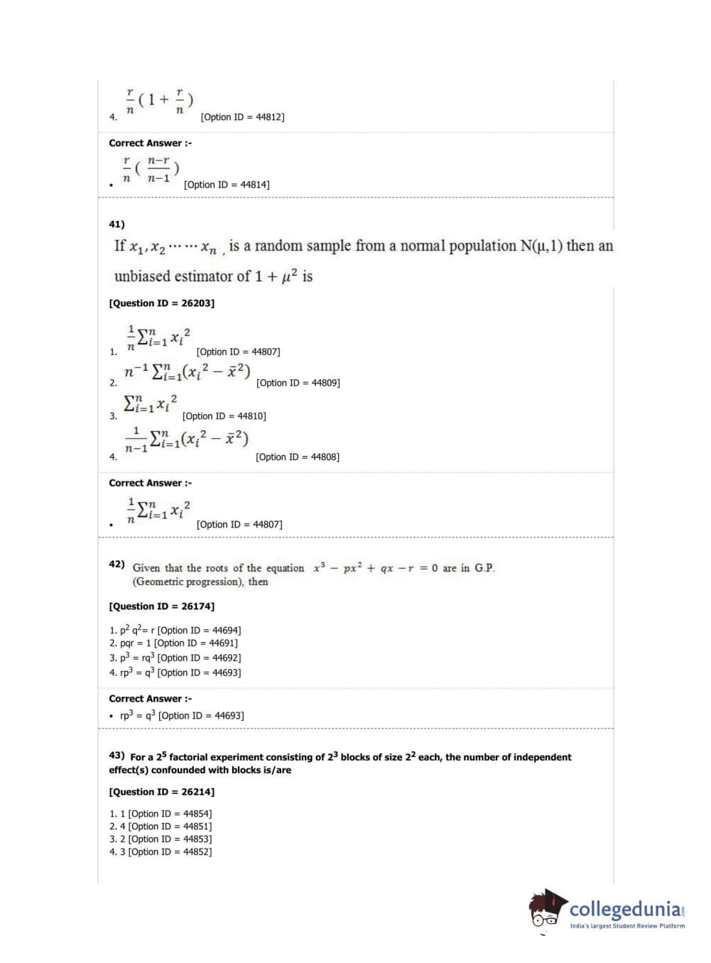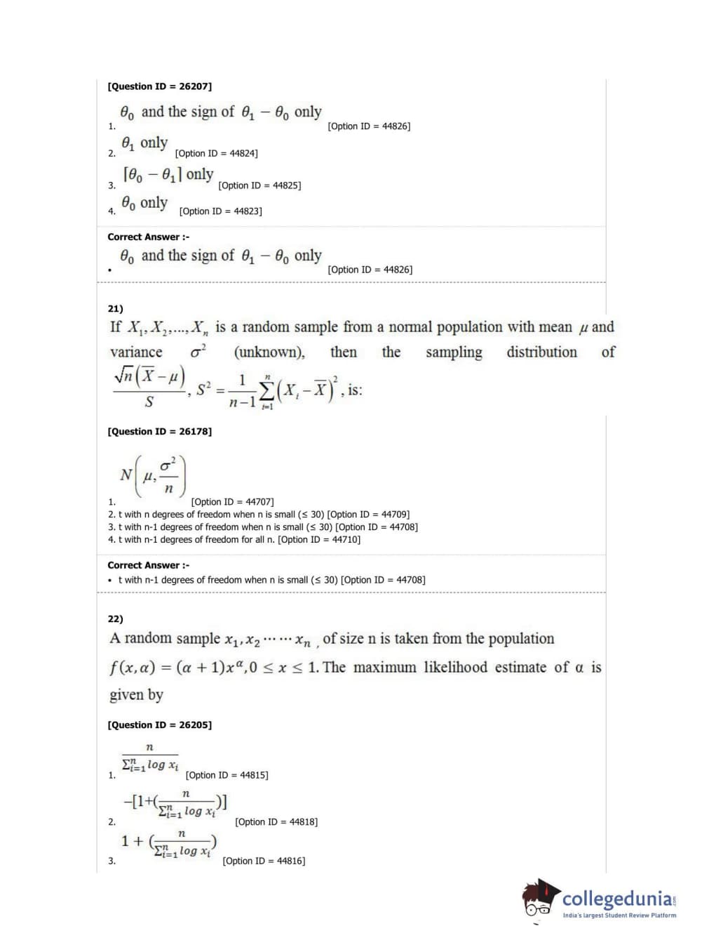 DUET 2019 M.A./M.Sc. Statistics Question Paper with Answer Key PDF Shift 1