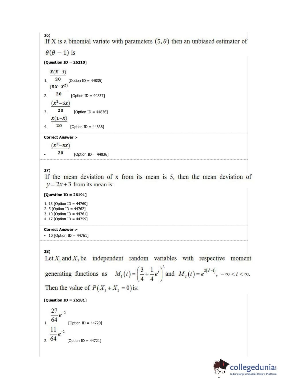 DUET 2019 M.A./M.Sc. Statistics Question paper with answer key pdf conducted on May 7, 2019 in Shift 1 is available for download. The exam was successfully organized by National Testing Agency (NTA). The question paper comprised a total of 50 questions.