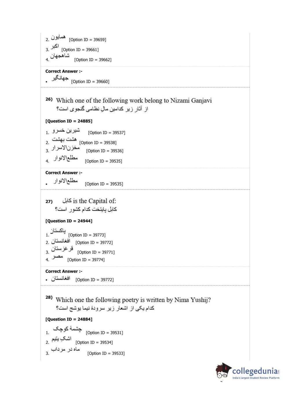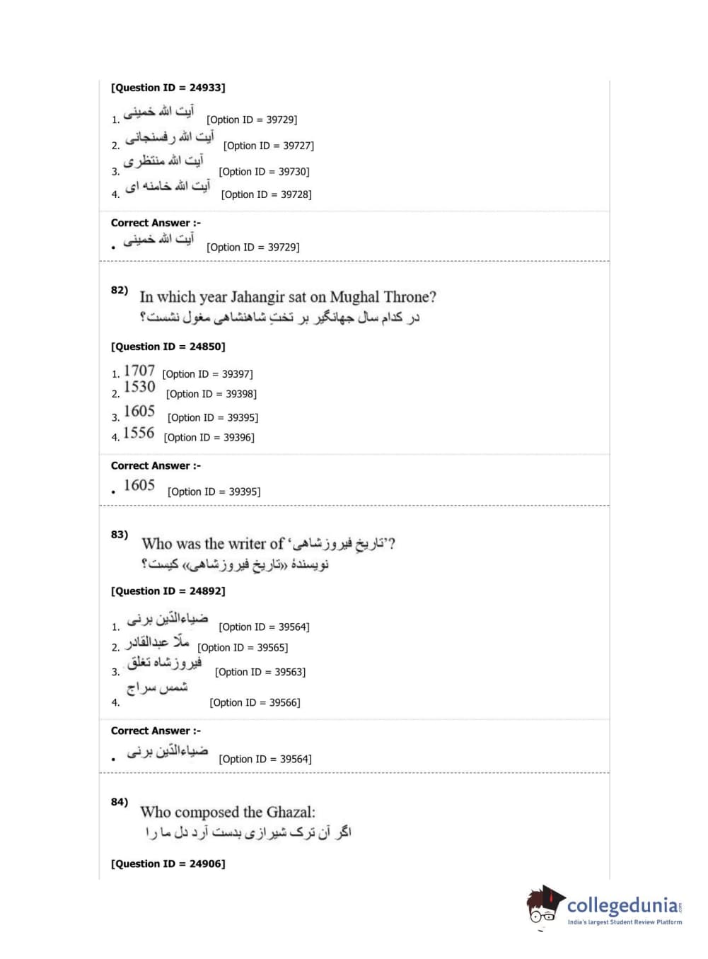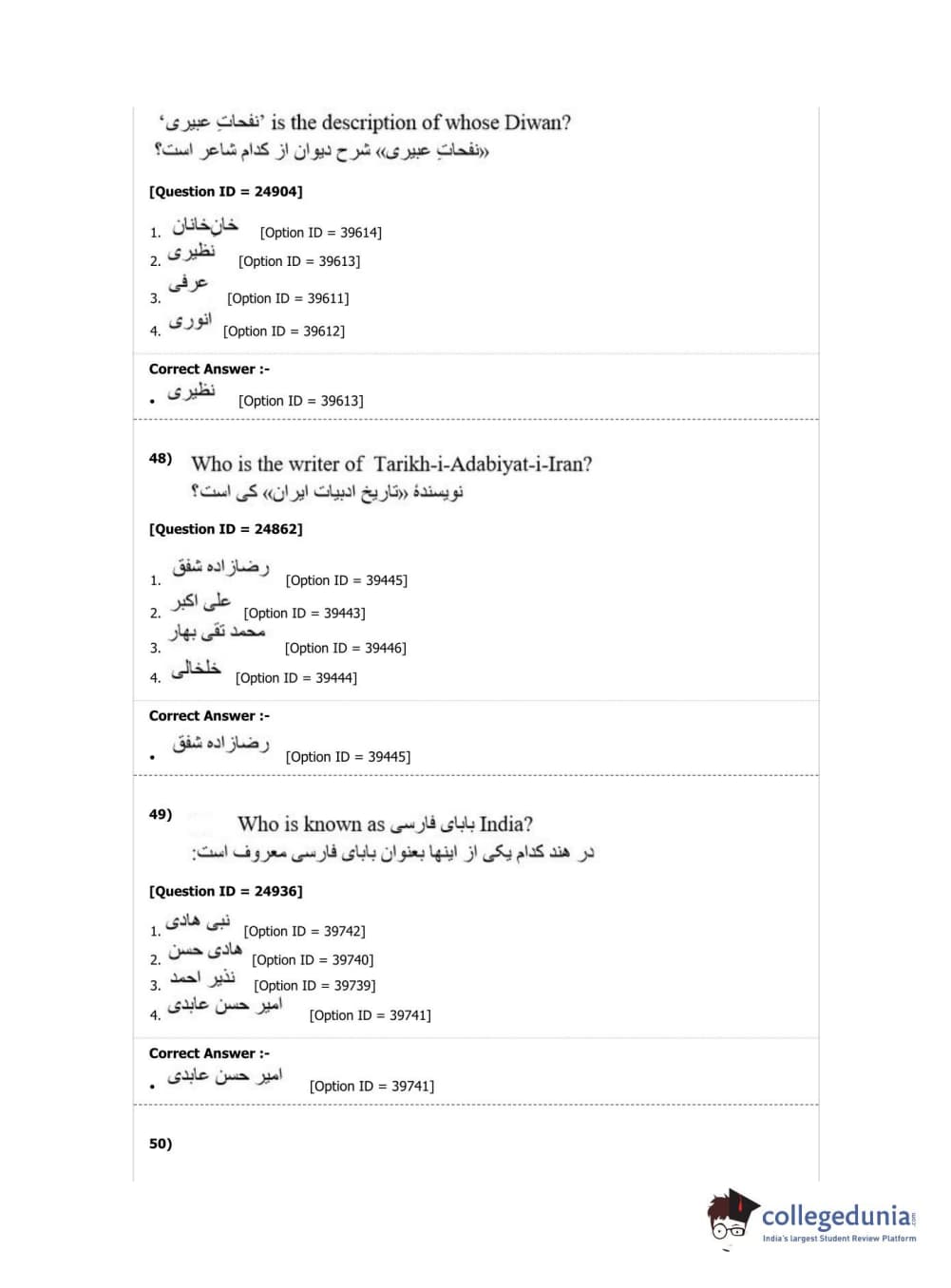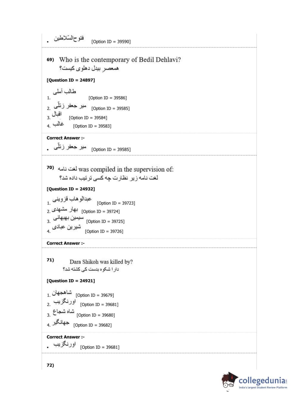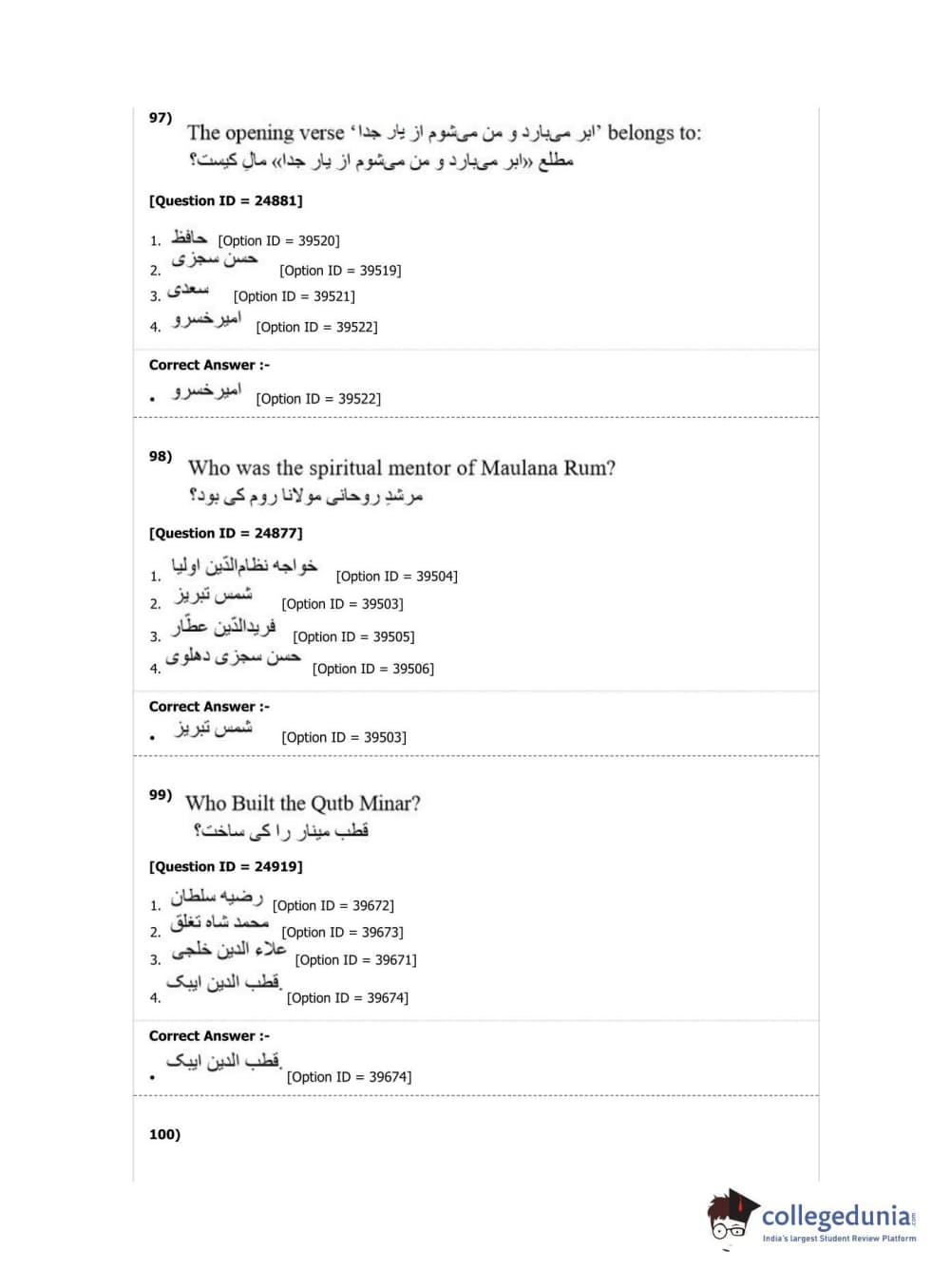 DUET 2019 M.A. Persian Question Paper with Answer Key PDF Shift 2