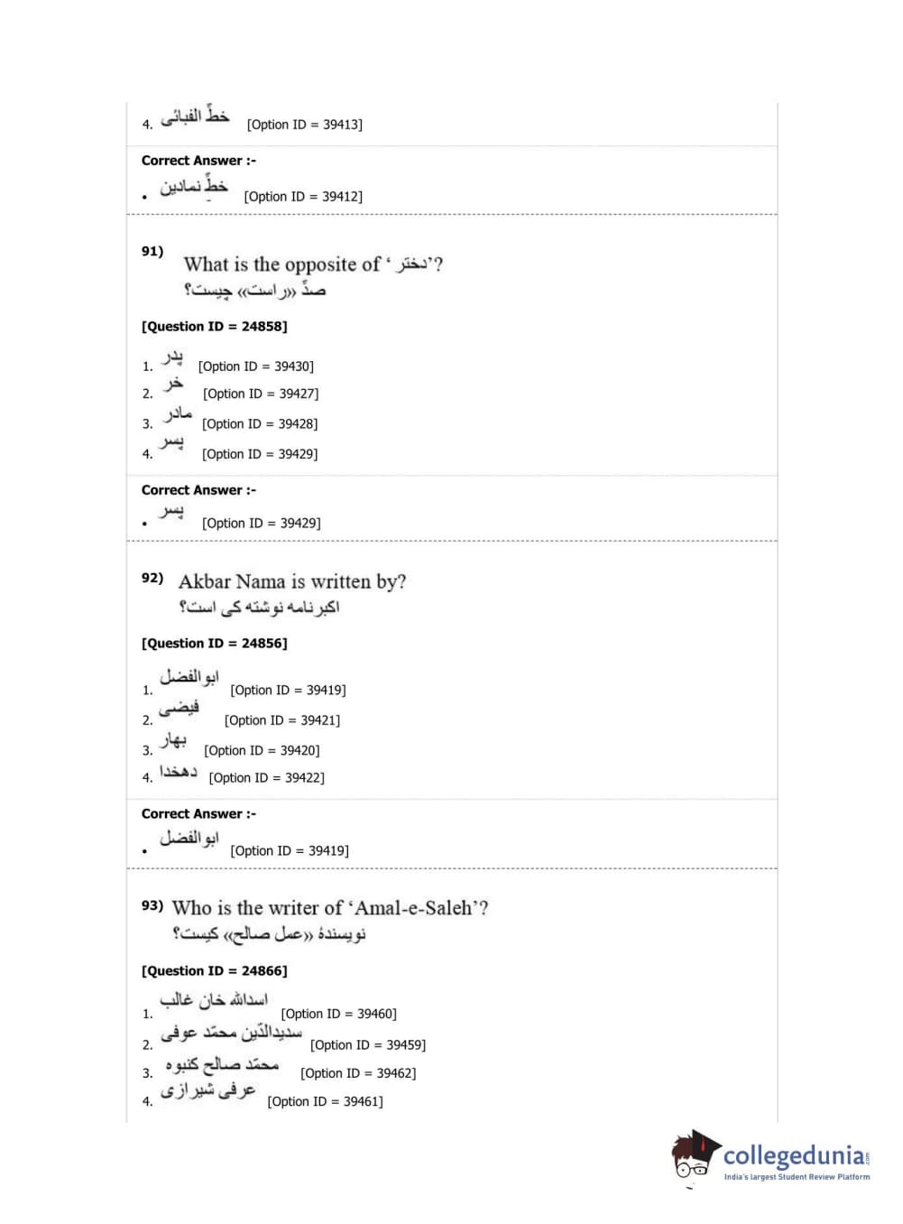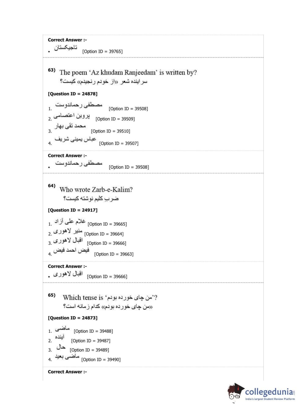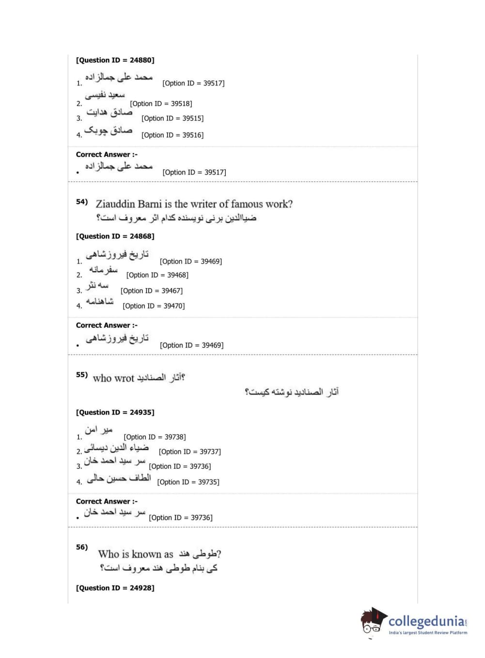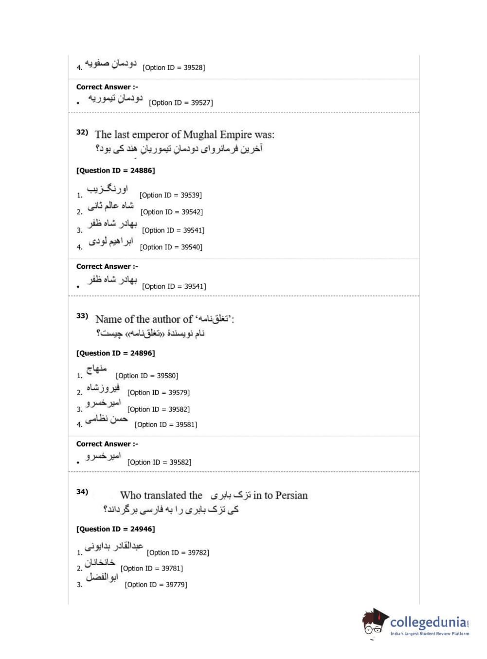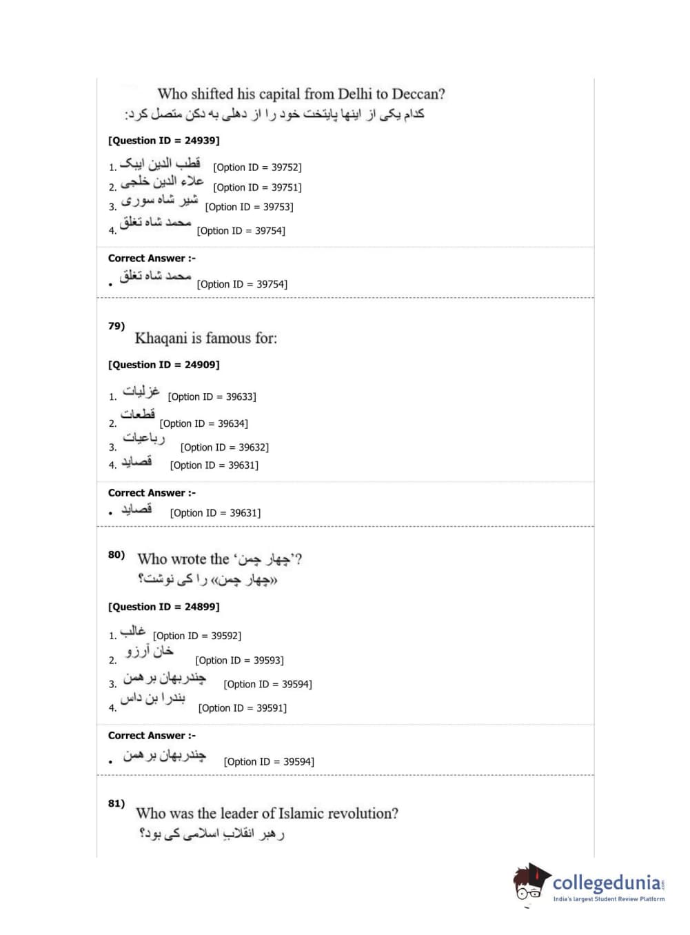 DUET 2019 M.A. Persian Question Paper with Answer Key PDF Shift 2