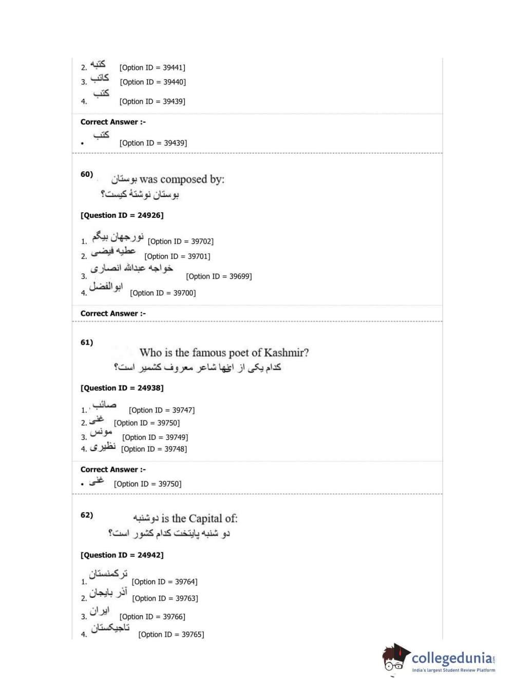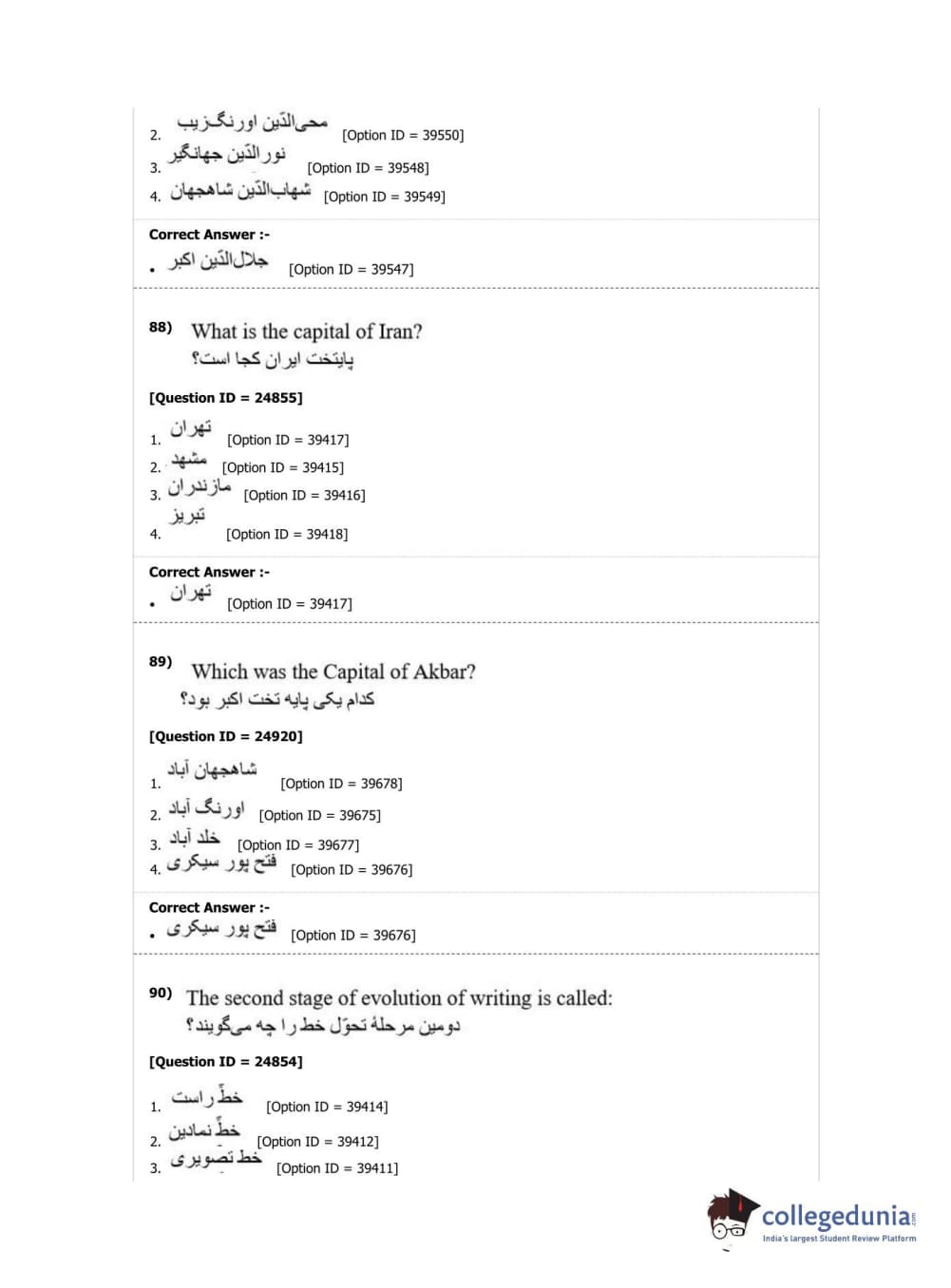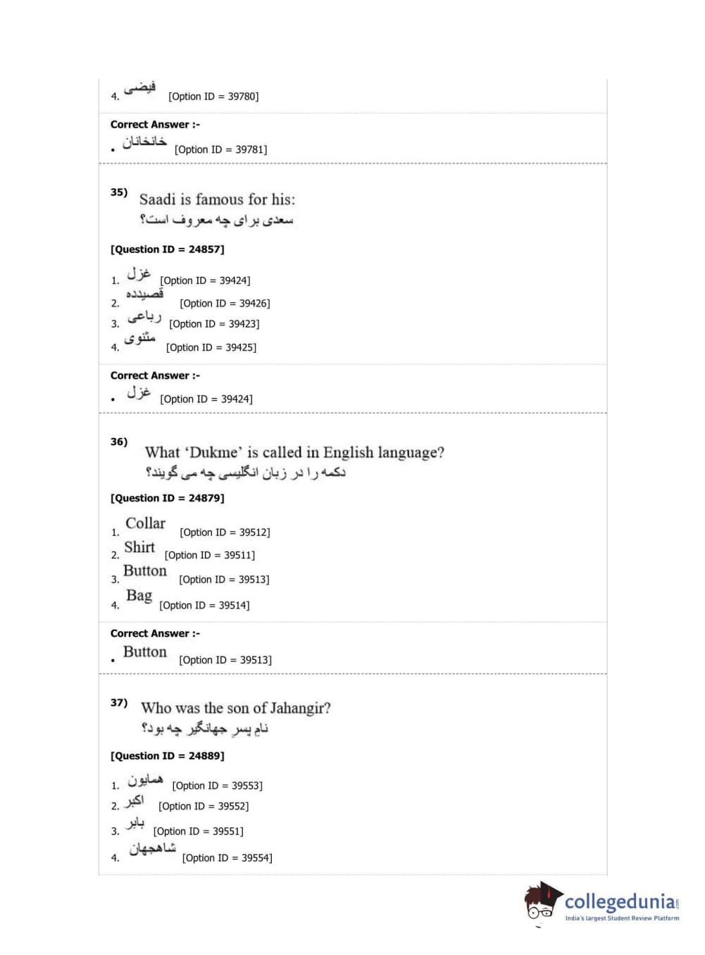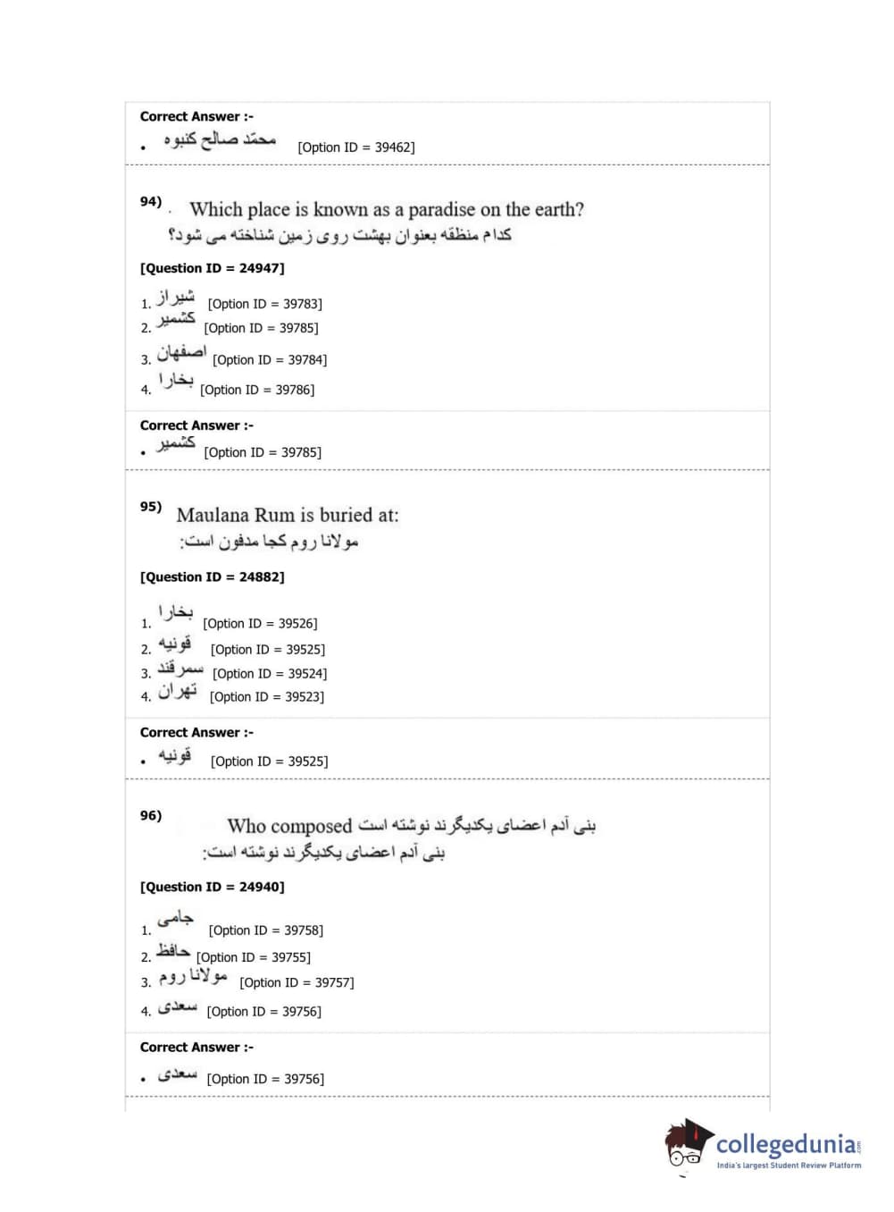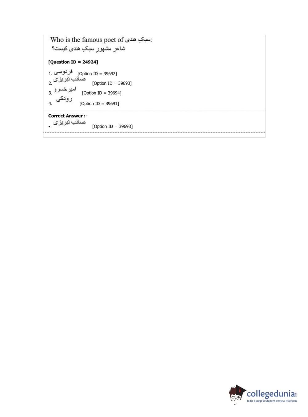 DUET 2019 M.A. Persian Question Paper with Answer Key PDF Shift 2