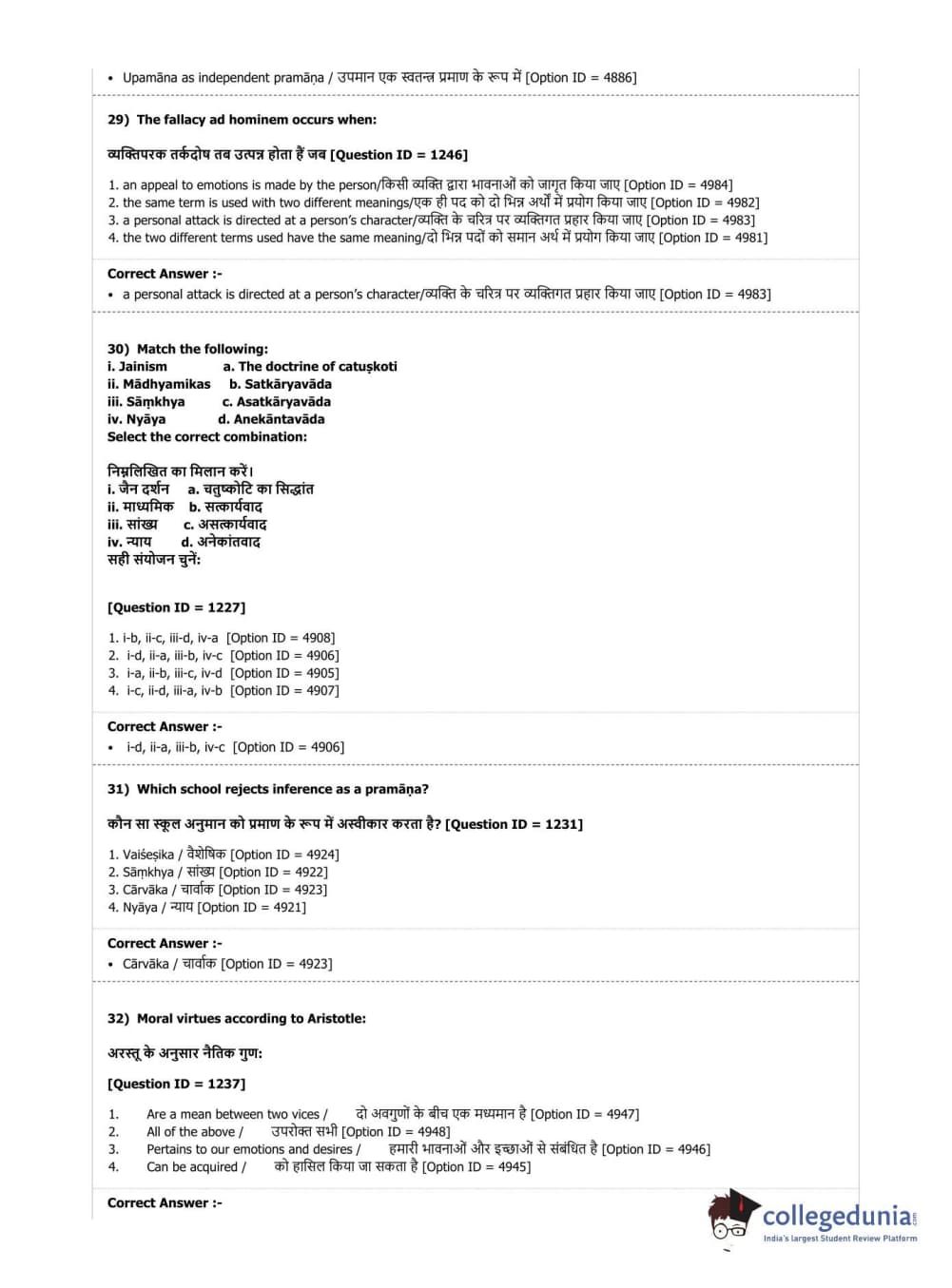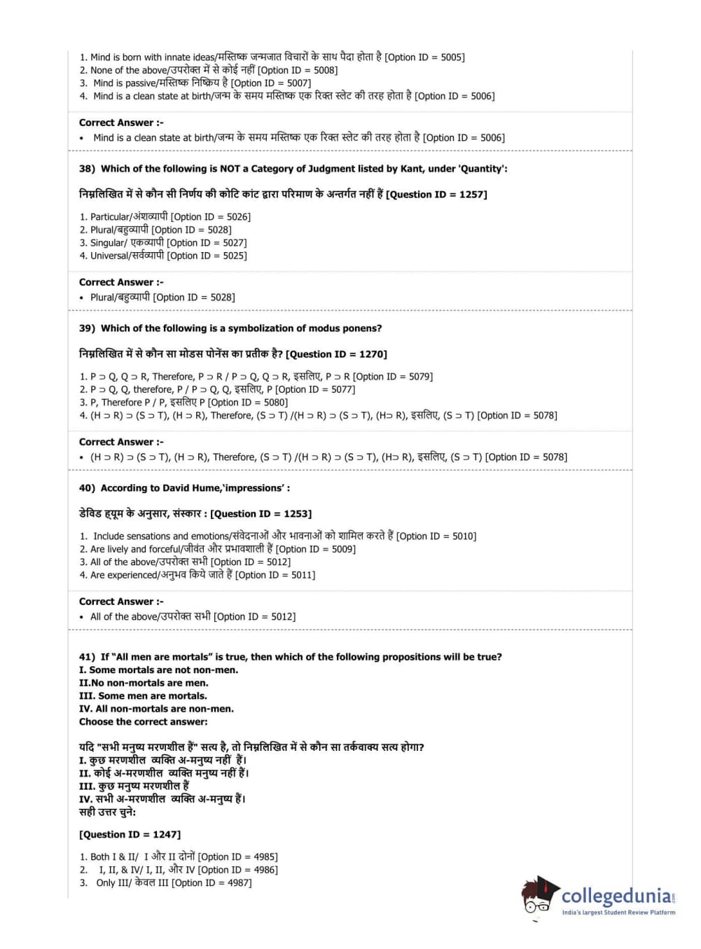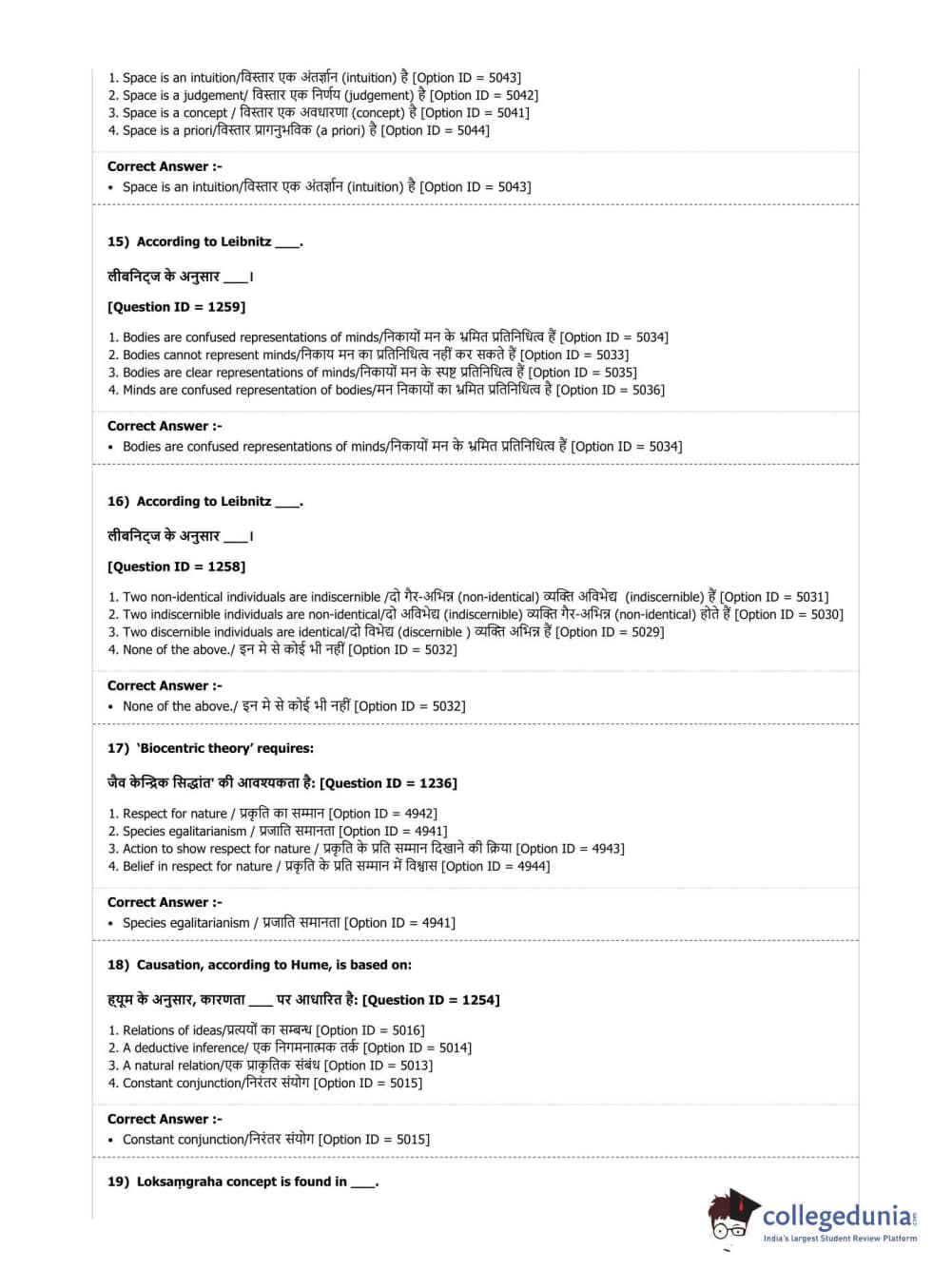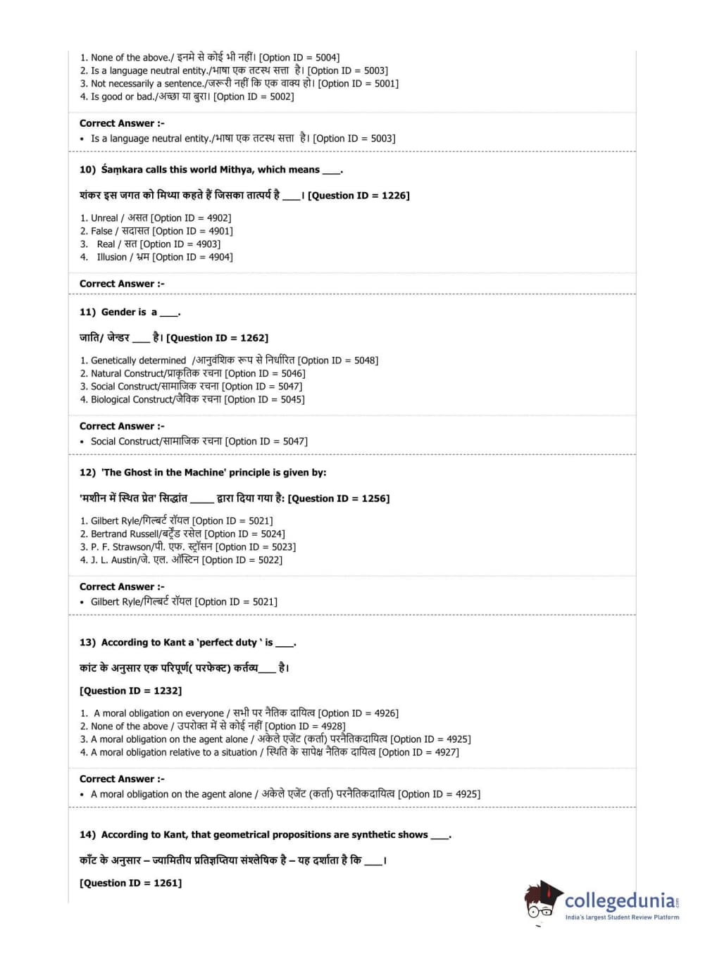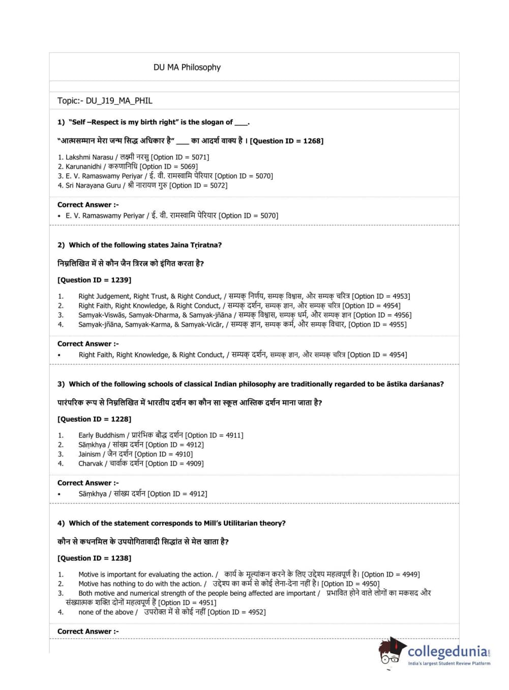 DUET 2019 M.A. Philosophy Question Paper with Answer Key PDF Shift 1