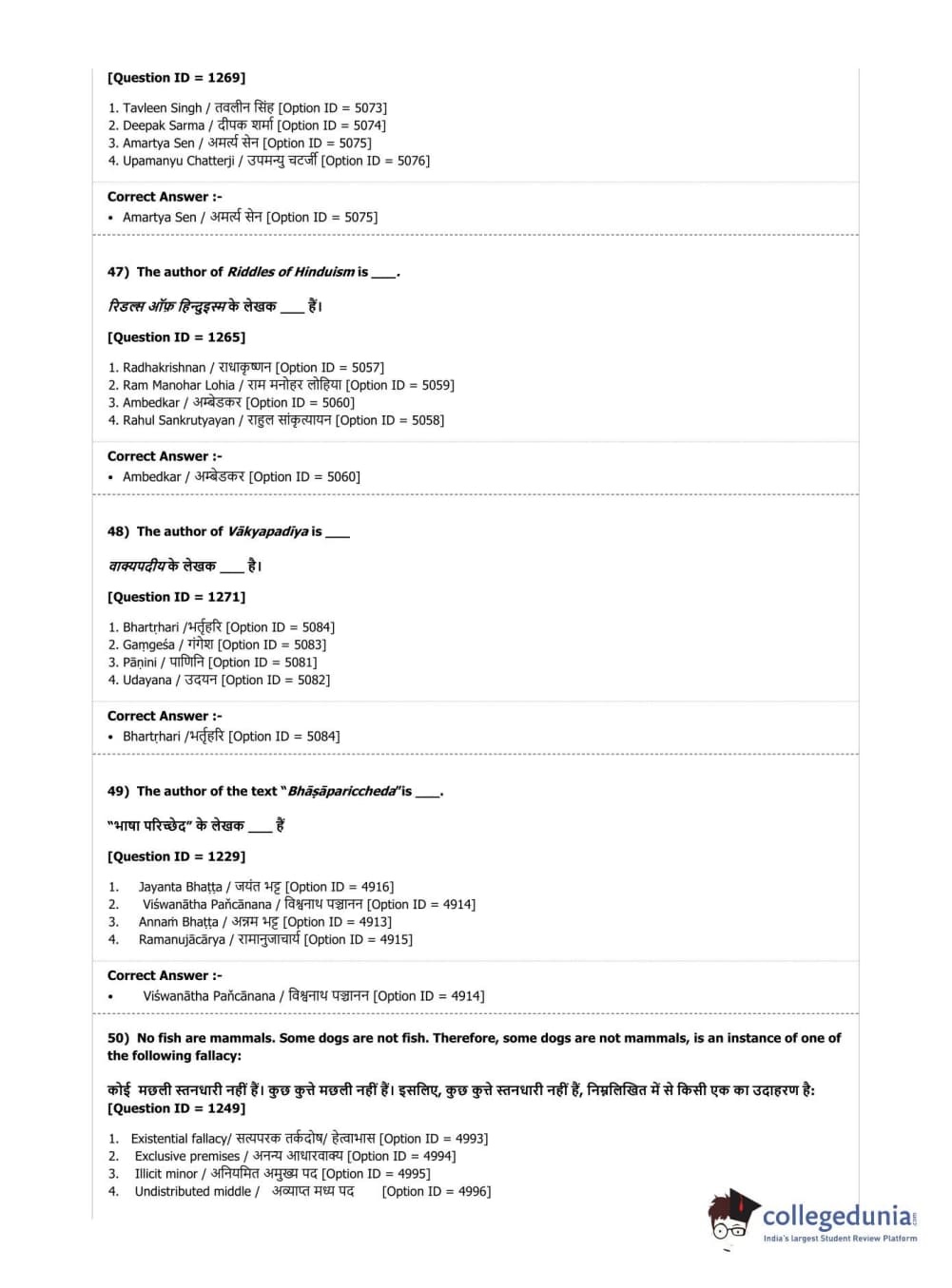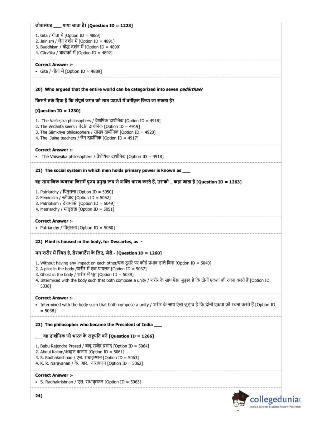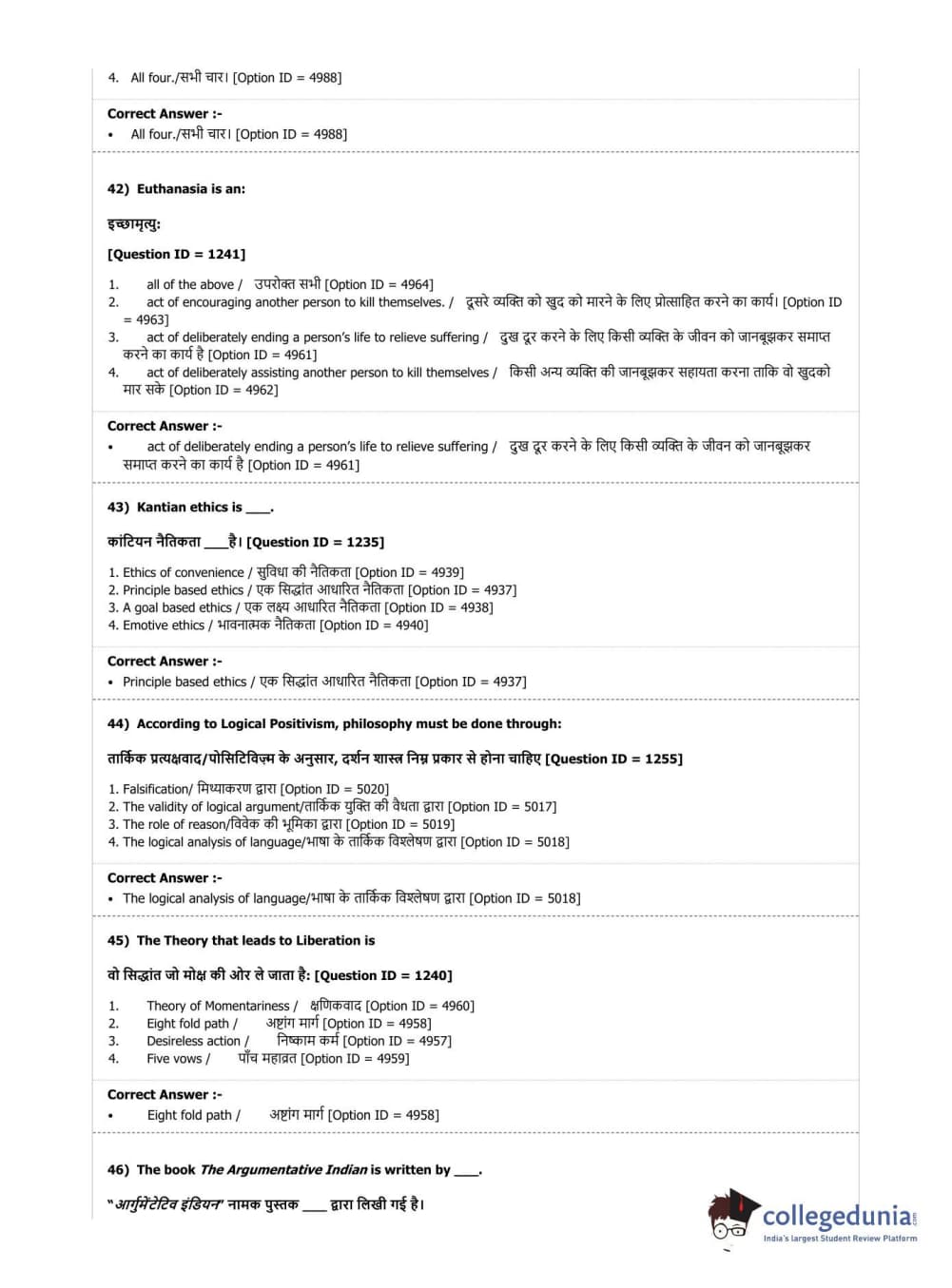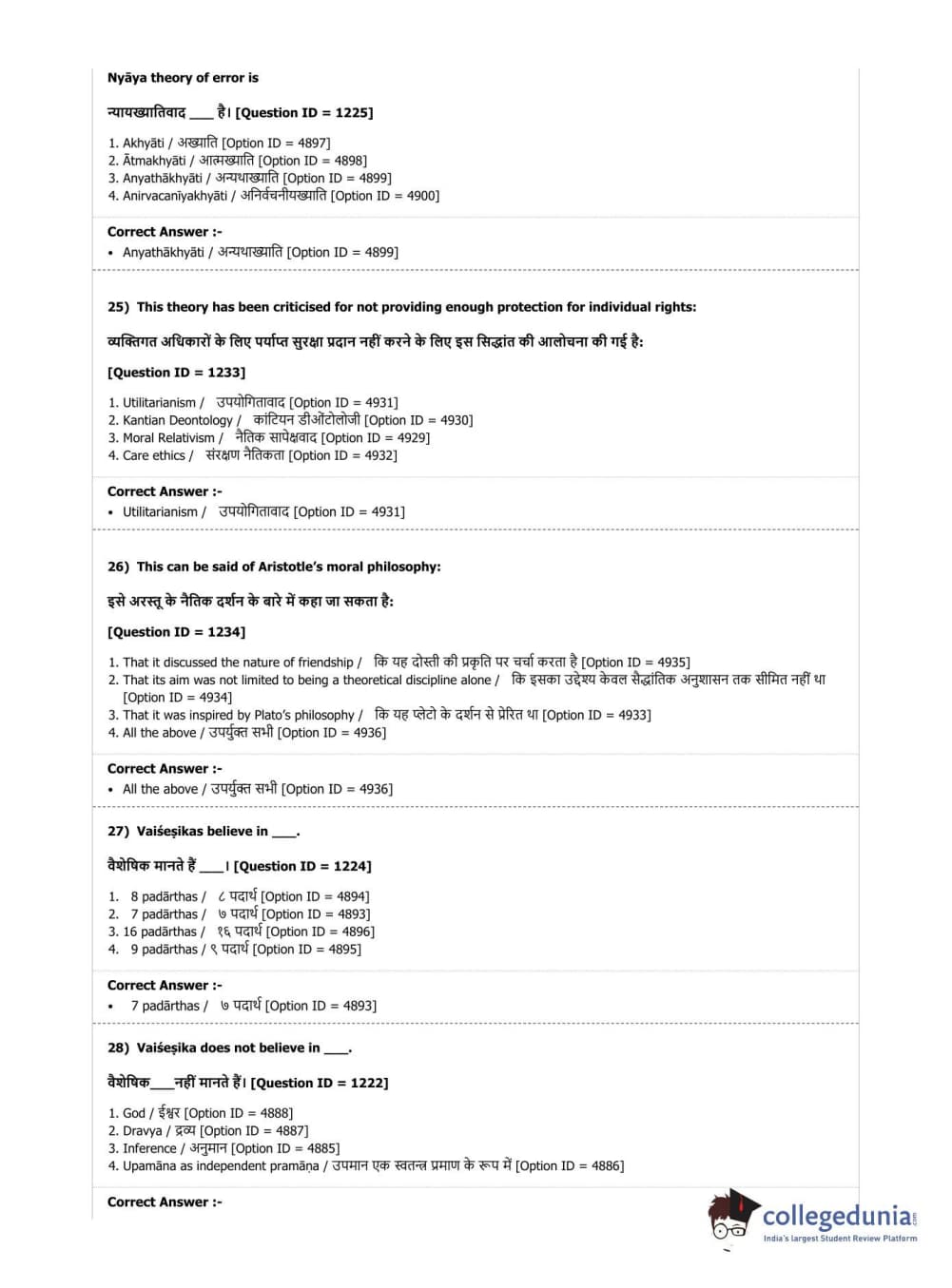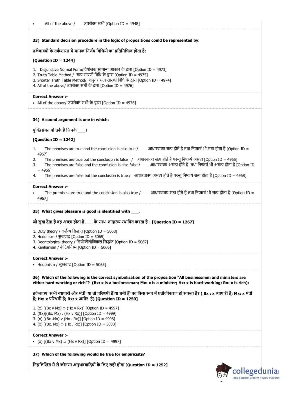DUET 2019 M.A. Philosophy Question Paper with Answer Key PDF Shift 1