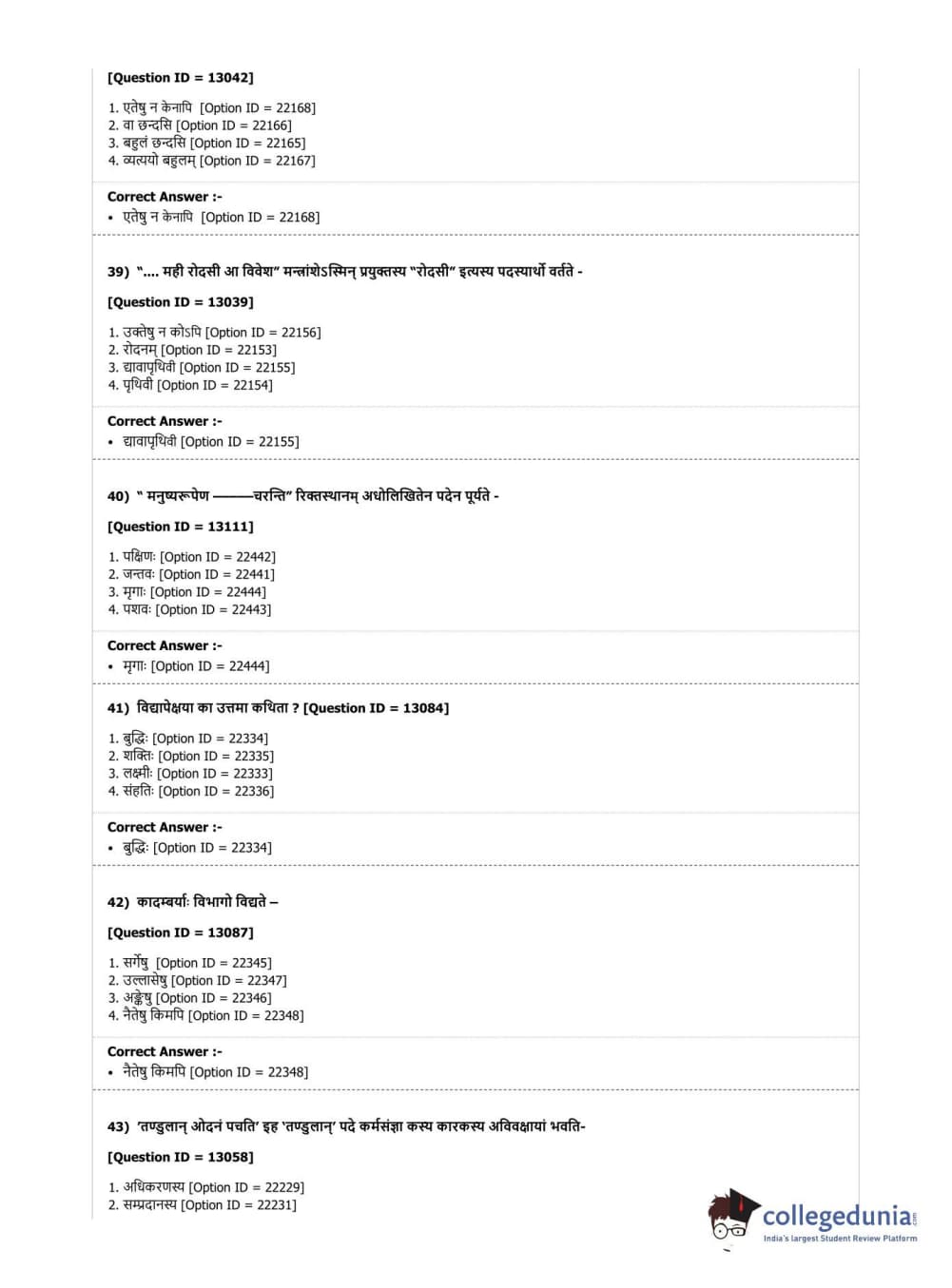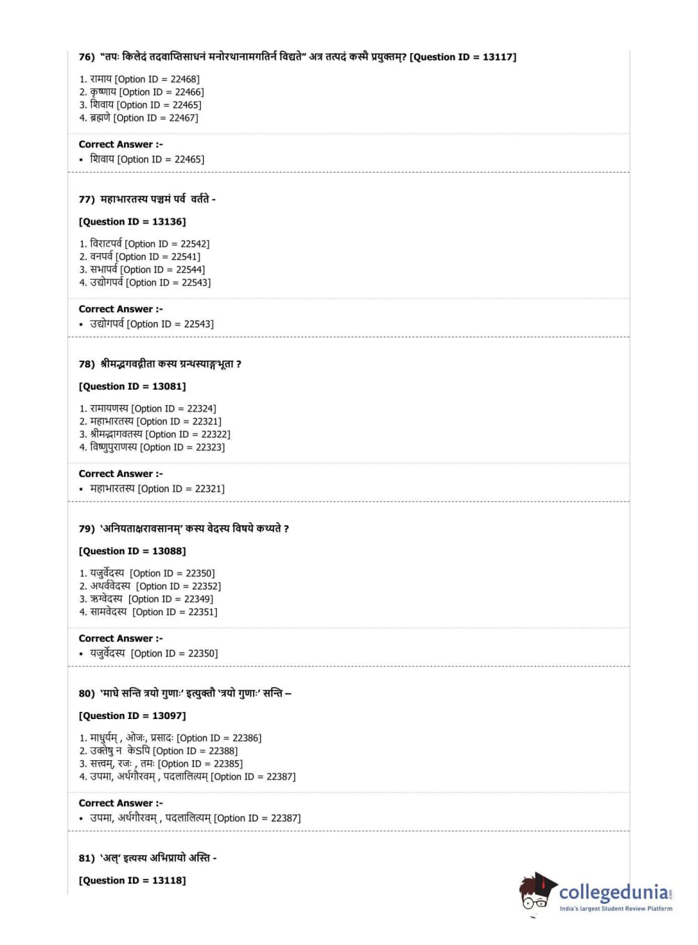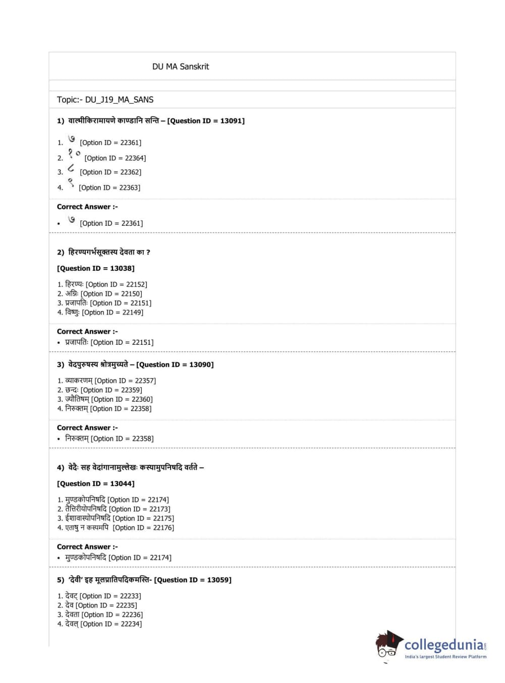 DUET 2019 M.A. Sanskrit Question paper with answer key pdf conducted on July 7, 2019 in Shift 3 is available for download. The exam was successfully organized by National Testing Agency (NTA). The question paper comprised a total of 100 questions.