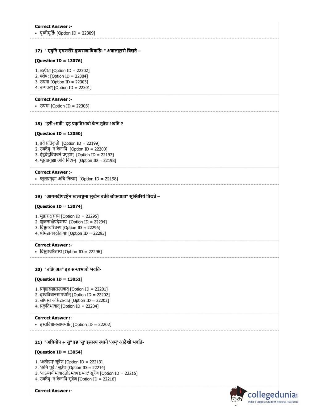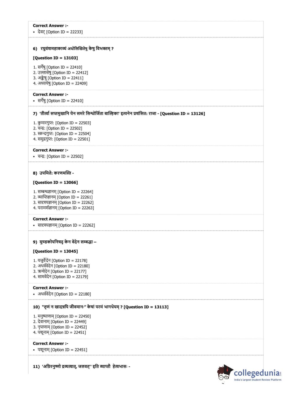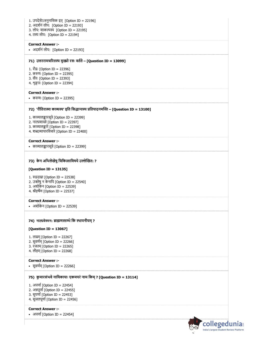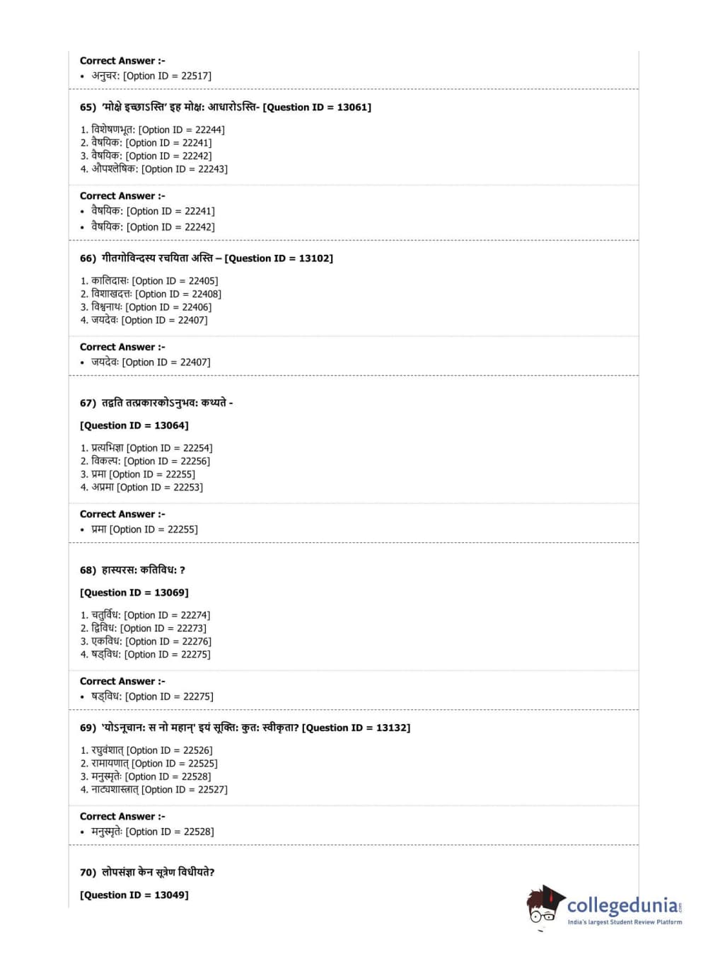 DUET 2019 M.A. Sanskrit Question Paper with Answer Key PDF Shift 3