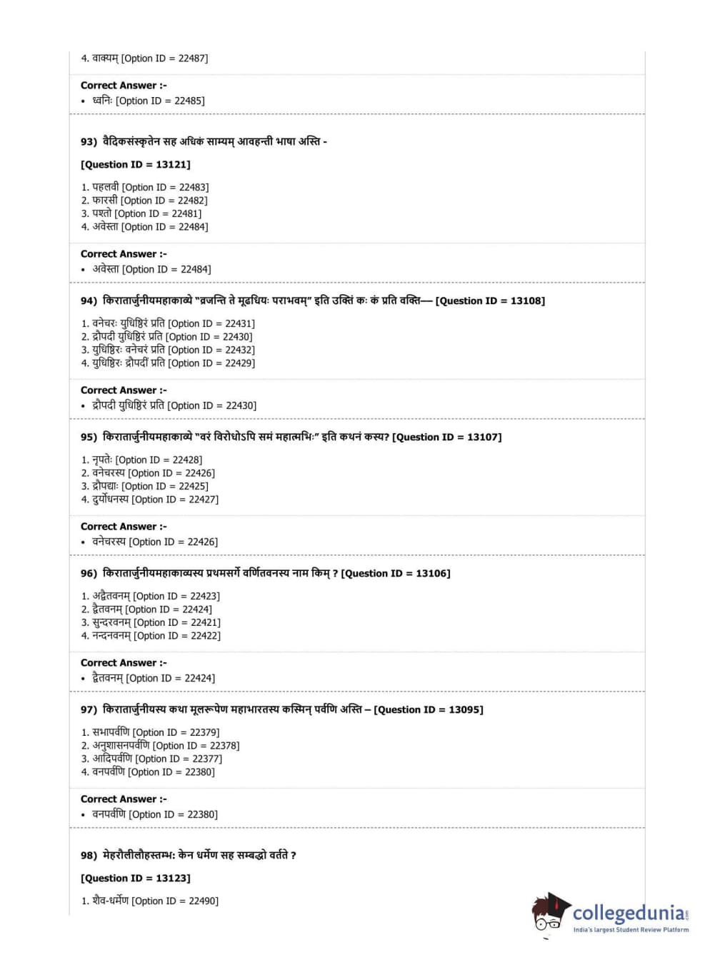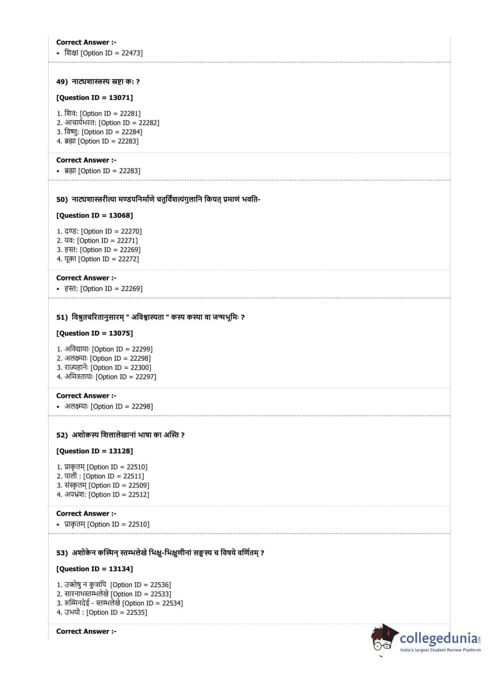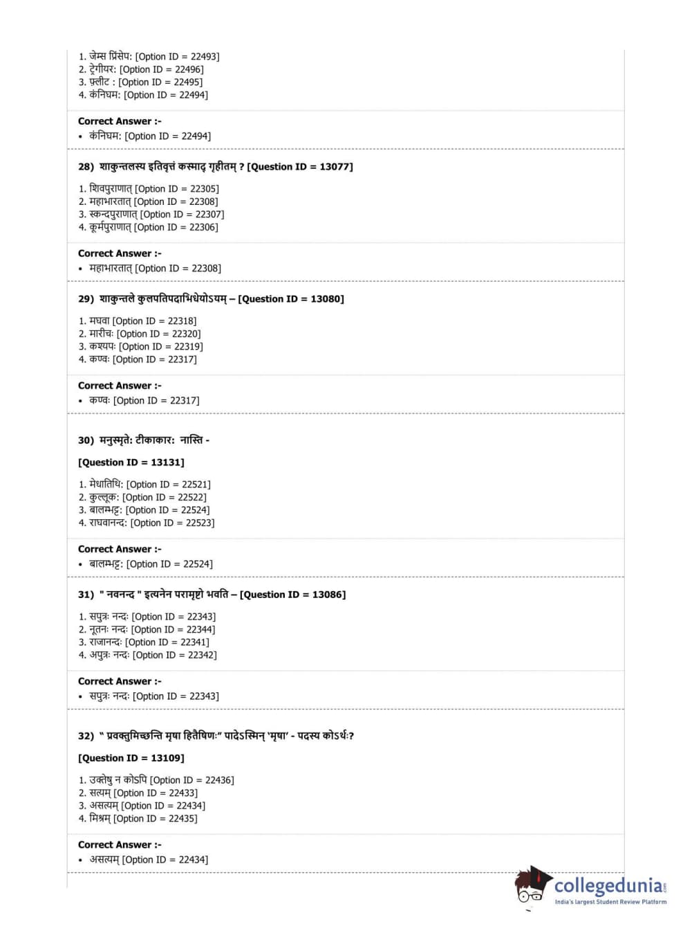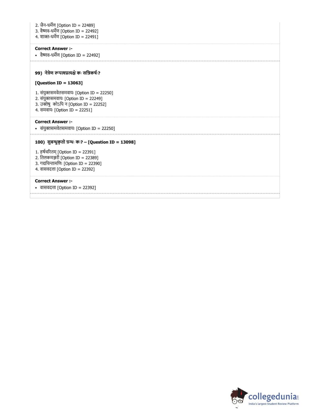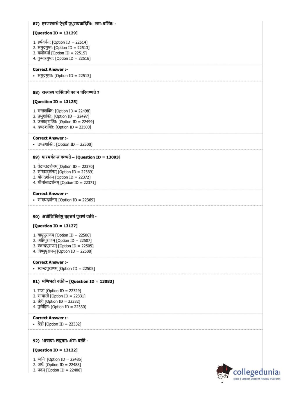 DUET 2019 M.A. Sanskrit Question Paper with Answer Key PDF Shift 3