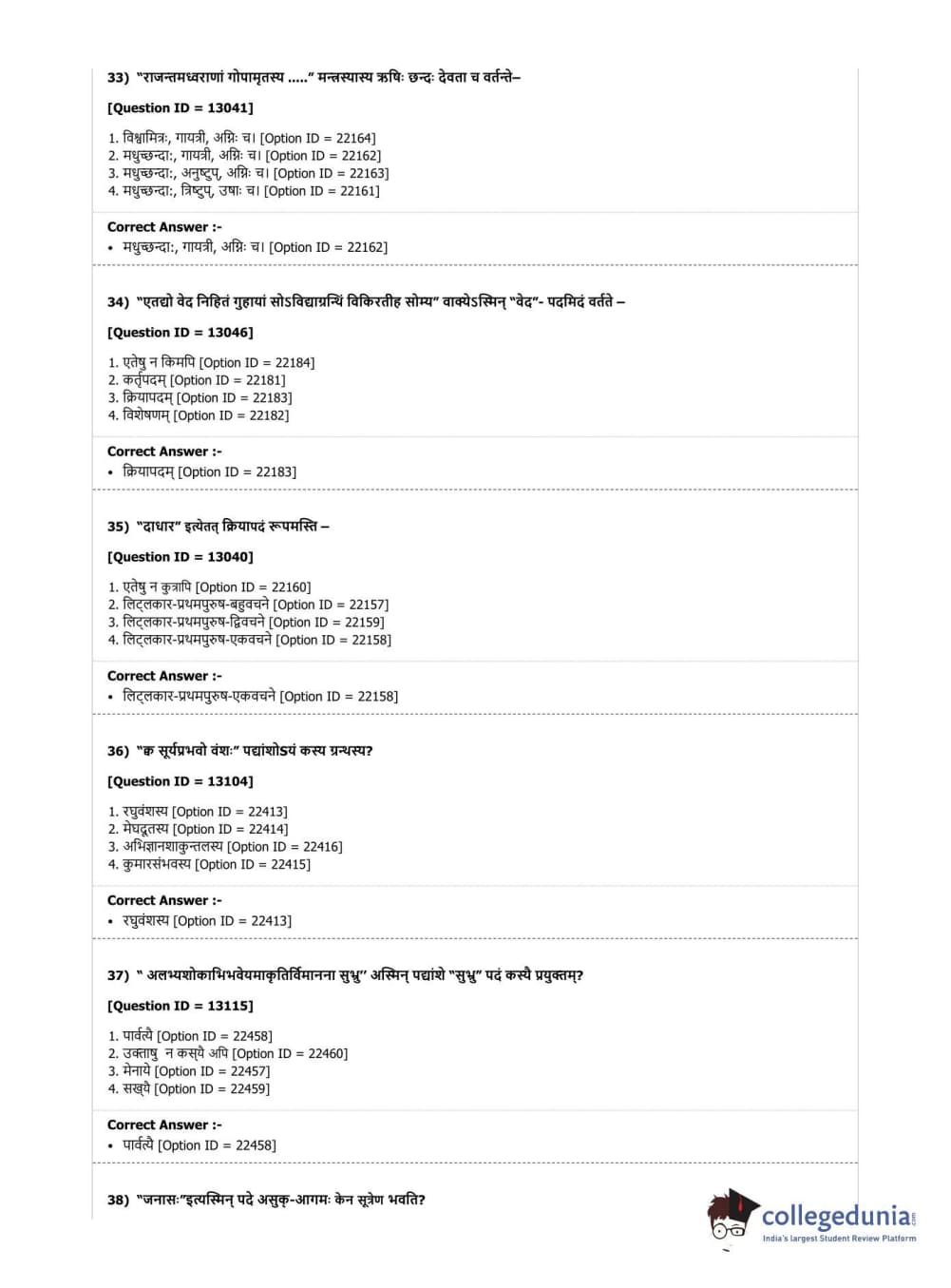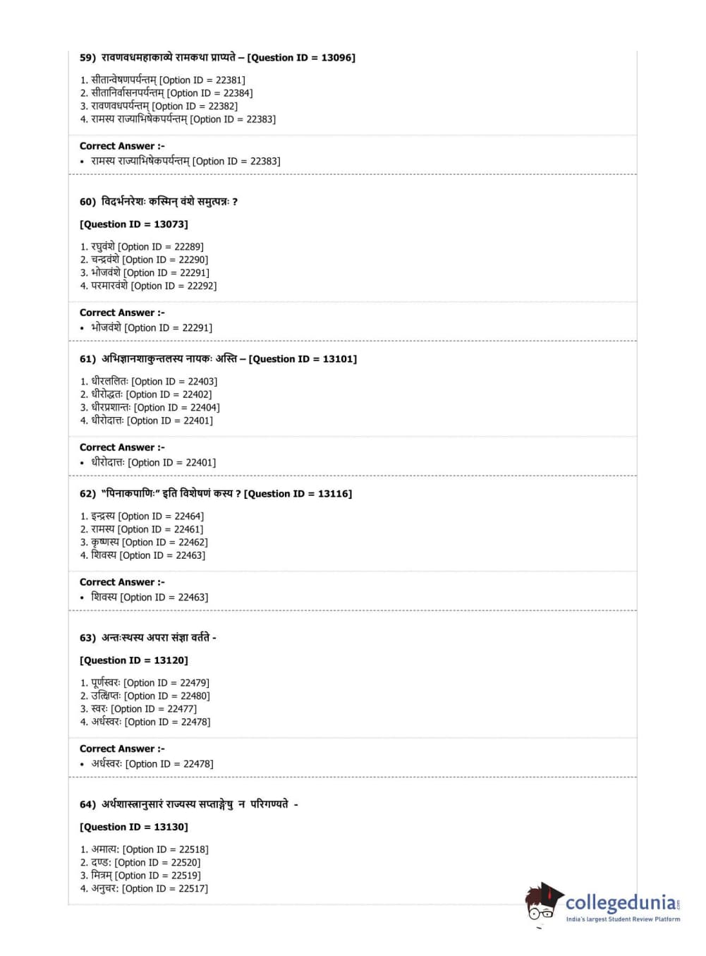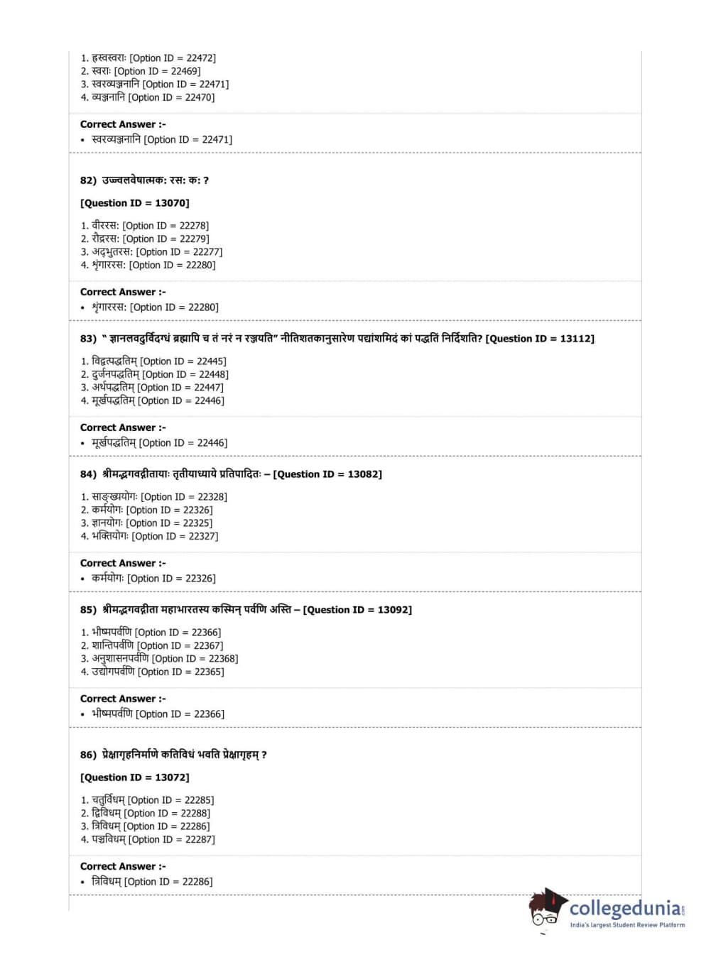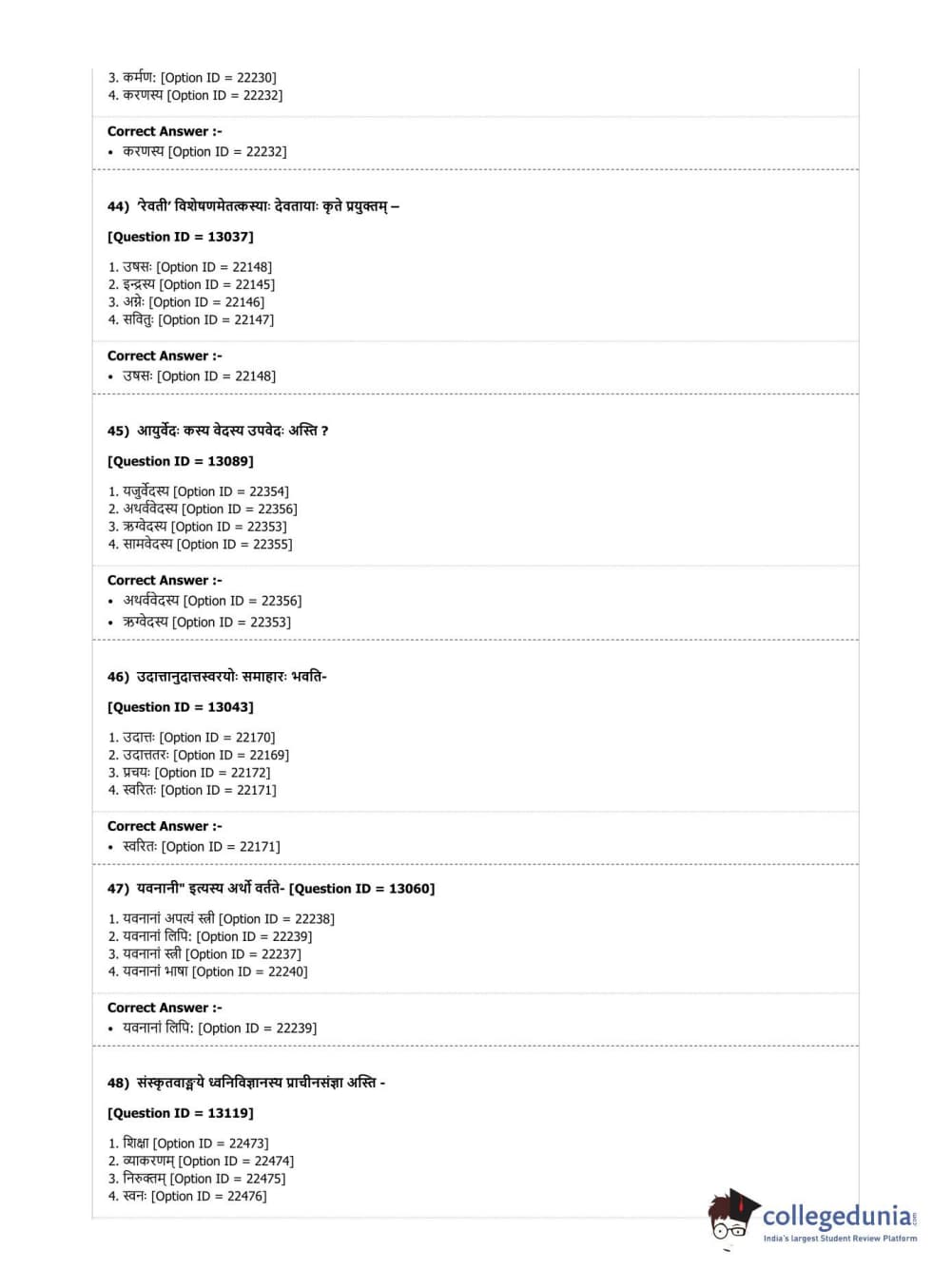 DUET 2019 M.A. Sanskrit Question Paper with Answer Key PDF Shift 3