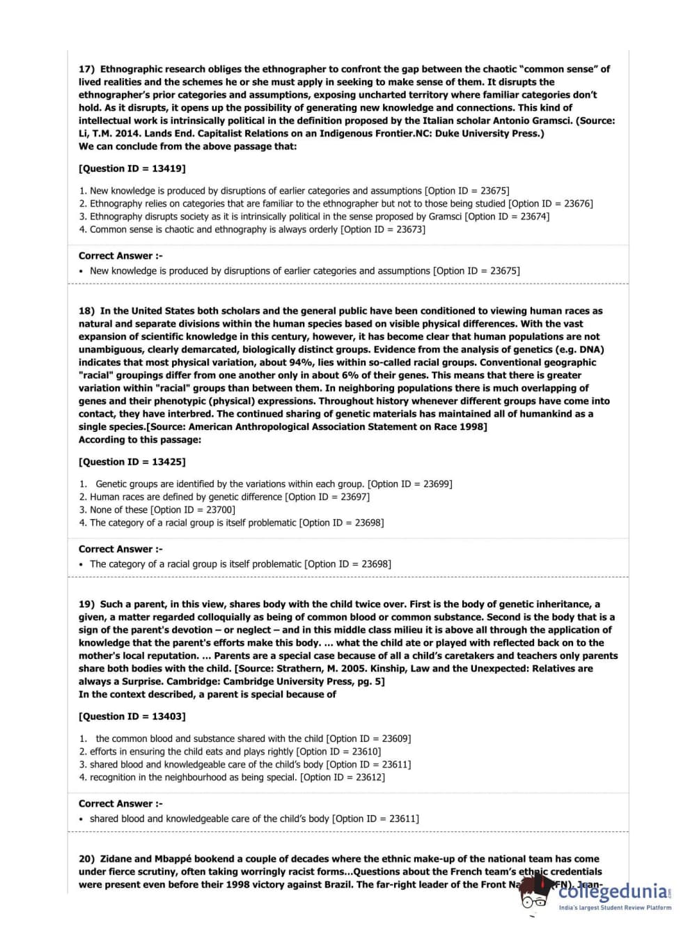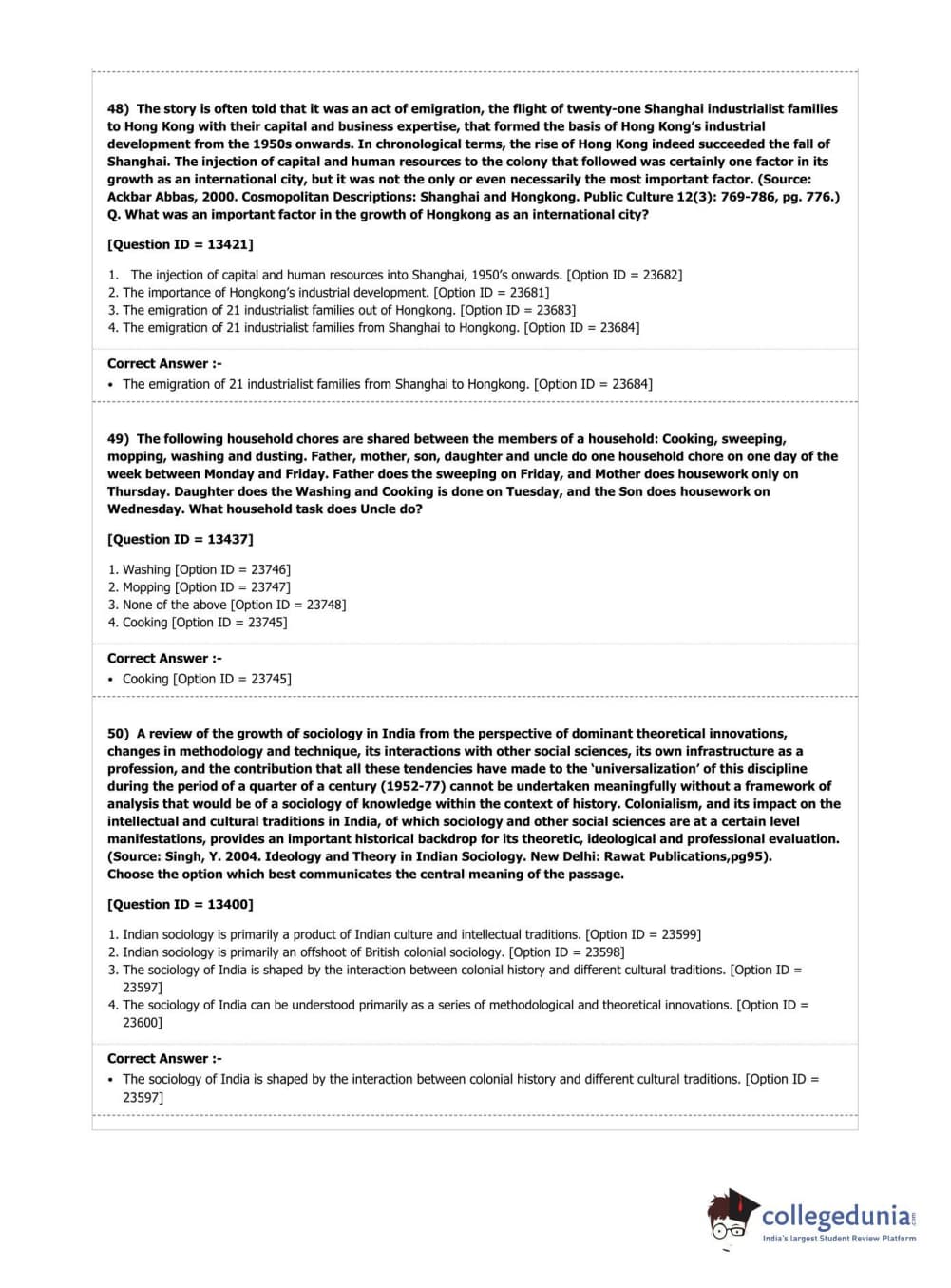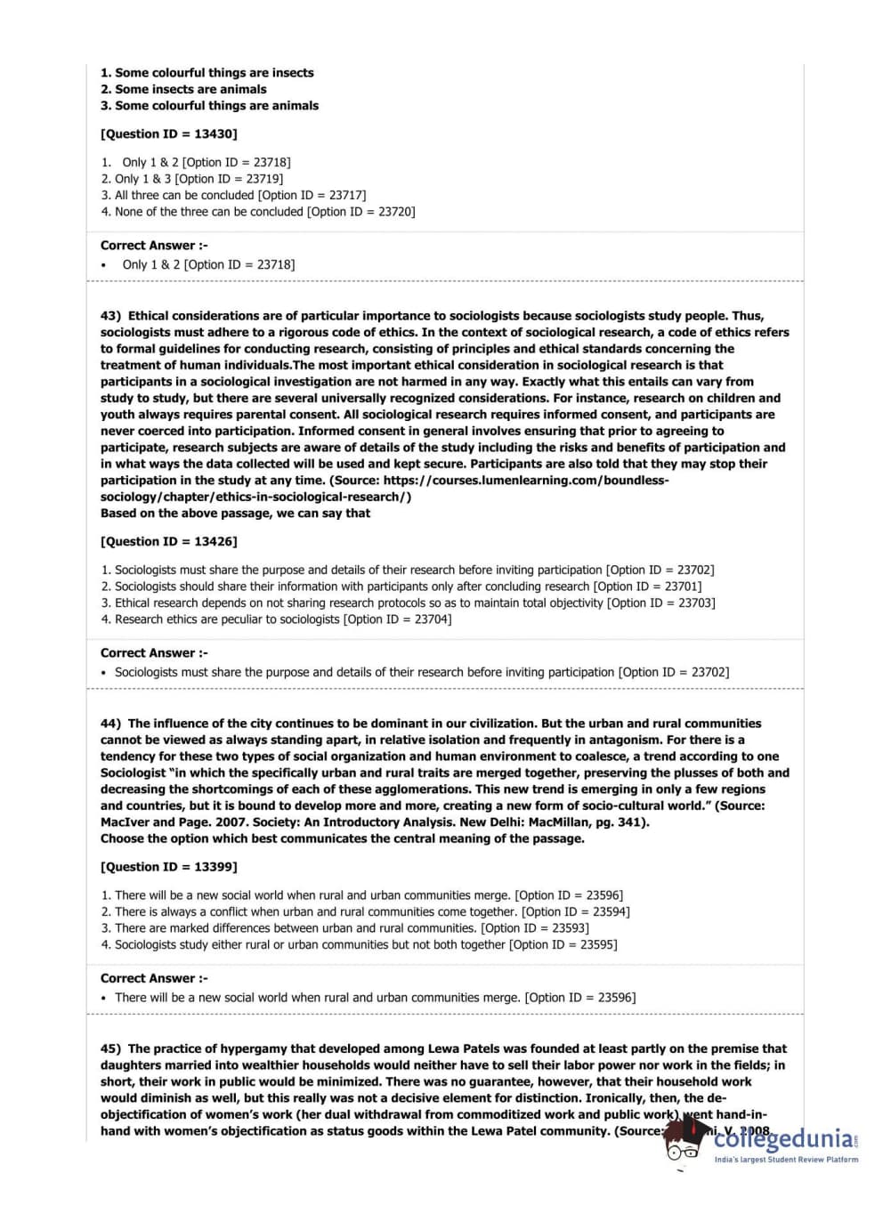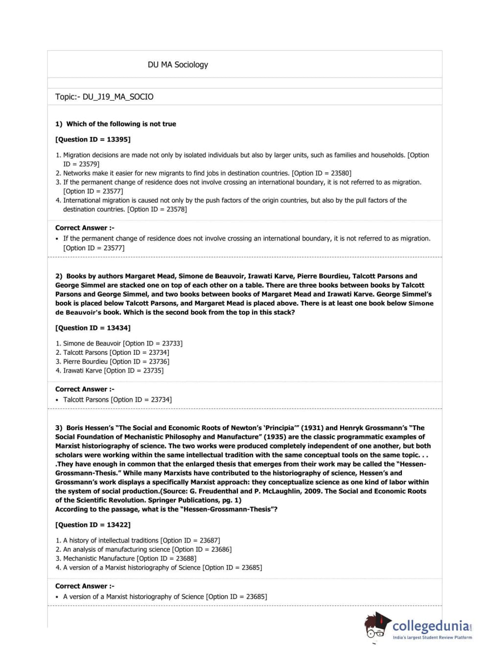 DUET 2019 M.A. Sociology Question paper with answer key pdf conducted on June 7, 2019 in Shift 1 is available for download. The exam was successfully organized by National Testing Agency (NTA). The question paper comprised a total of 50 questions.