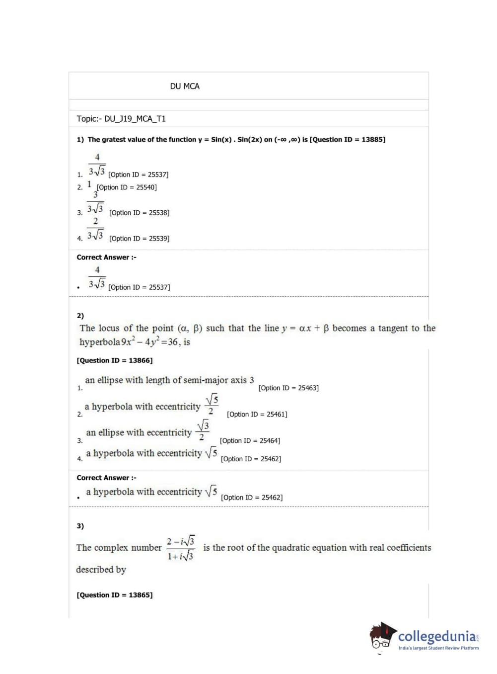 DUET 2019 M.C.A. Question Paper with Answer Key PDF Shift 3
