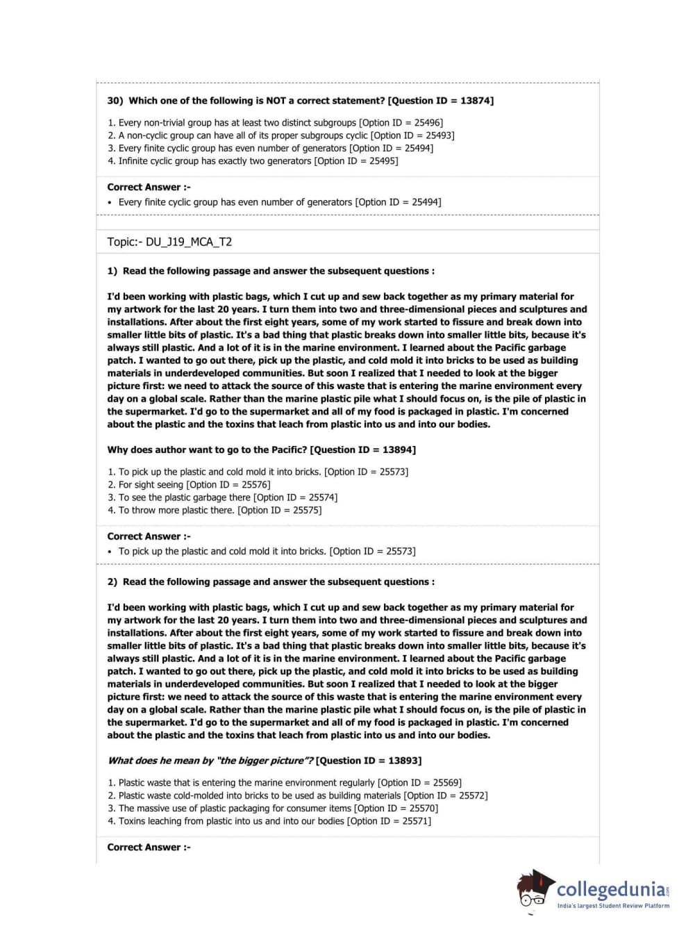 | DUET Subject | Question Paper with Answer Key PDF |