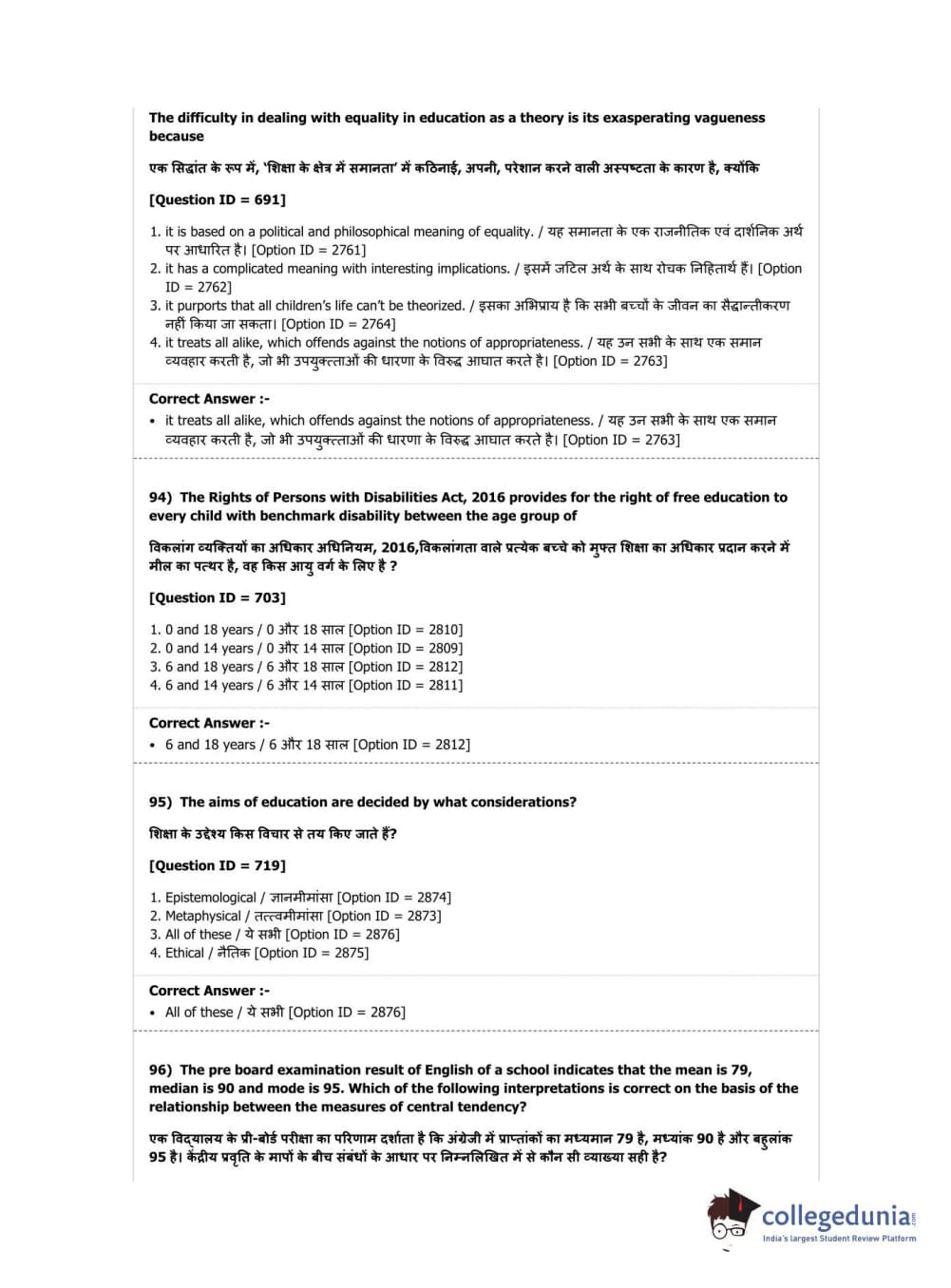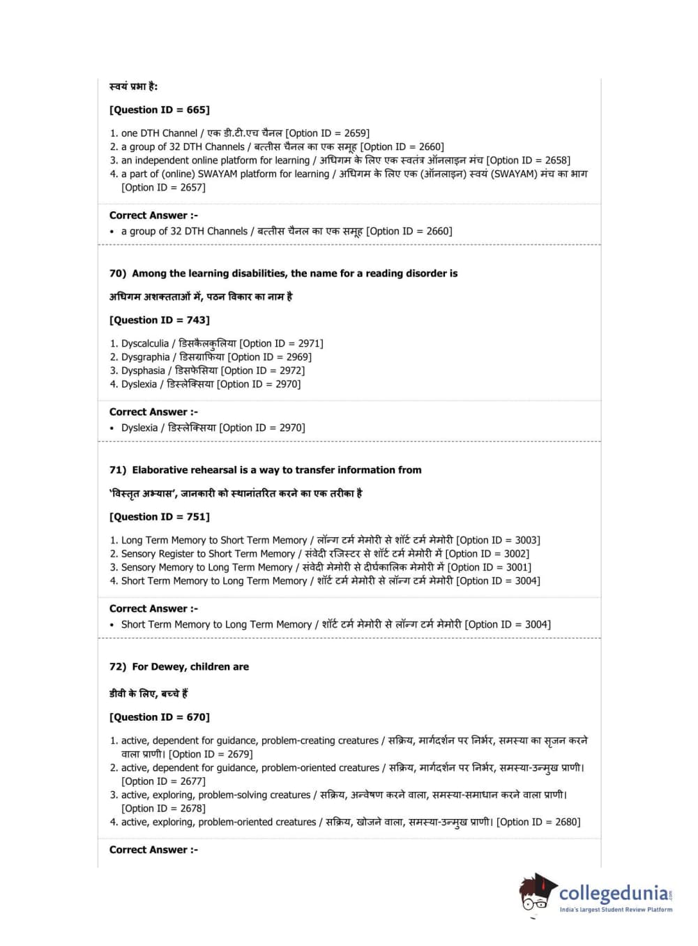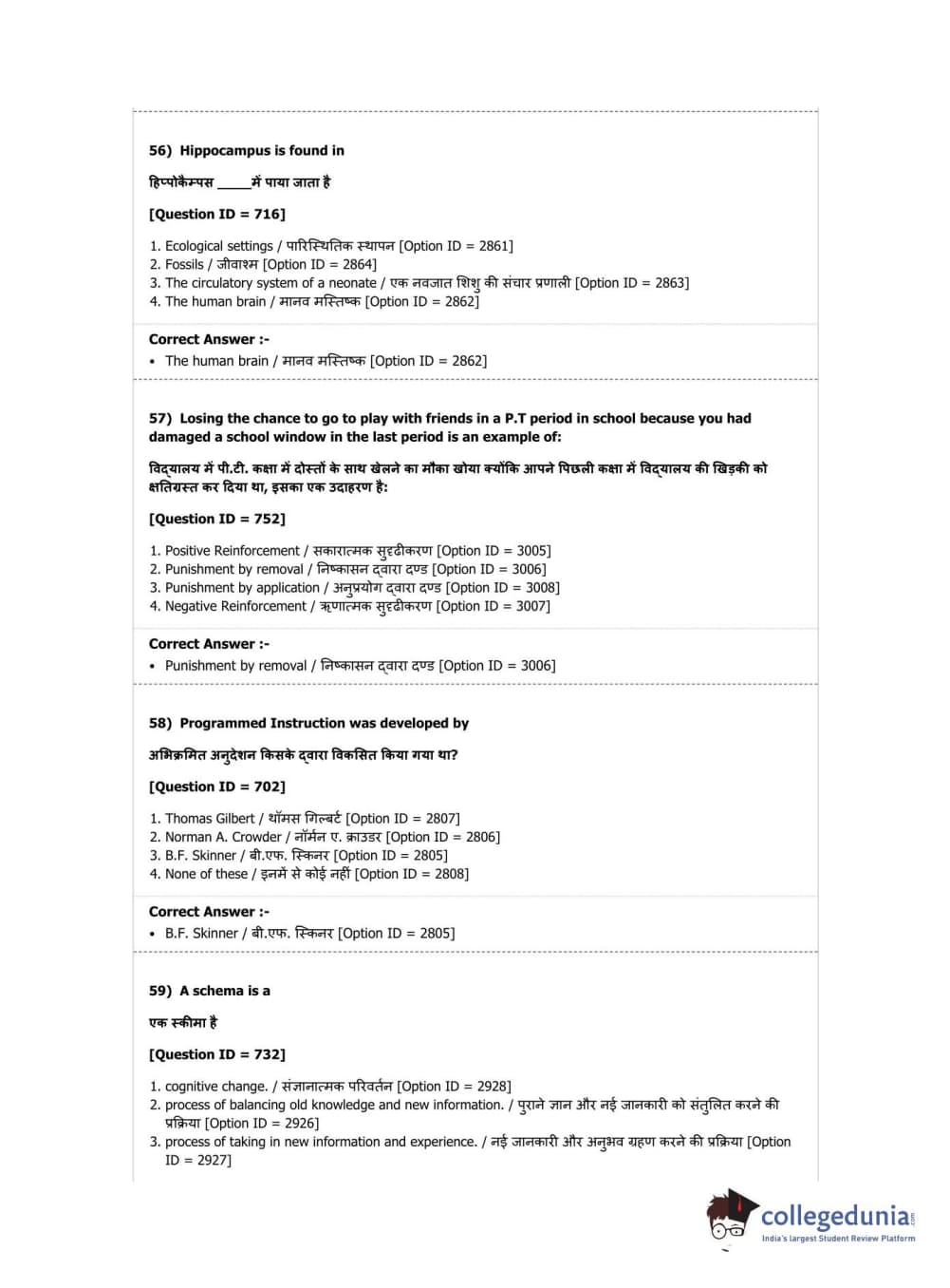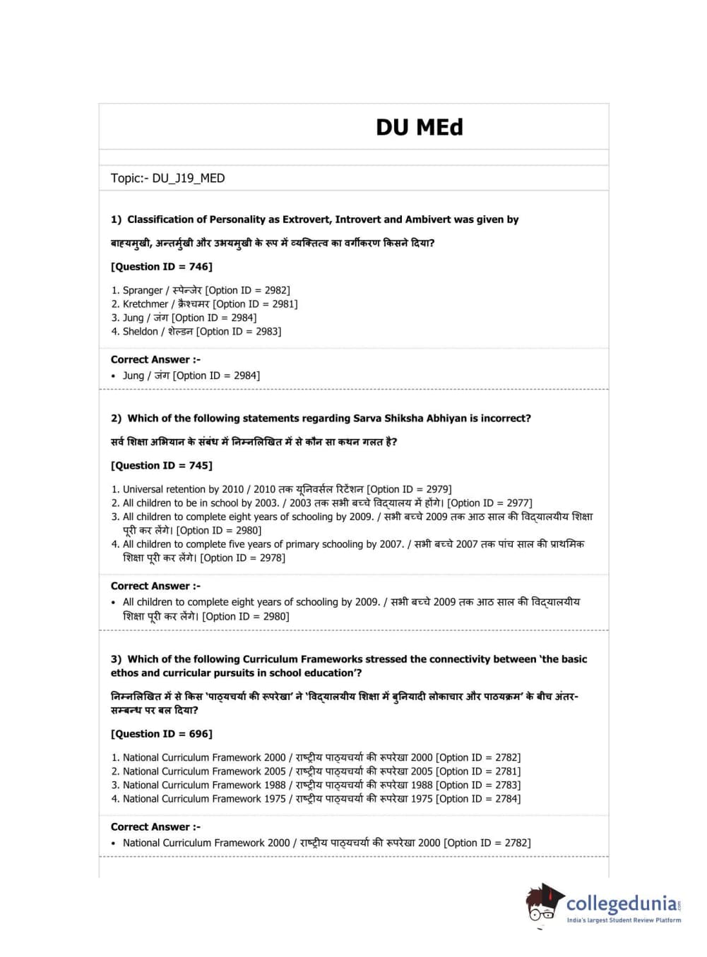 DUET 2019 M.Ed. Question paper with answer key pdf conducted on May 7, 2019 in Shift 3 is available for download. The exam was successfully organized by National Testing Agency (NTA). The question paper comprised a total of 100 questions.