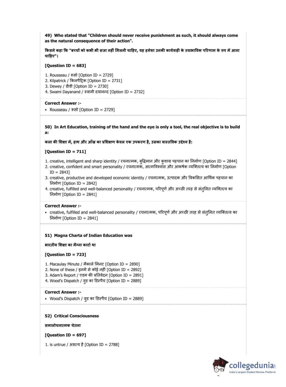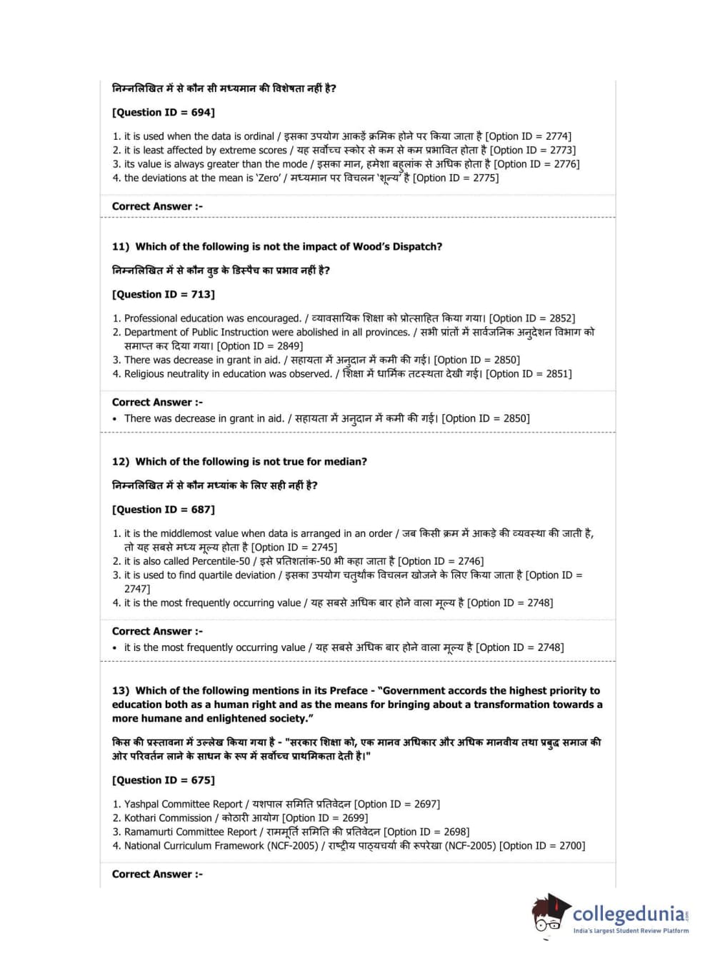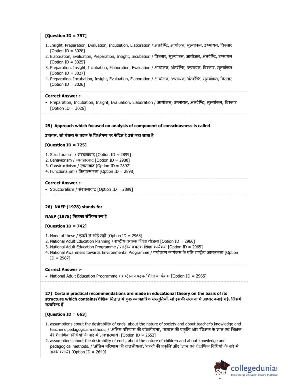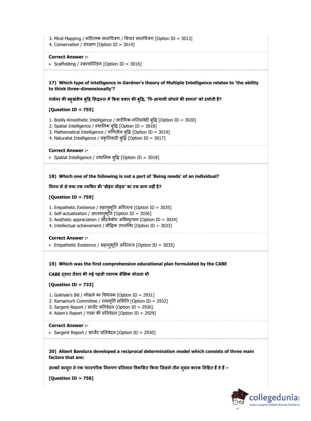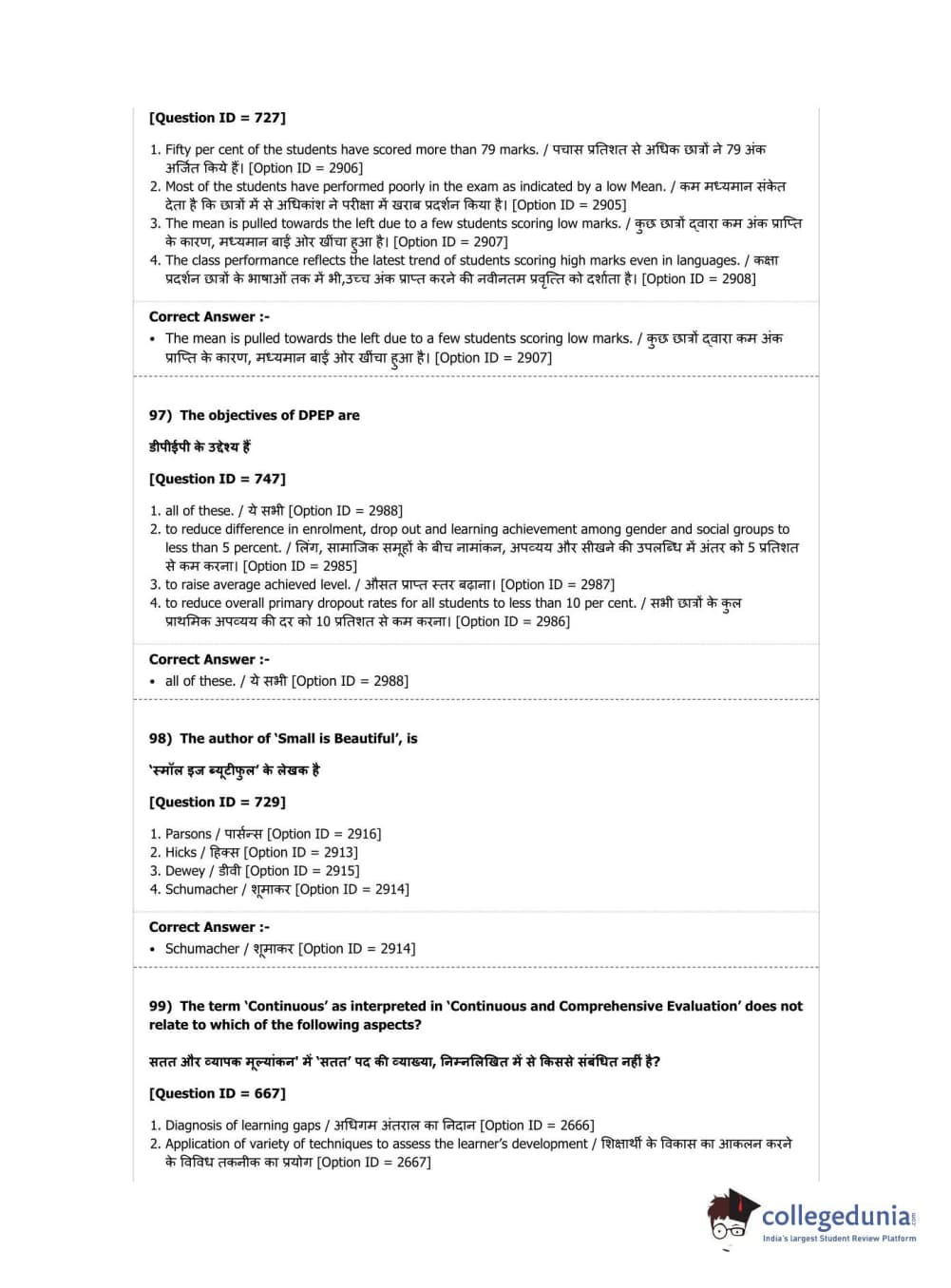 DUET 2019 M.Ed. Question Paper with Answer Key PDF Shift 3