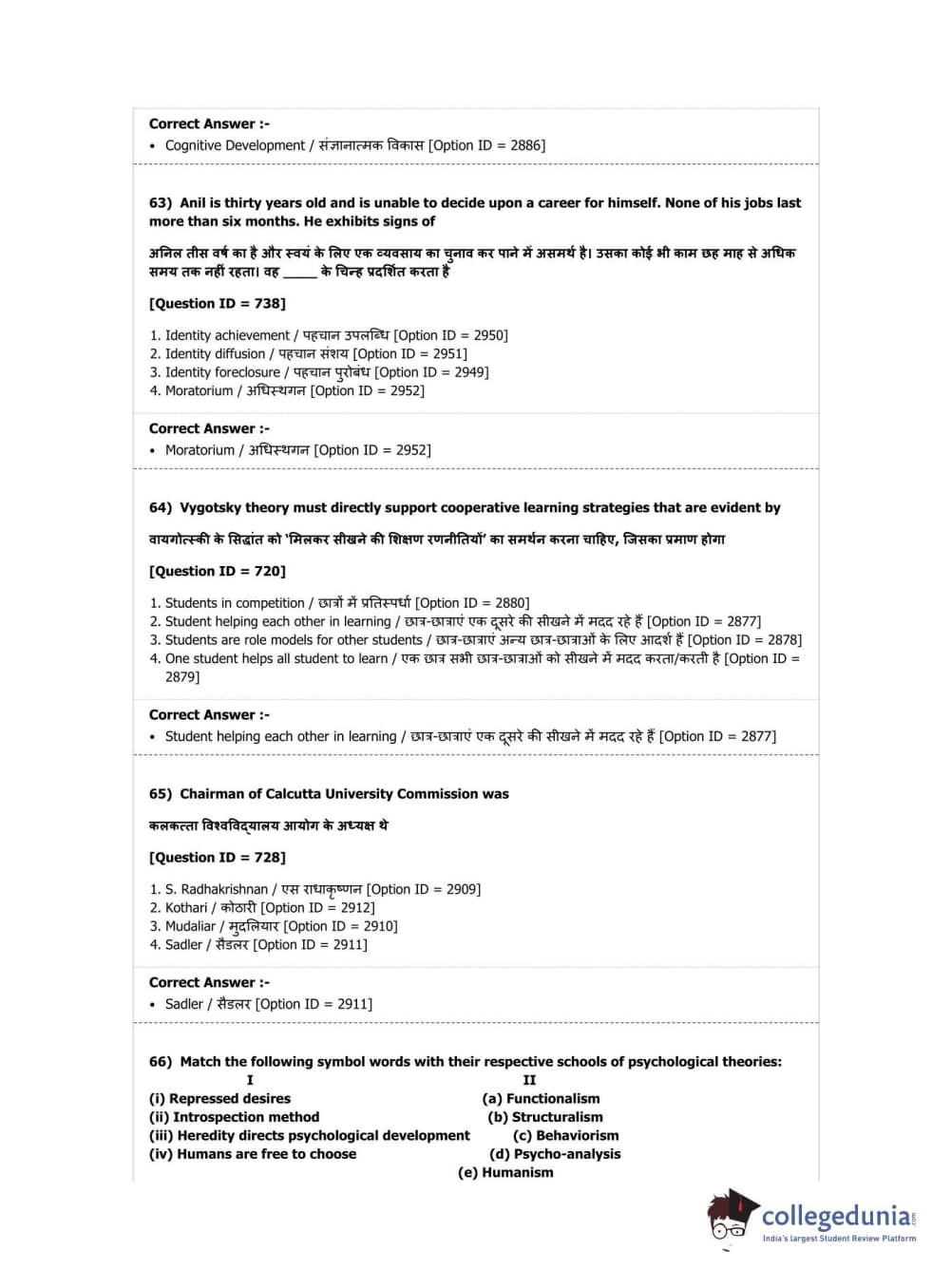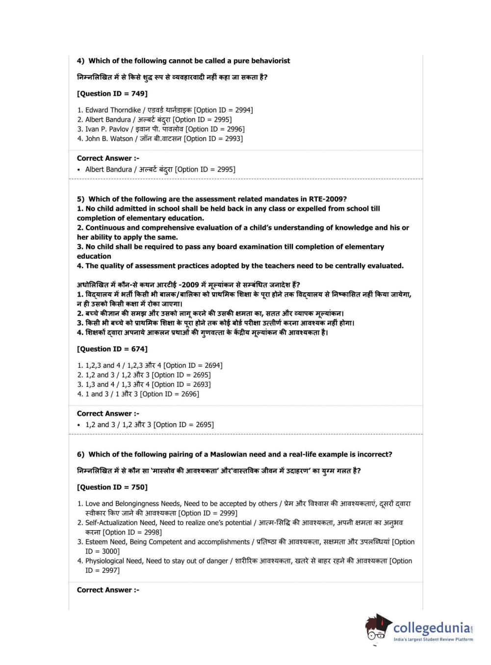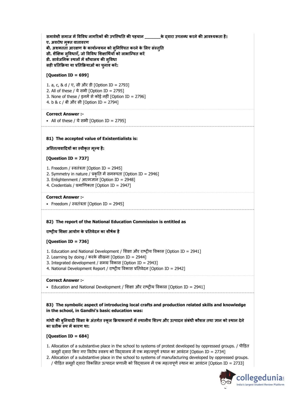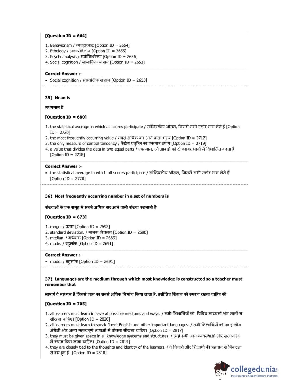 DUET 2019 M.Ed. Question Paper with Answer Key PDF Shift 3