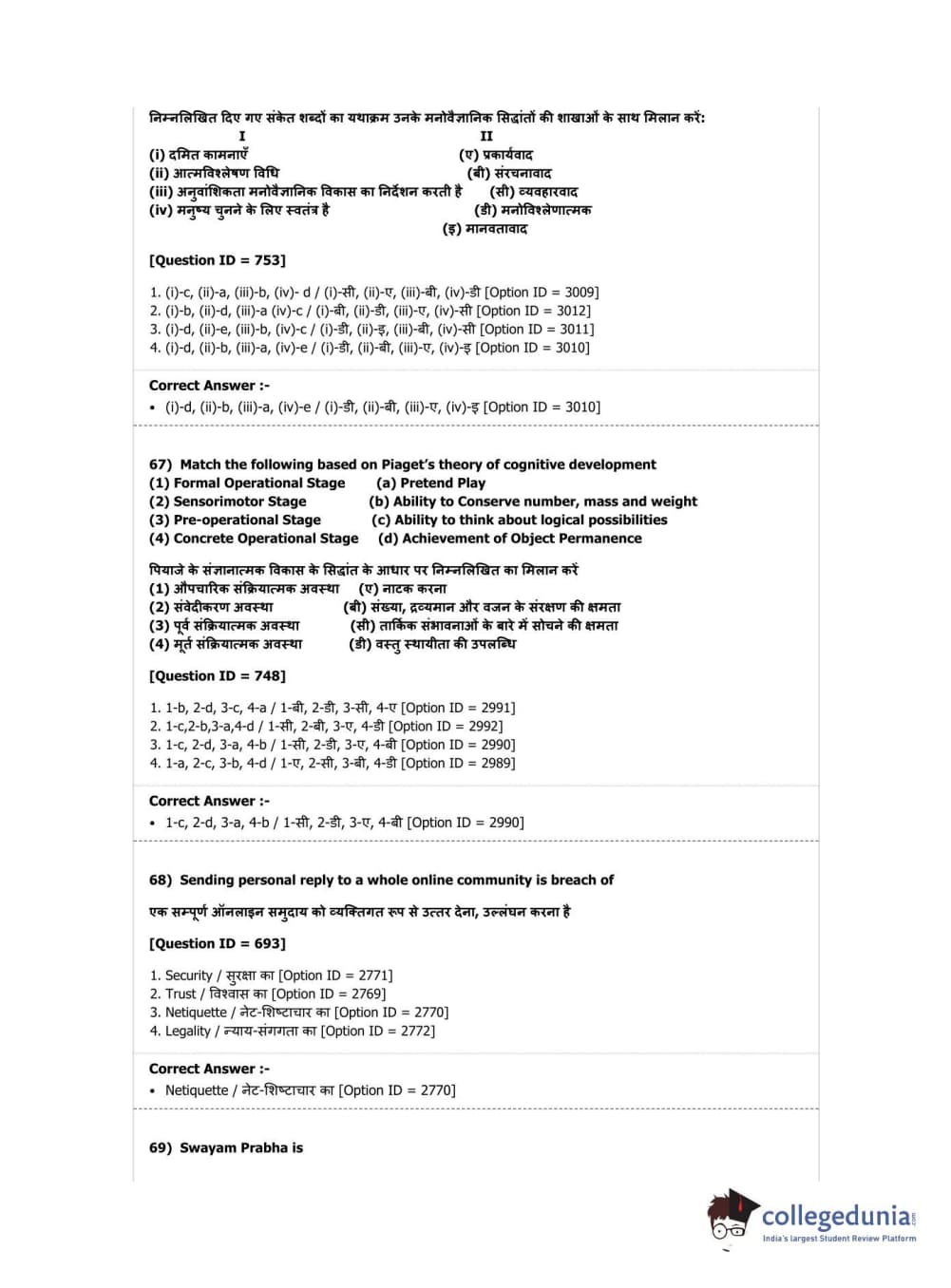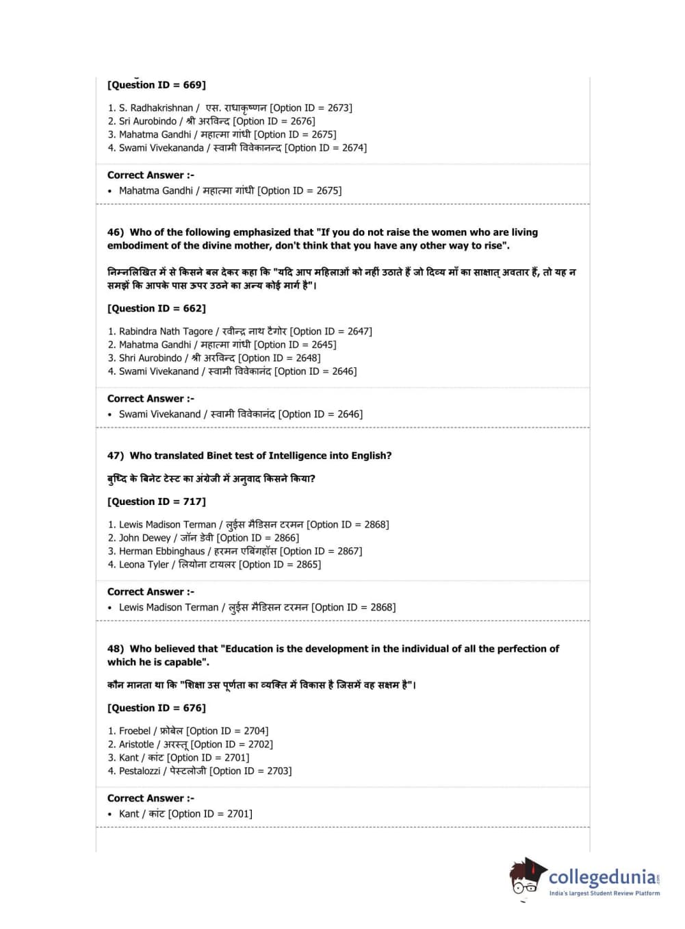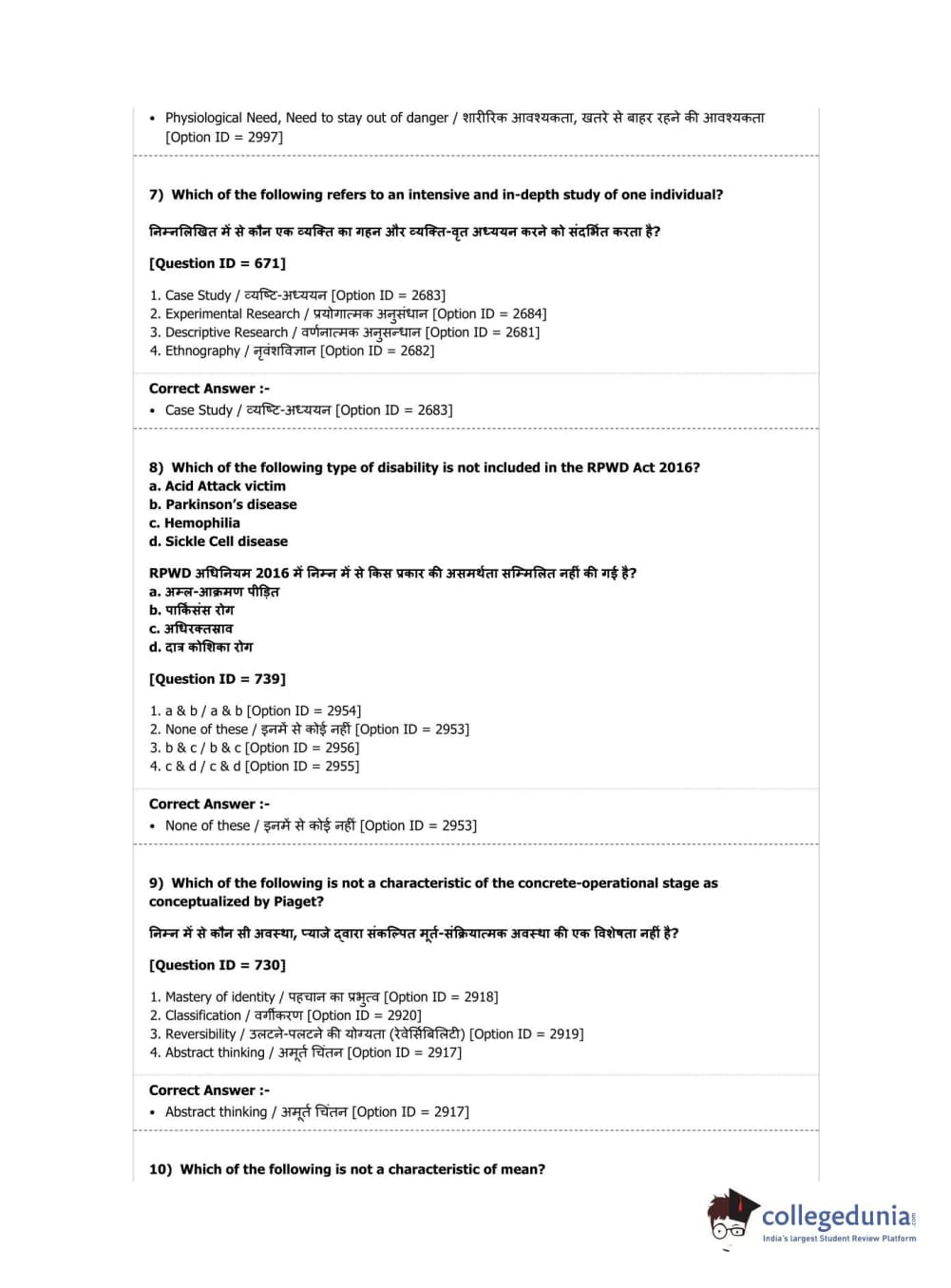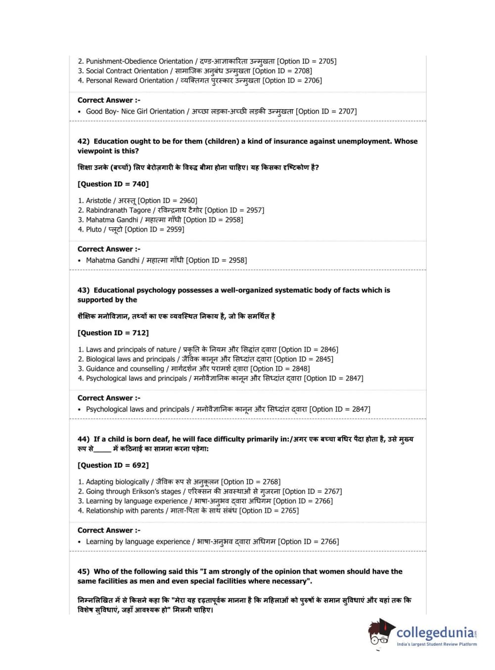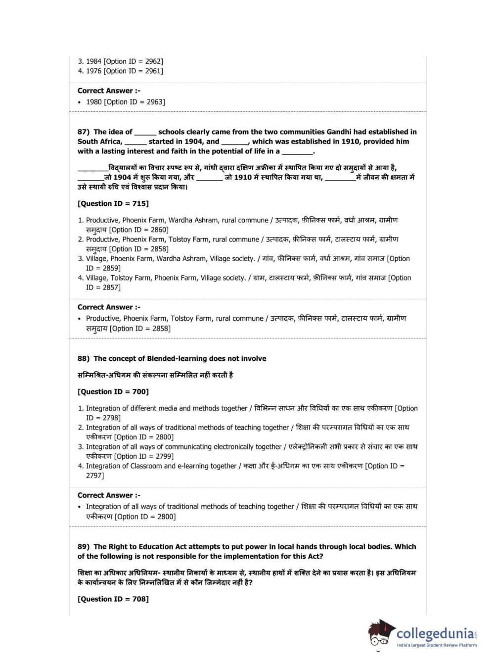 DUET 2019 M.Ed. Question Paper with Answer Key PDF Shift 3