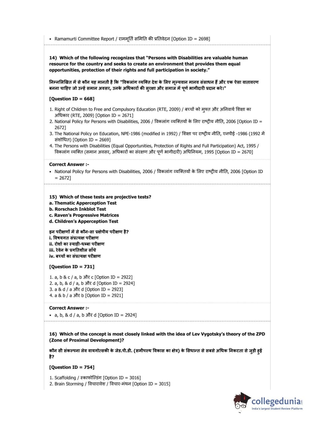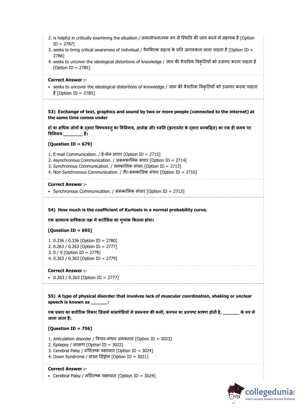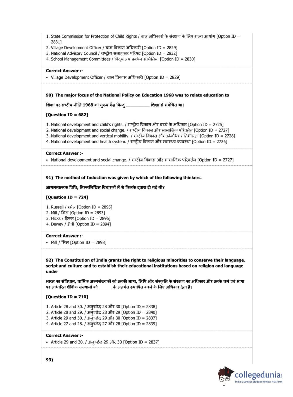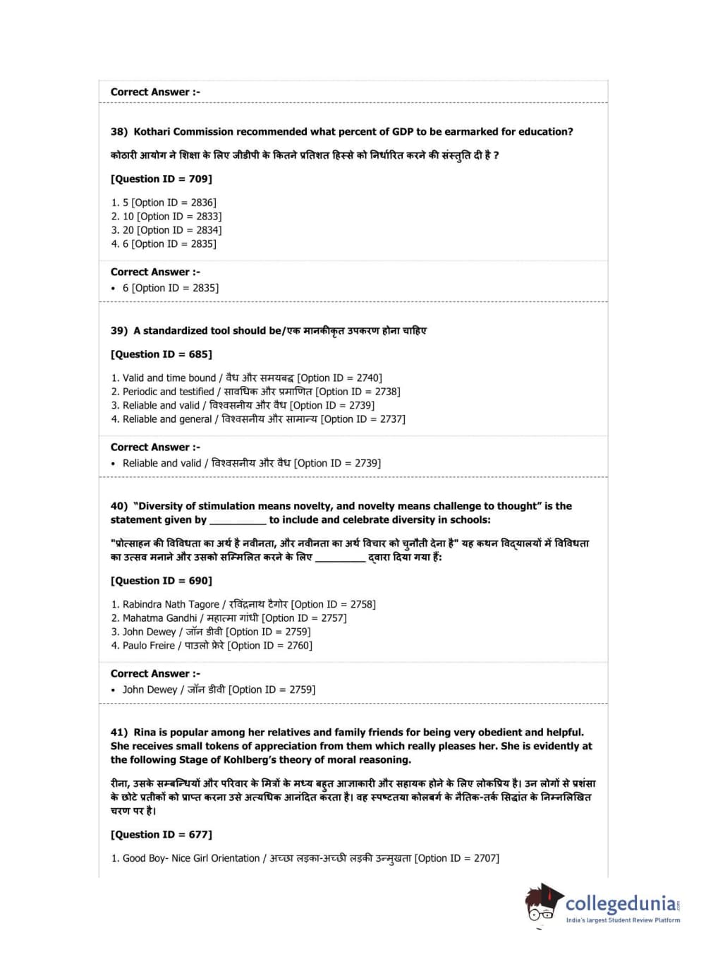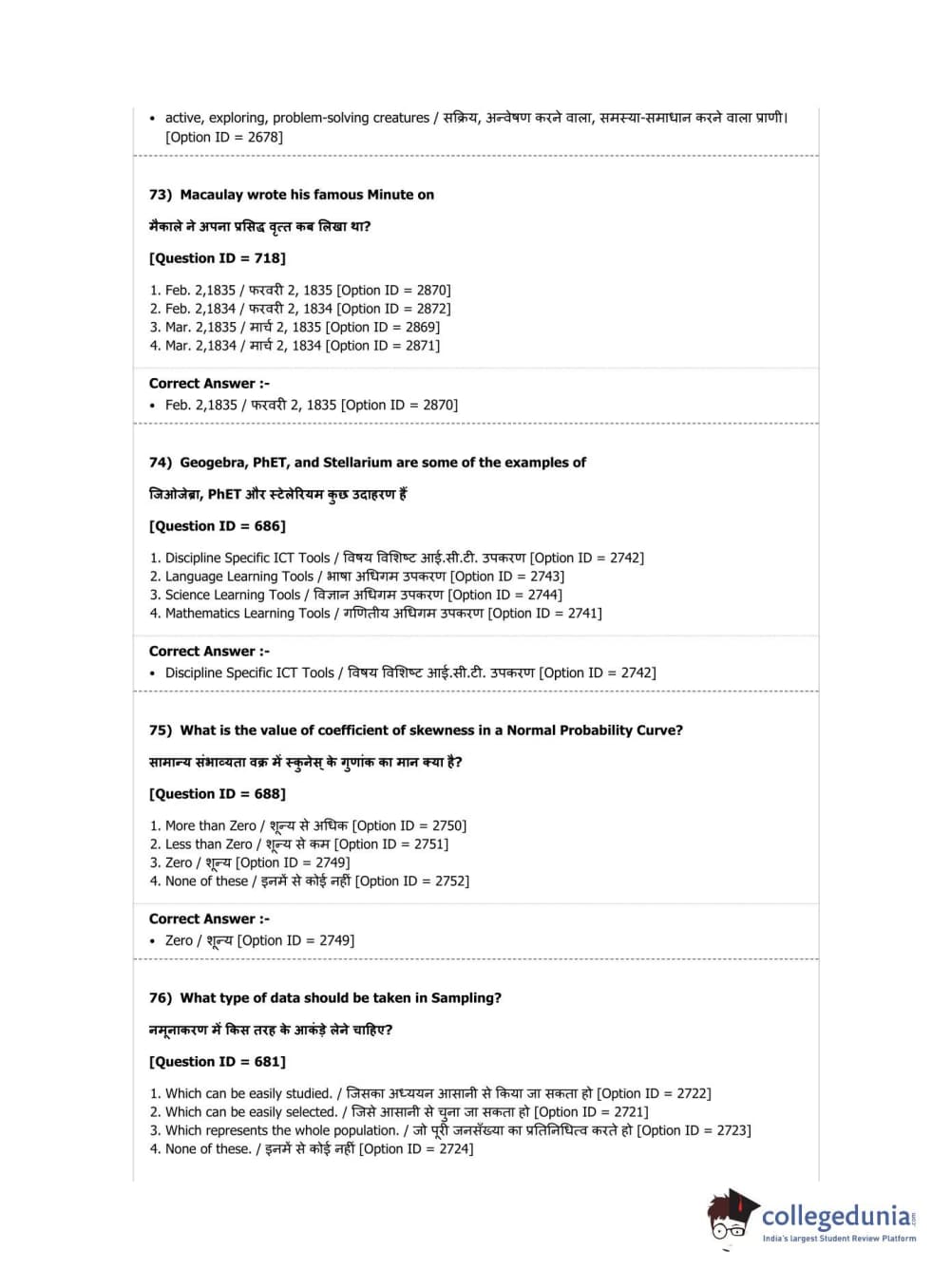 DUET 2019 M.Ed. Question Paper with Answer Key PDF Shift 3