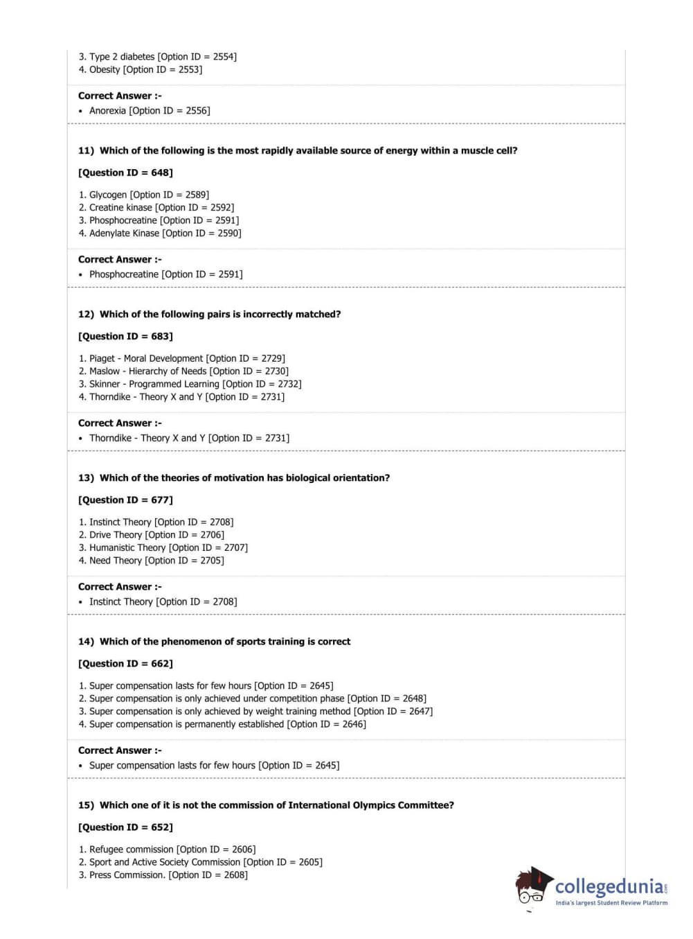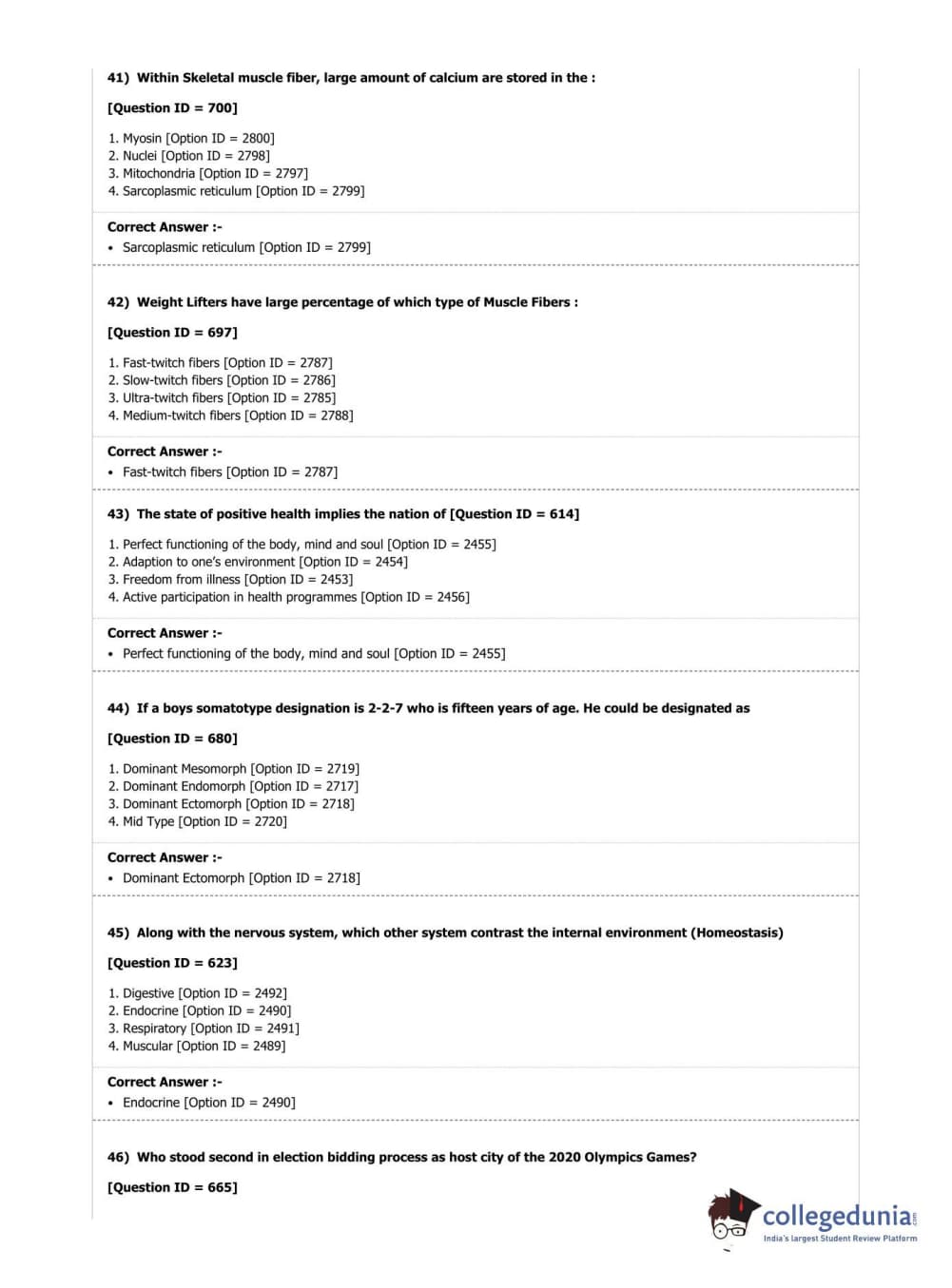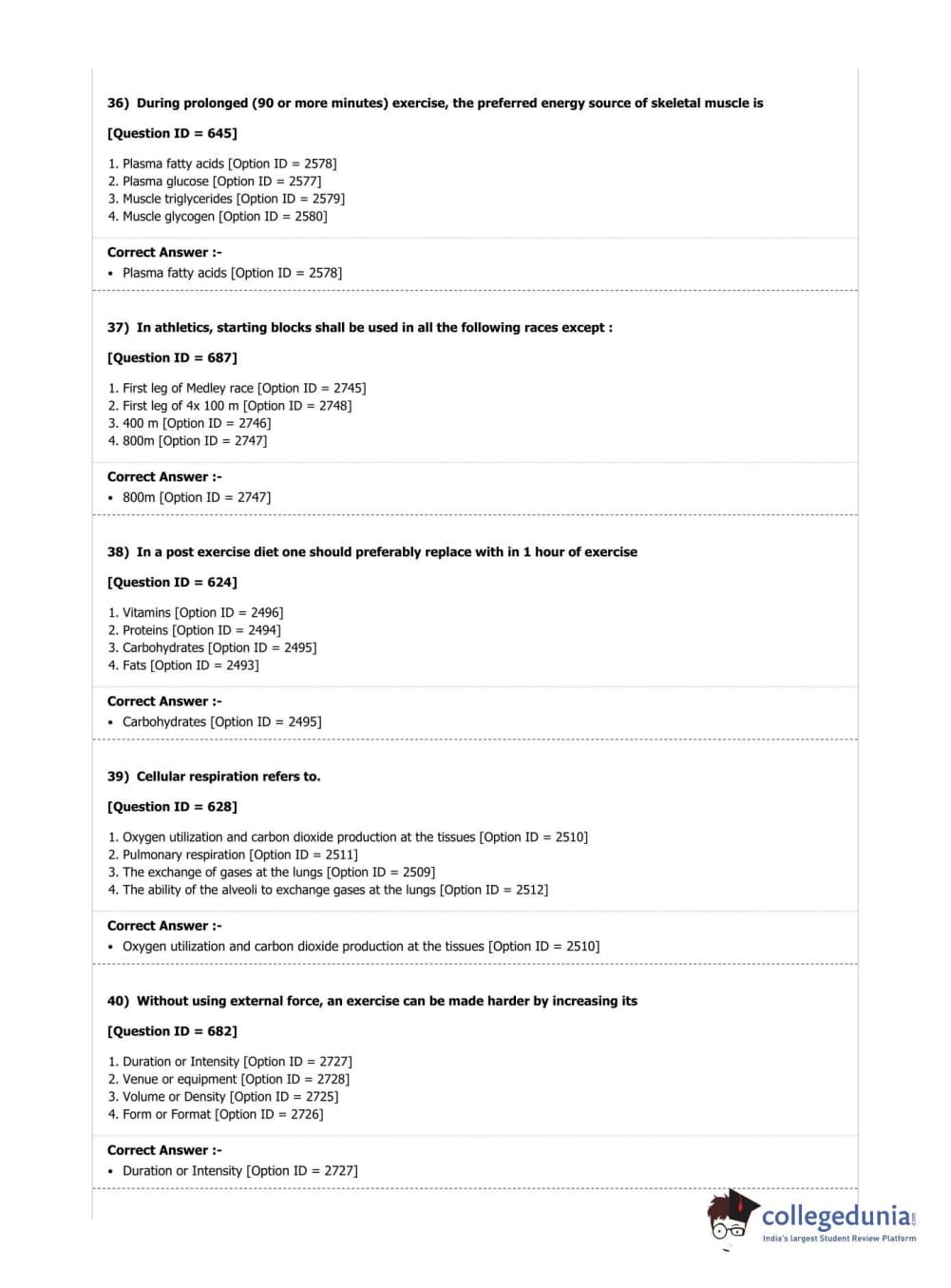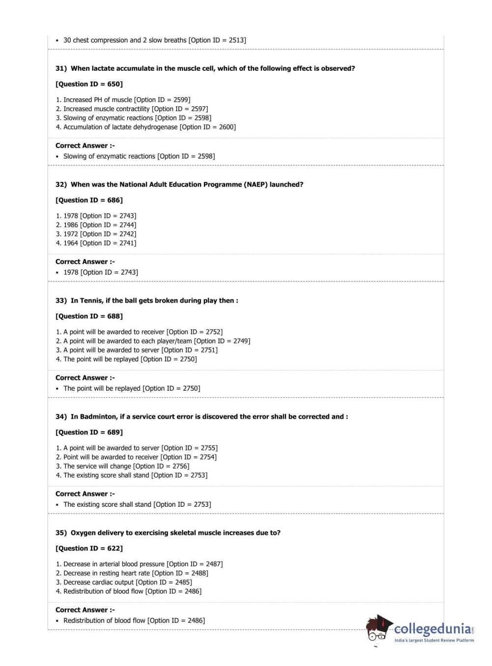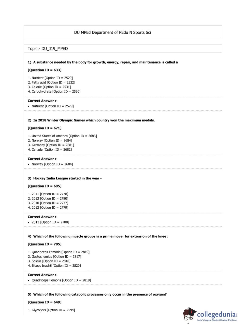 DUET 2019 M.P.Ed. Question Paper with Answer Key PDF Shift 2
