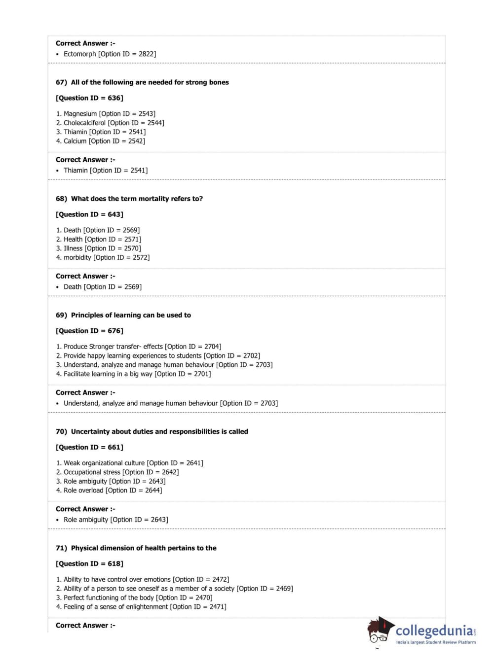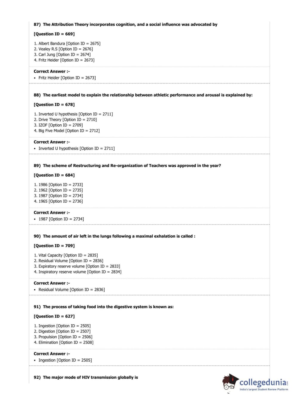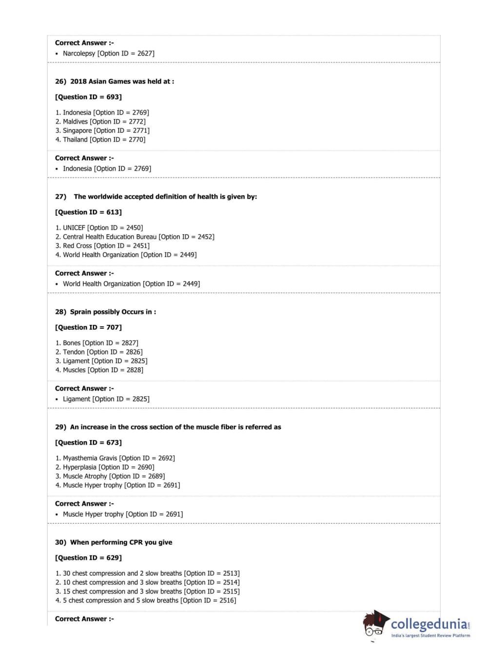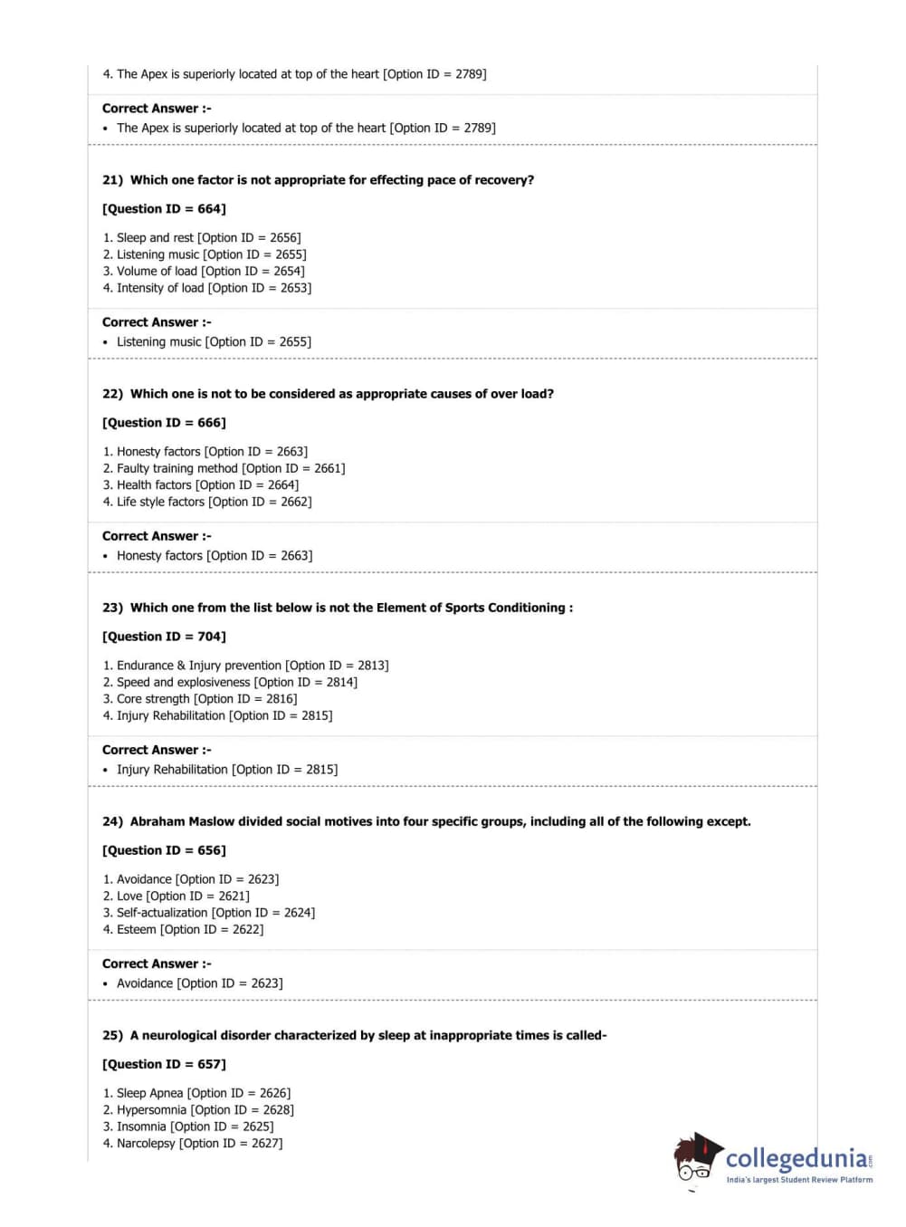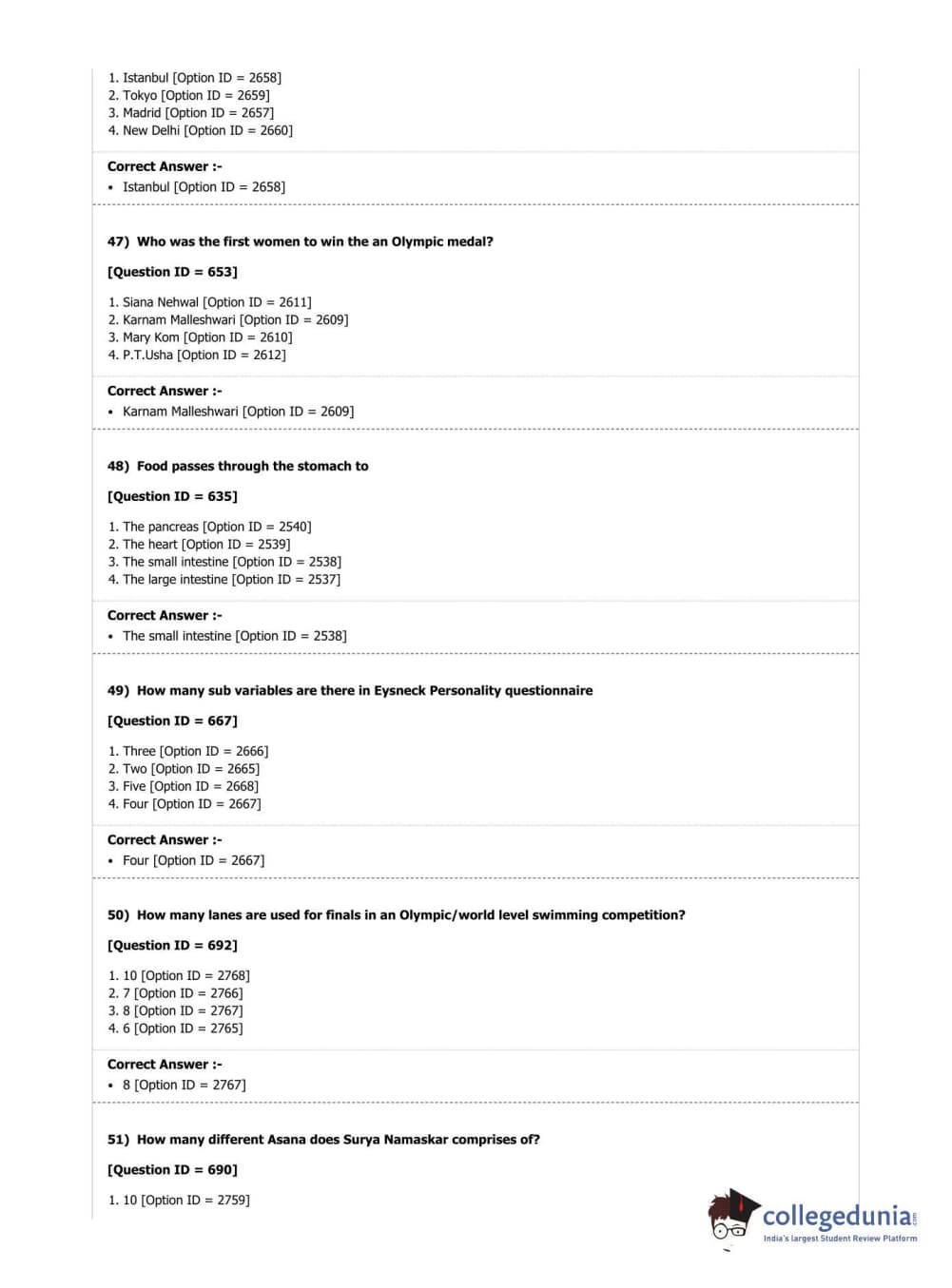 DUET 2019 M.P.Ed. Question Paper with Answer Key PDF Shift 2