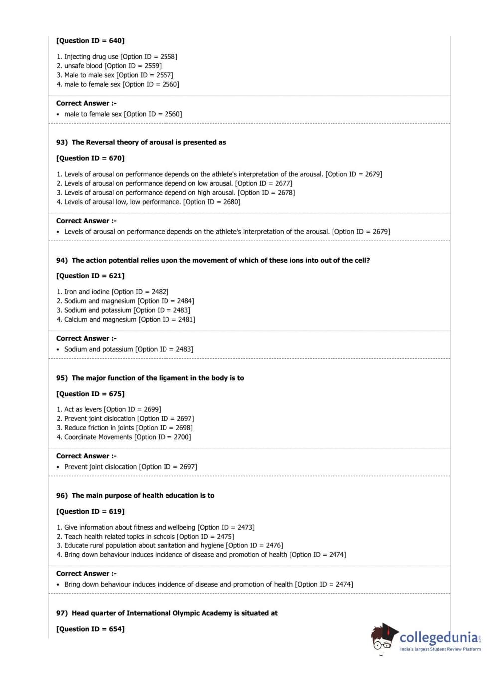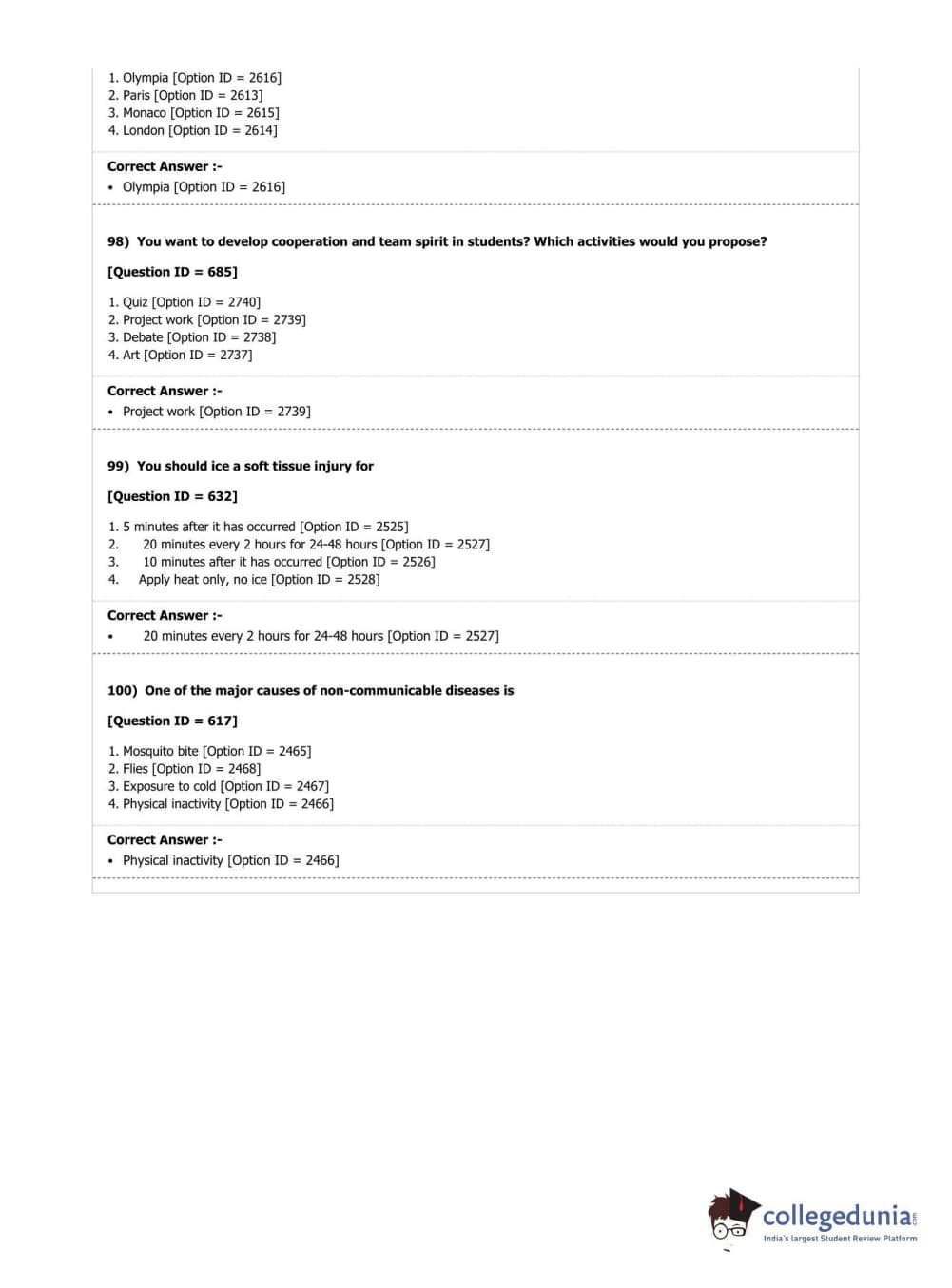 DUET 2019 M.P.Ed. (Department of Physical Education & Sports Sciences) Question paper with answer key pdf conducted on June 7, 2019 in Shift 2 is available for download. The exam was successfully organized by National Testing Agency (NTA). The question paper comprised a total of 100 questions.
