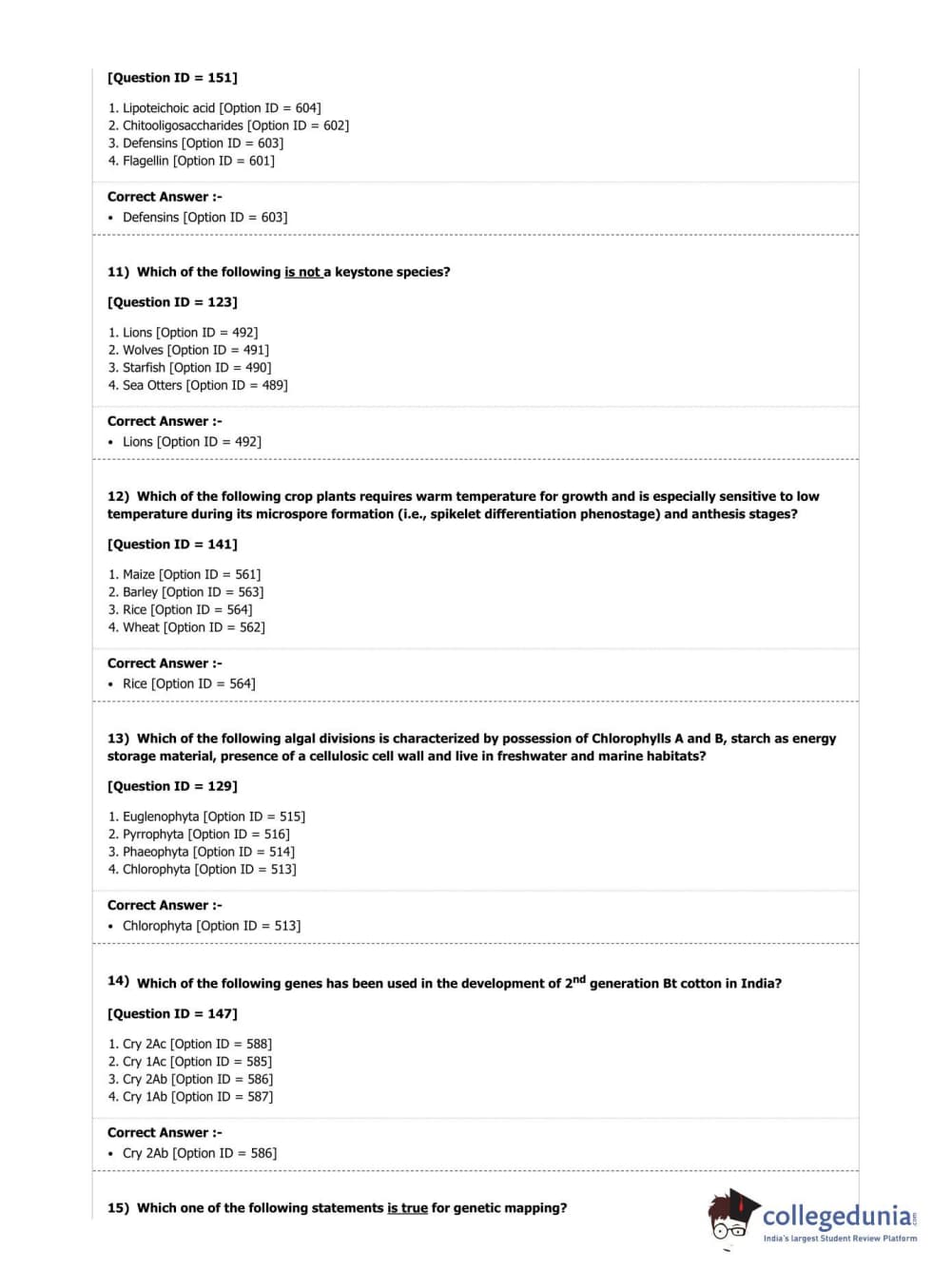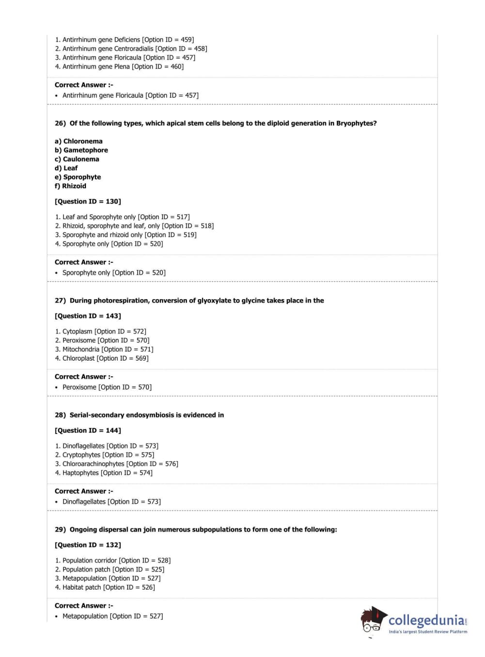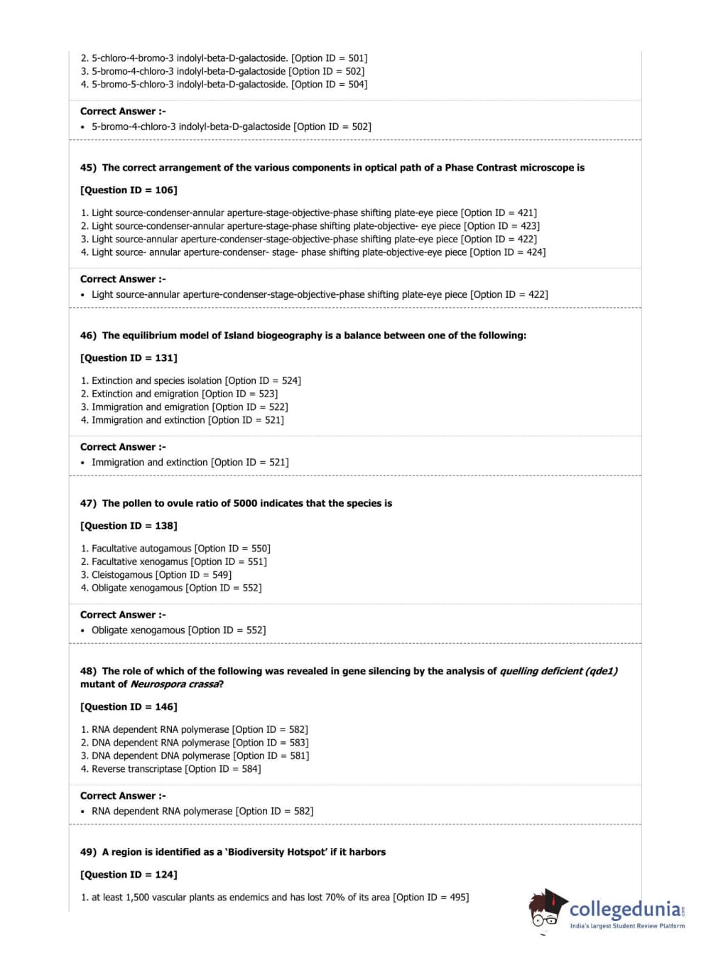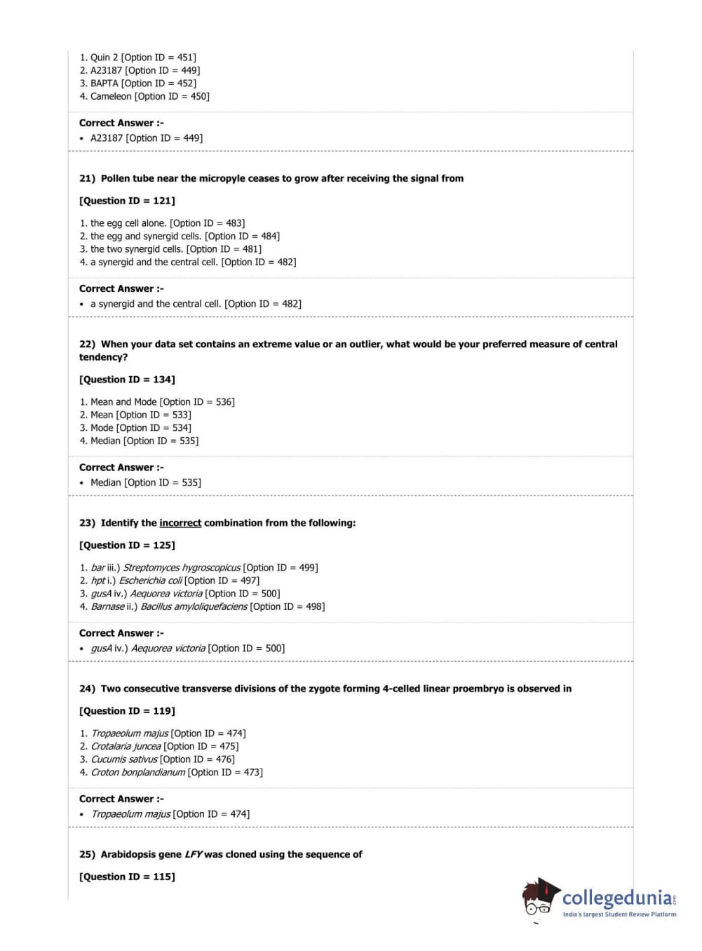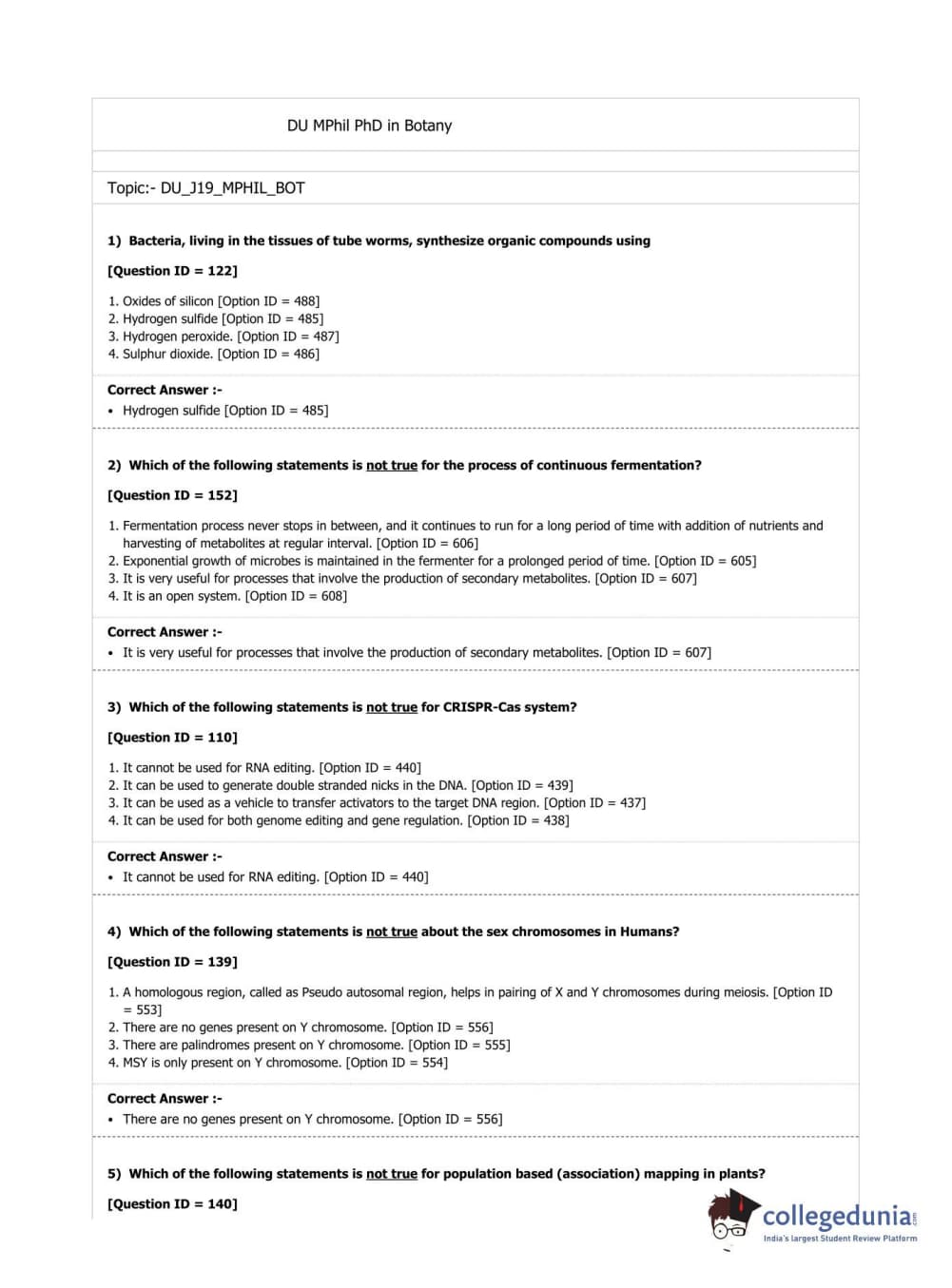 DUET 2019 M.Phil./Ph.D. in Botany Question Paper with Answer Key PDF Shift 1