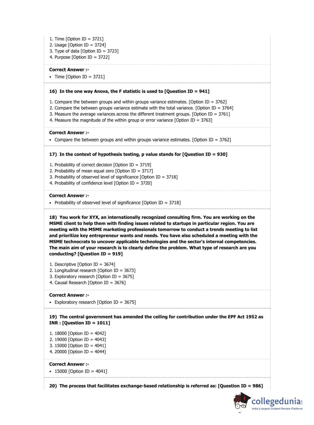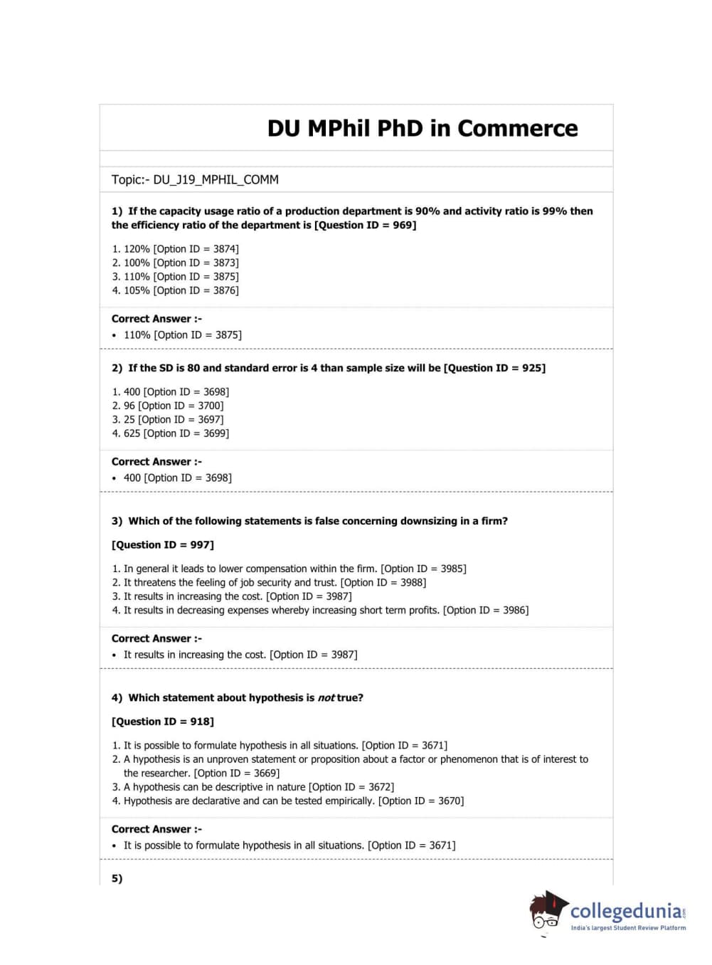 DUET 2019 M.Phil./Ph.D. in Commerce Question Paper with Answer Key PDF Shift 3