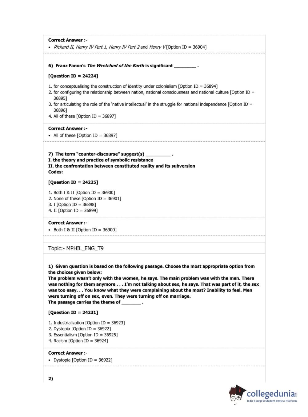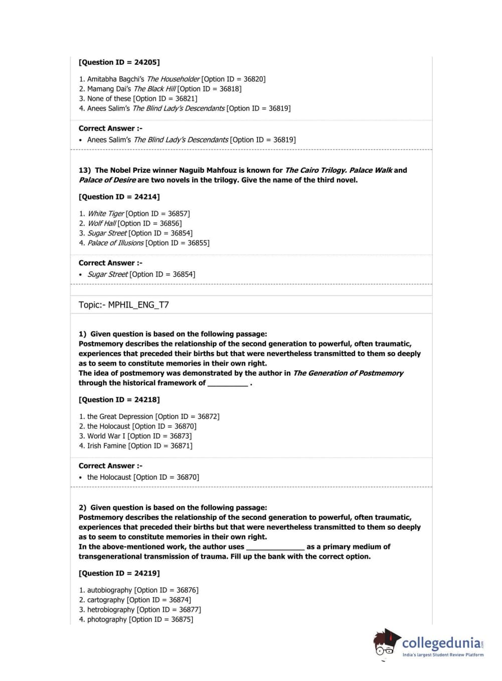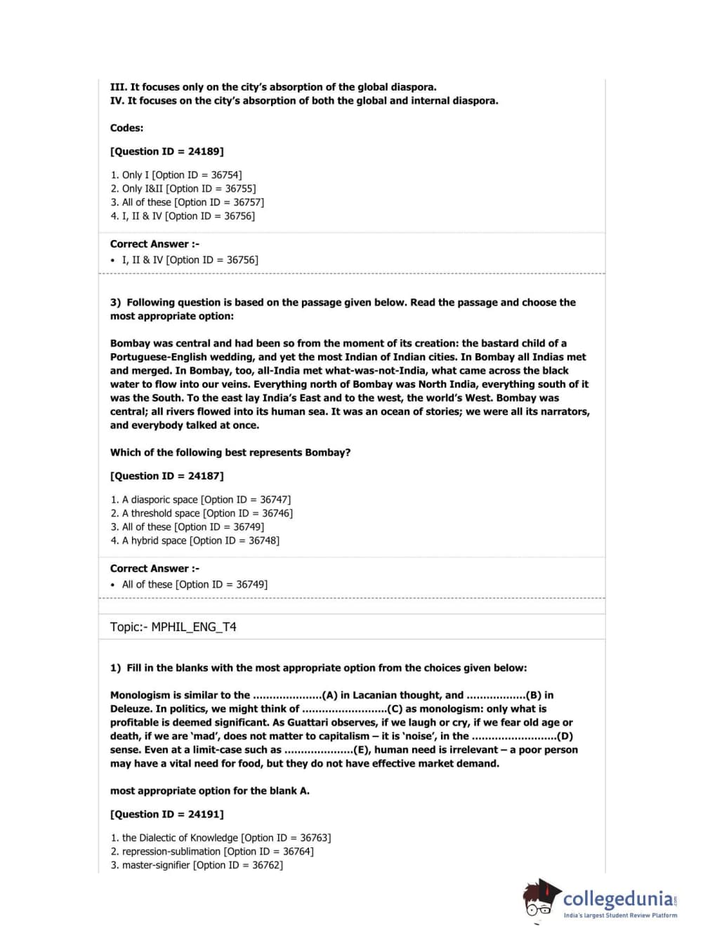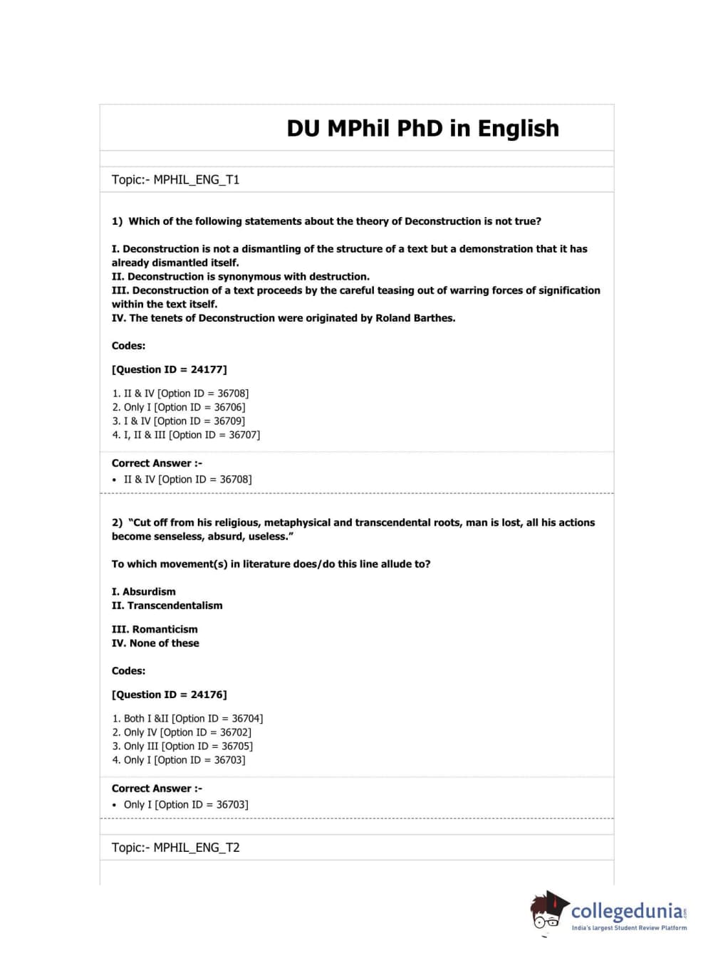 DUET 2019 M.Phil./Ph.D. in English Question Paper with Answer Key PDF Shift 1