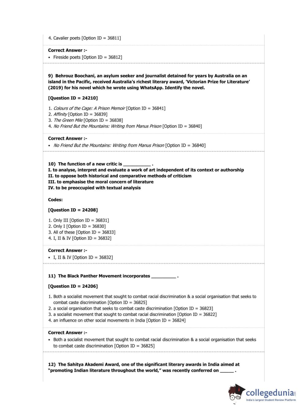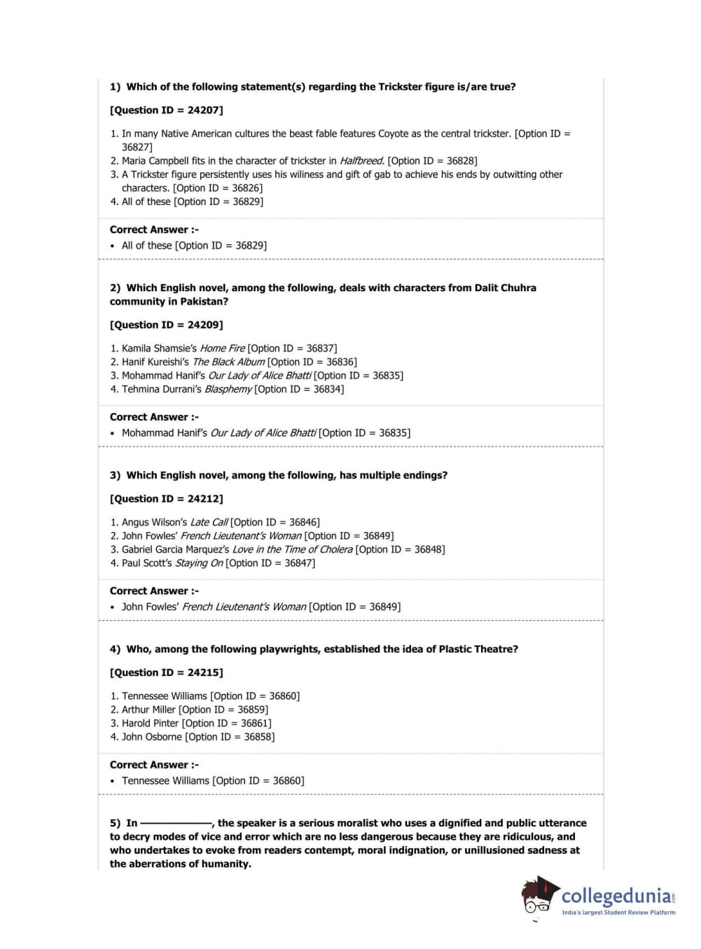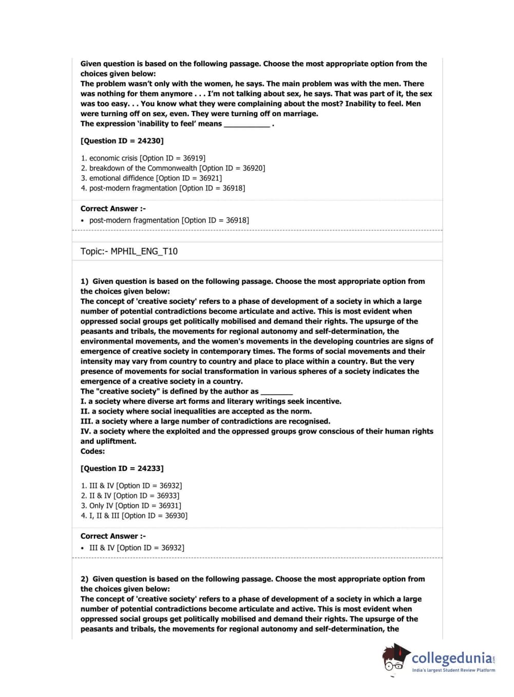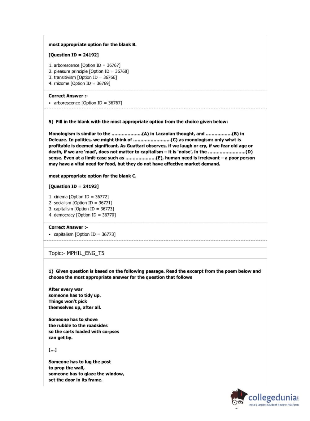 DUET 2019 M.Phil./Ph.D. in English Question Paper with Answer Key PDF Shift 1