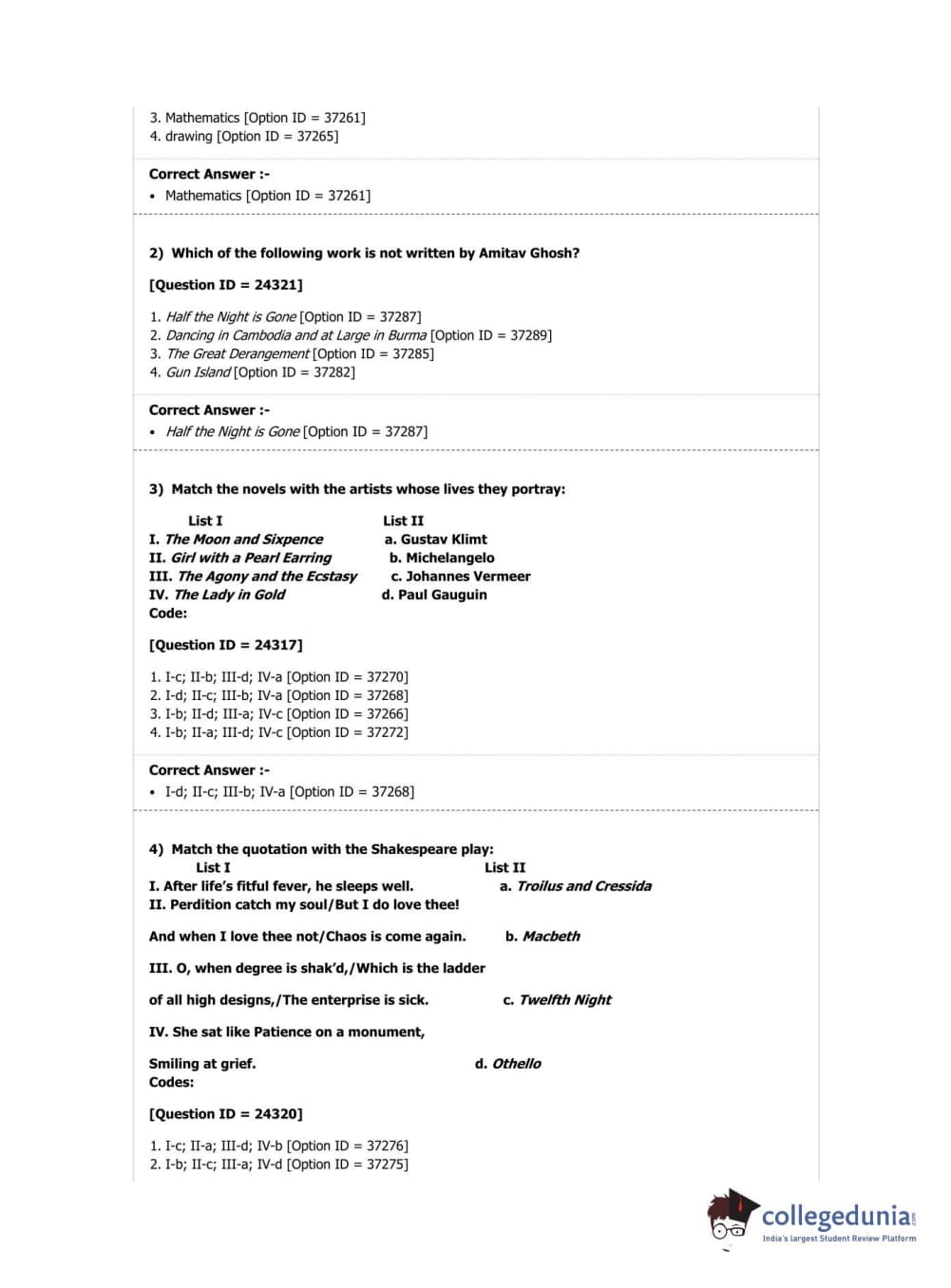 | DUET Subject | Question Paper with Answer Key PDF |