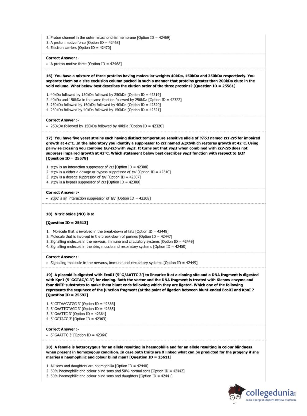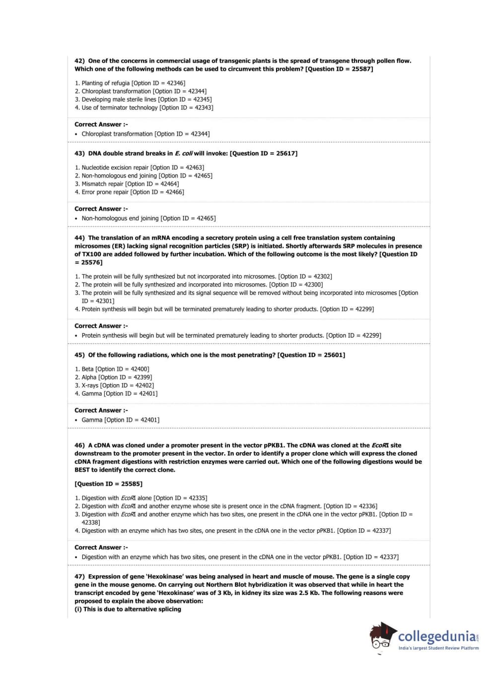 DUET 2019 M.Phil./Ph.D. in Genetics Question Paper with Answer Key PDF Shift 3
