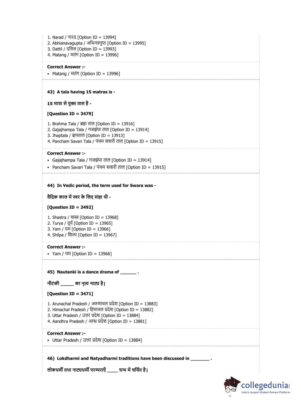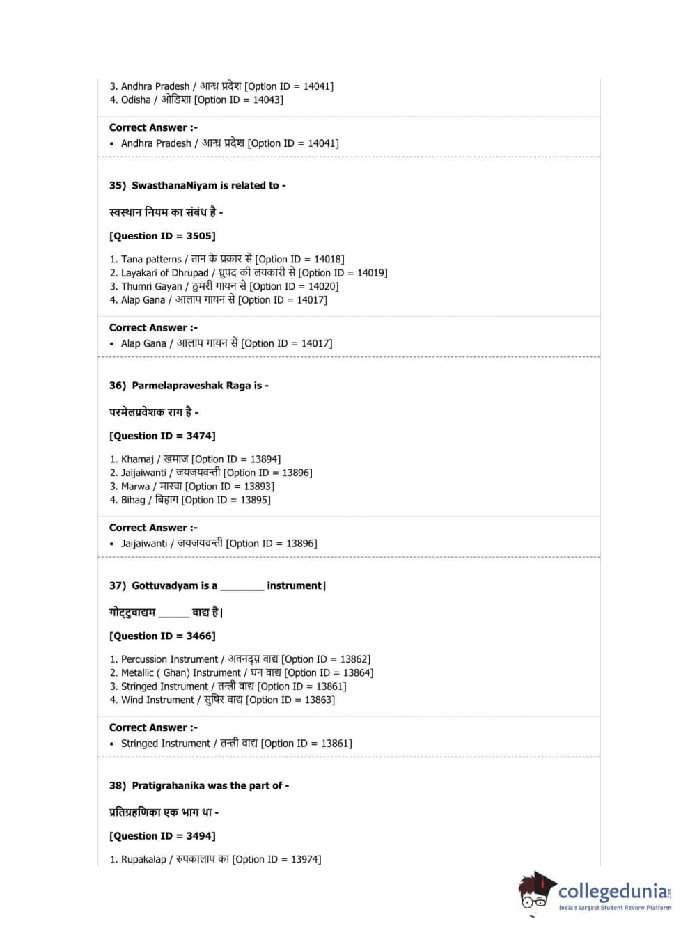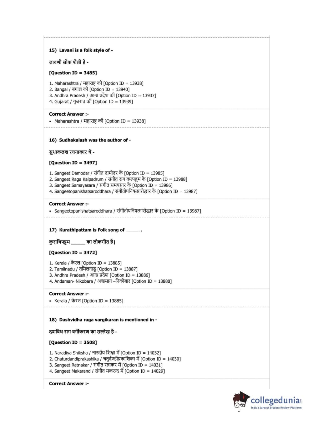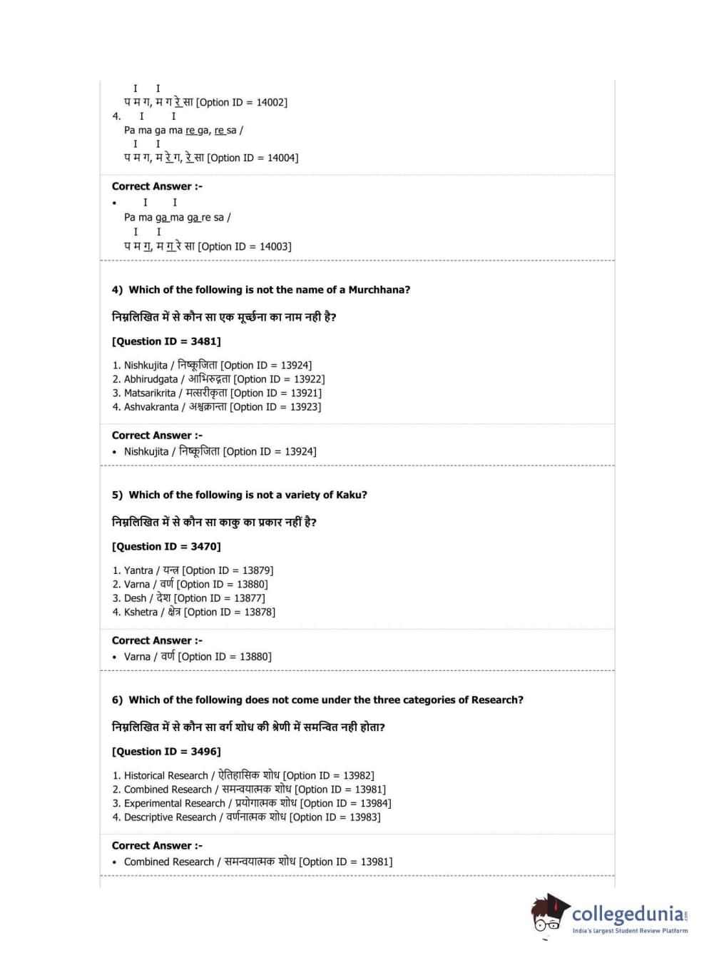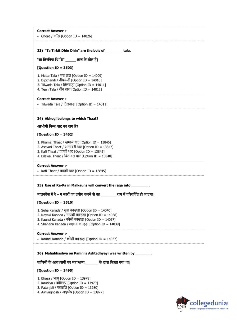 DUET 2019 M.Phil./Ph.D. in Hindustani Music Question Paper with Answer Key PDF Shift 1