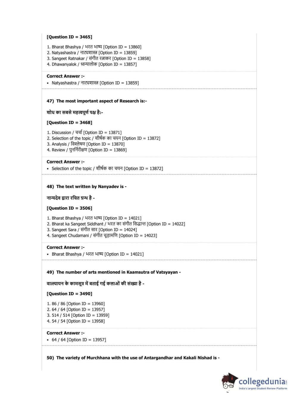 DUET 2019 M.Phil./Ph.D. in Hindustani Music Question paper with answer key pdf conducted on May 7, 2019 in Shift 1 is available for download. The exam was successfully organized by National Testing Agency (NTA). The question paper comprised a total of 50 questions.