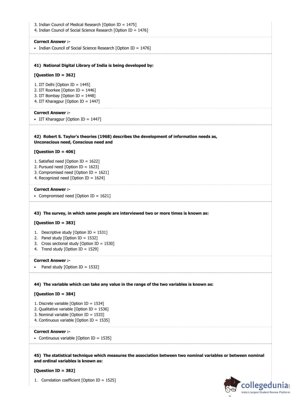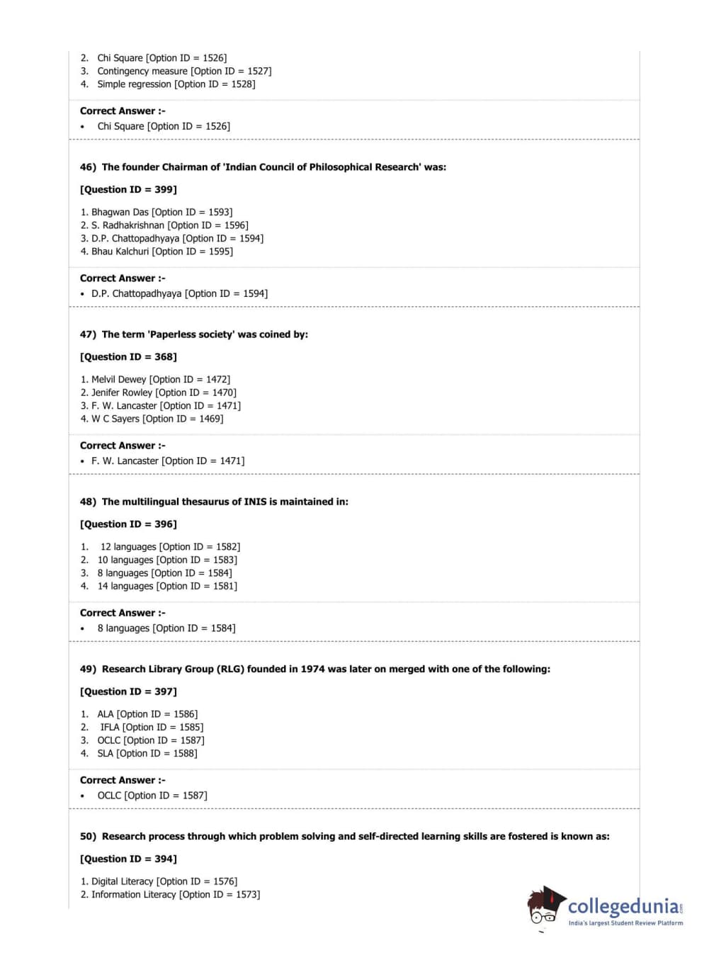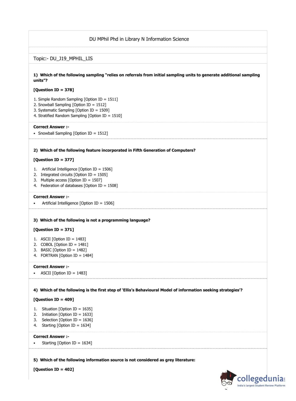 DUET 2019 M.Phil./Ph.D. in Library & Information Science (Deptt. of Library & Info. Sc.) Question paper with answer key pdf conducted on July 7, 2019 in Shift 2 is available for download. The exam was successfully organized by National Testing Agency (NTA). The question paper comprised a total of 50 questions.
