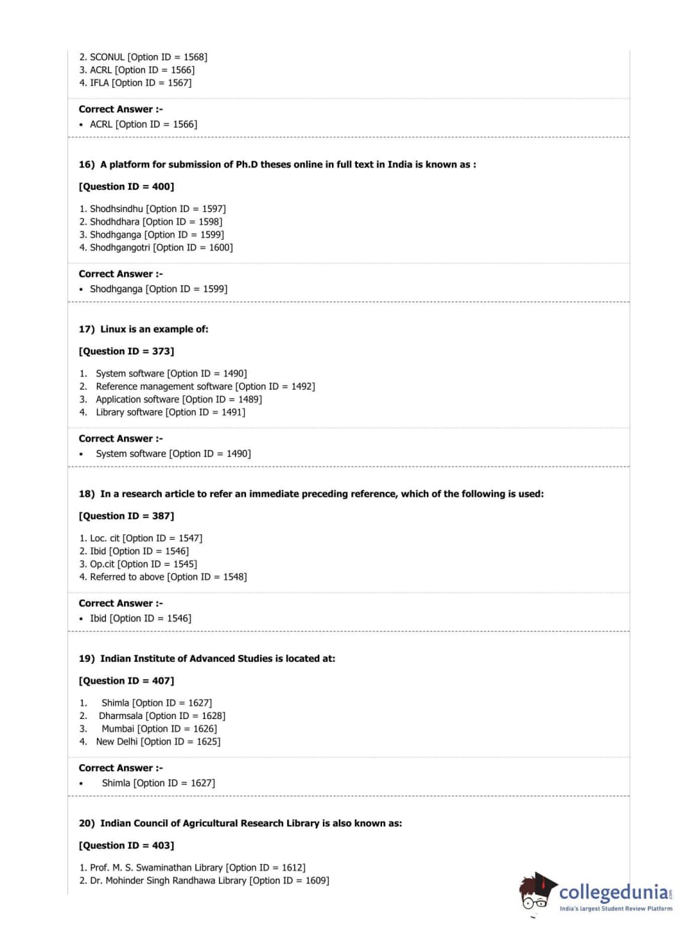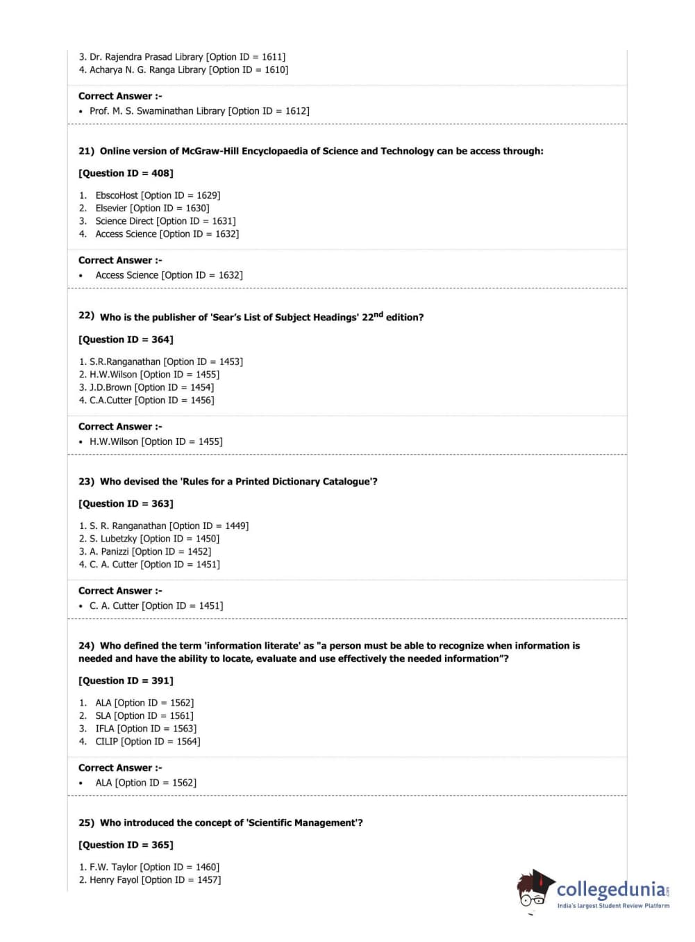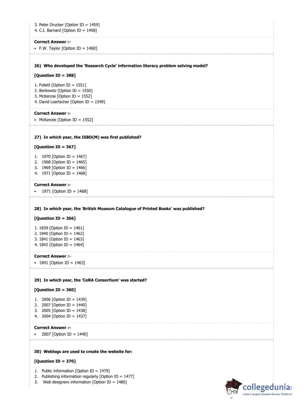 DUET 2019 M.Phil./Ph.D. in Library & Information Science Question Paper with Answer Key PDF Shift 2