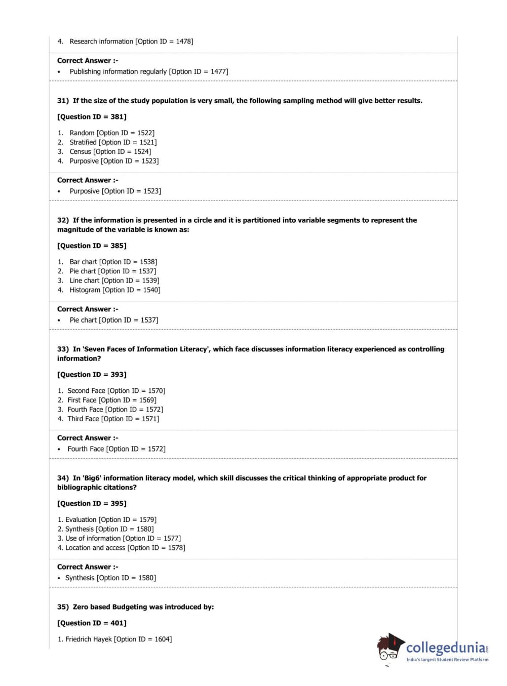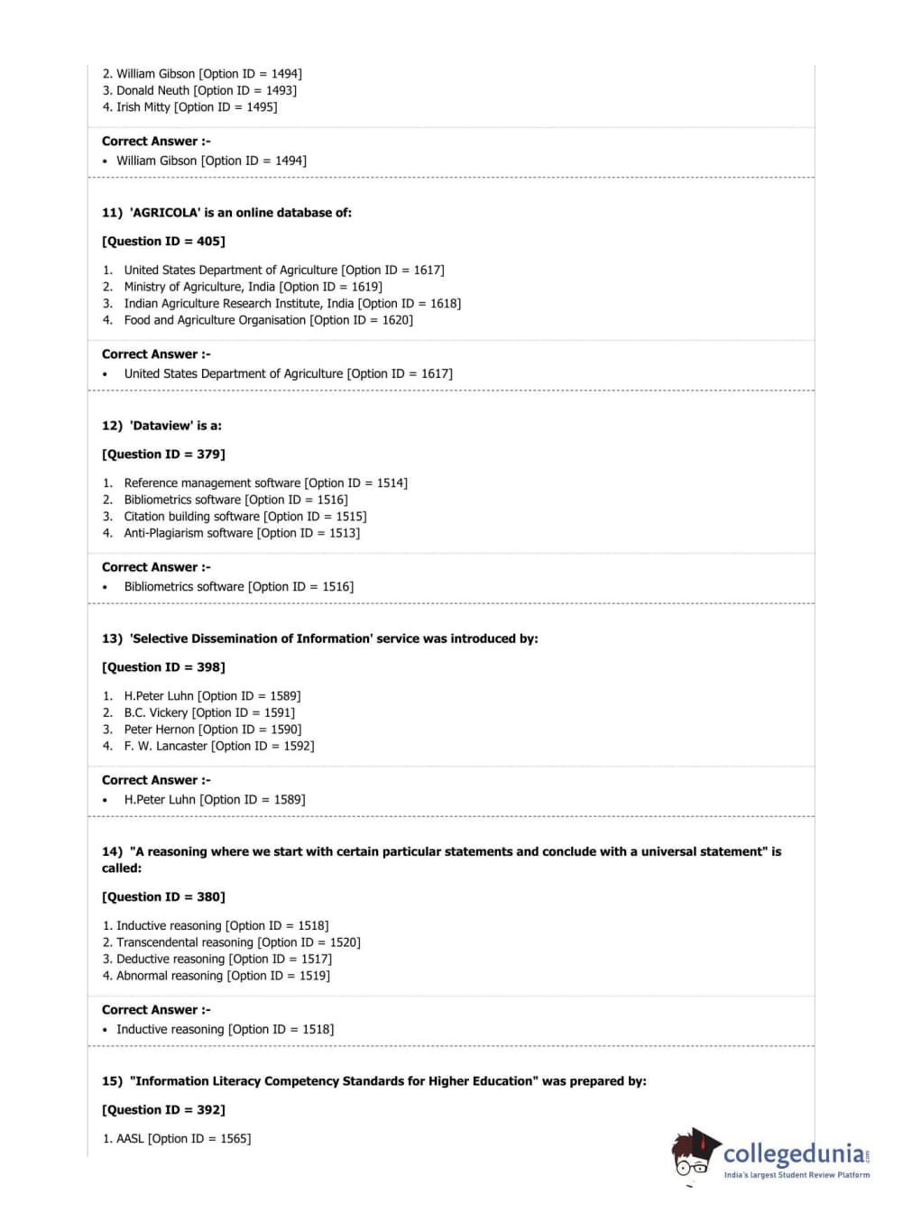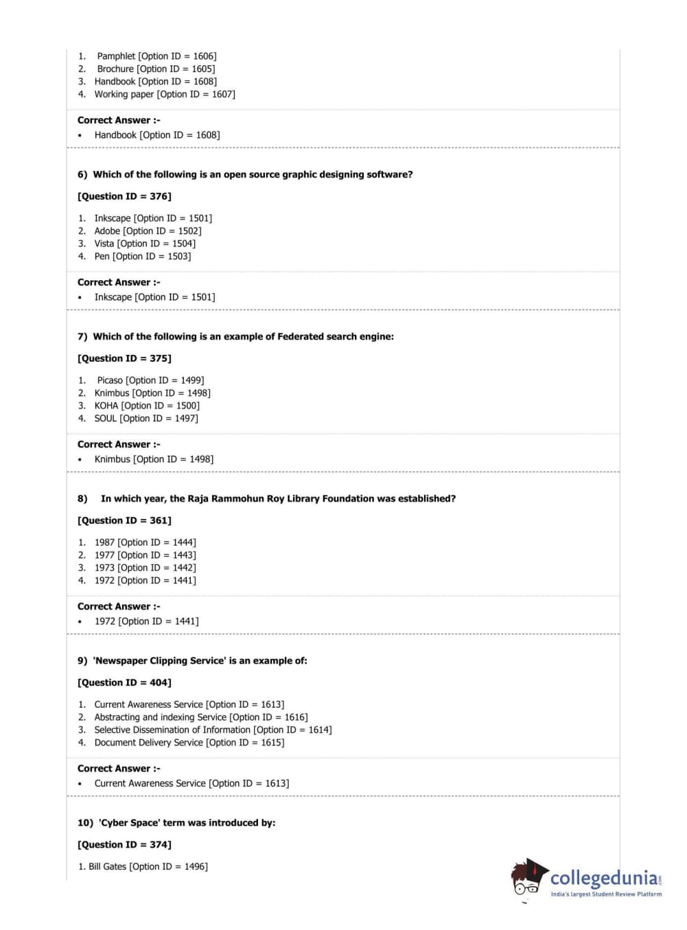 DUET 2019 M.Phil./Ph.D. in Library & Information Science Question Paper with Answer Key PDF Shift 2