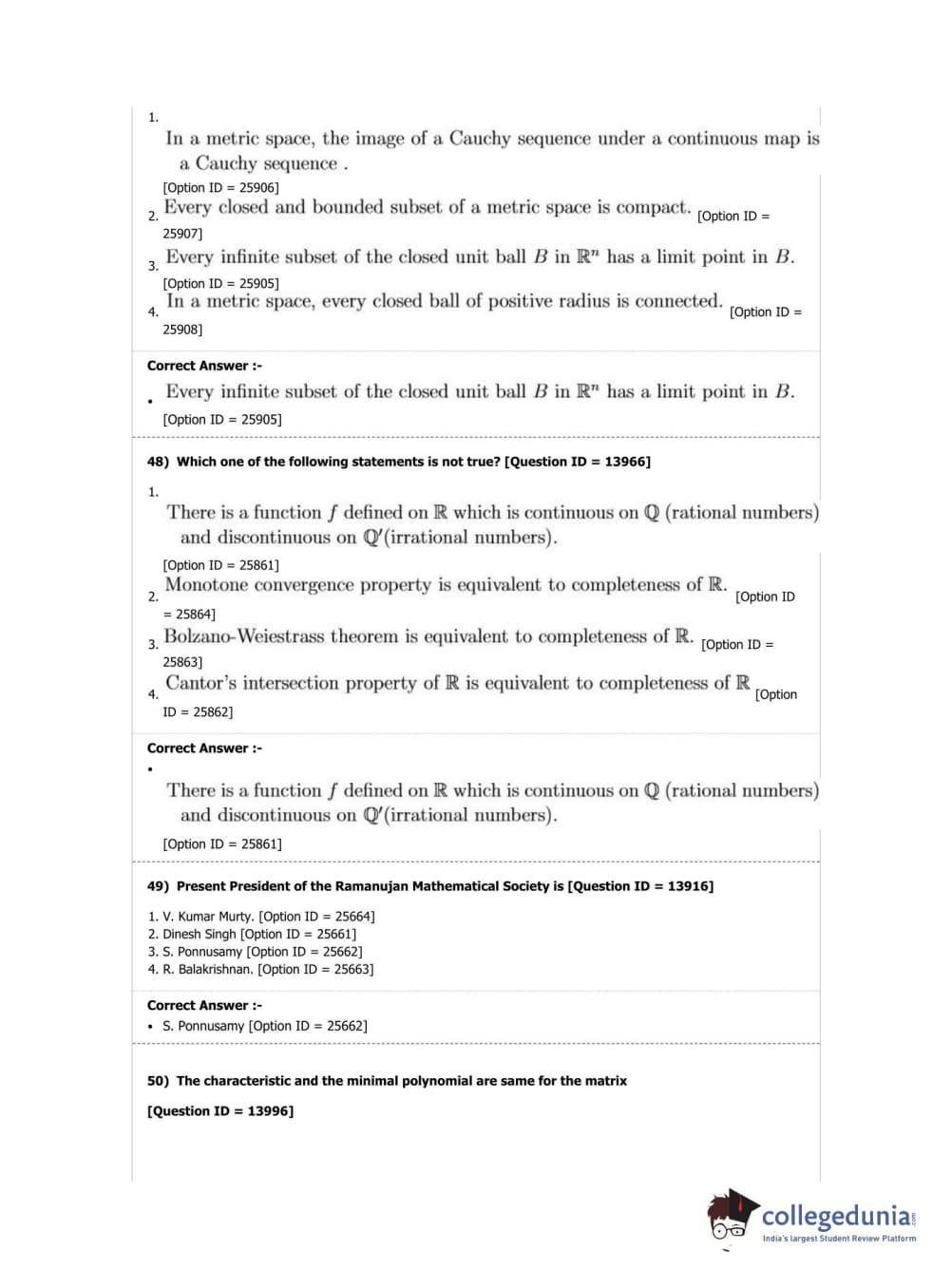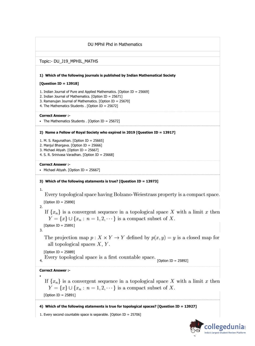 DUET 2019 M.Phil./Ph.D. in Mathematics Question paper with answer key pdf conducted on April 7, 2019 in Shift 2 is available for download. The exam was successfully organized by National Testing Agency (NTA). The question paper comprised a total of 50 questions.