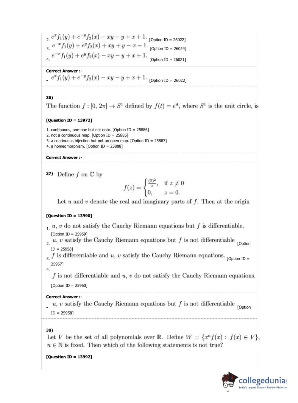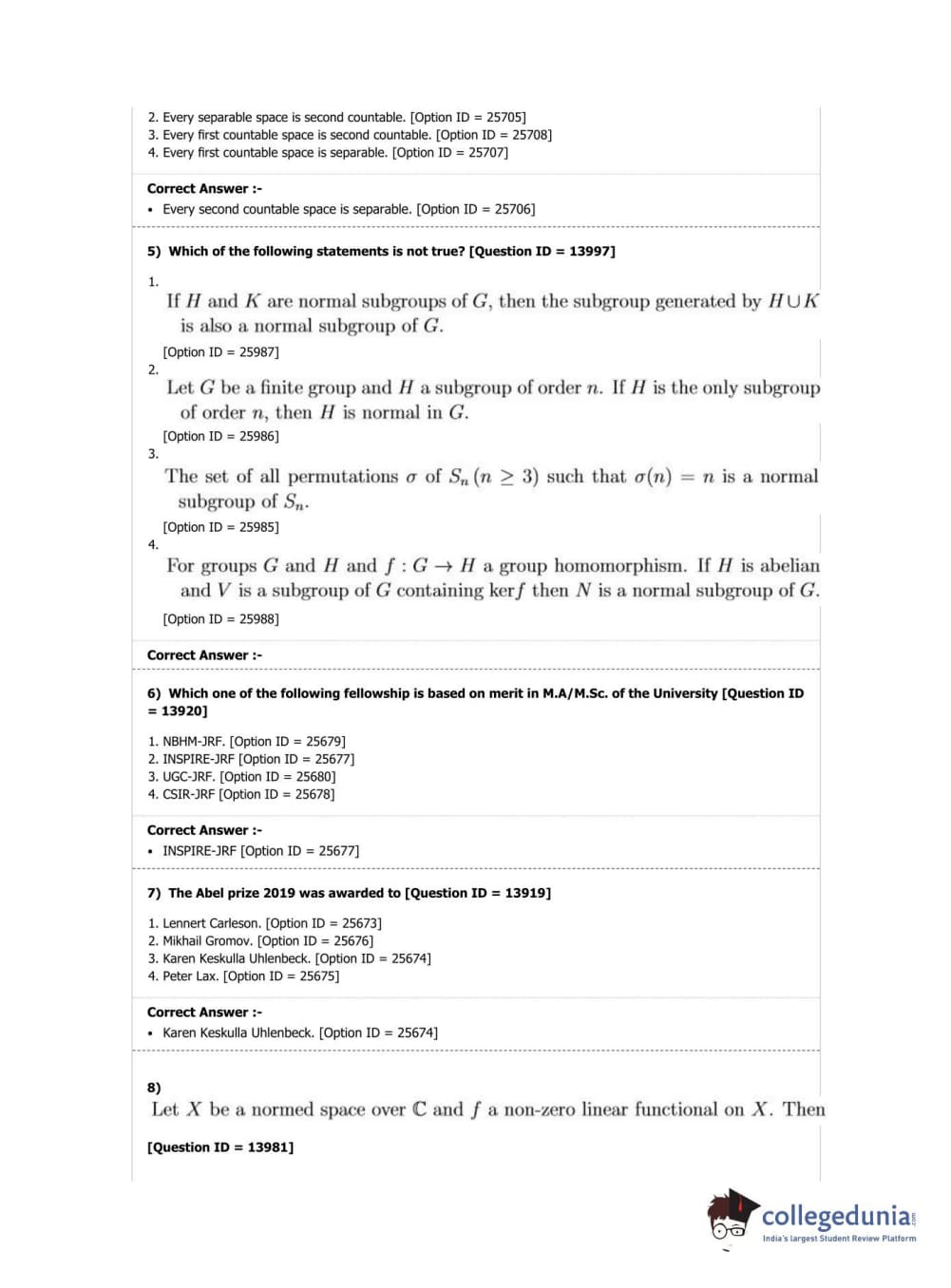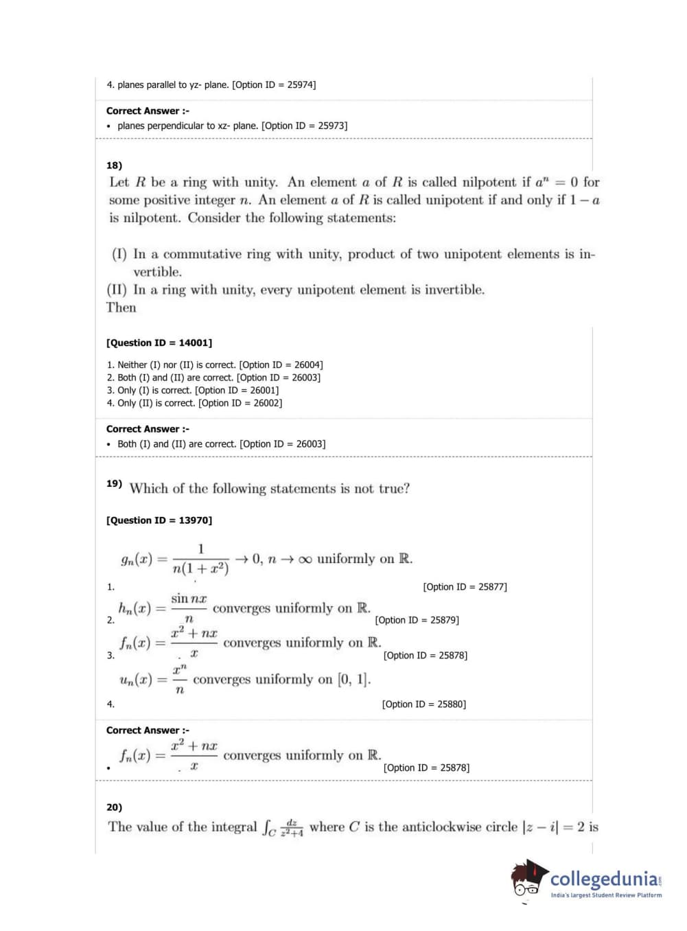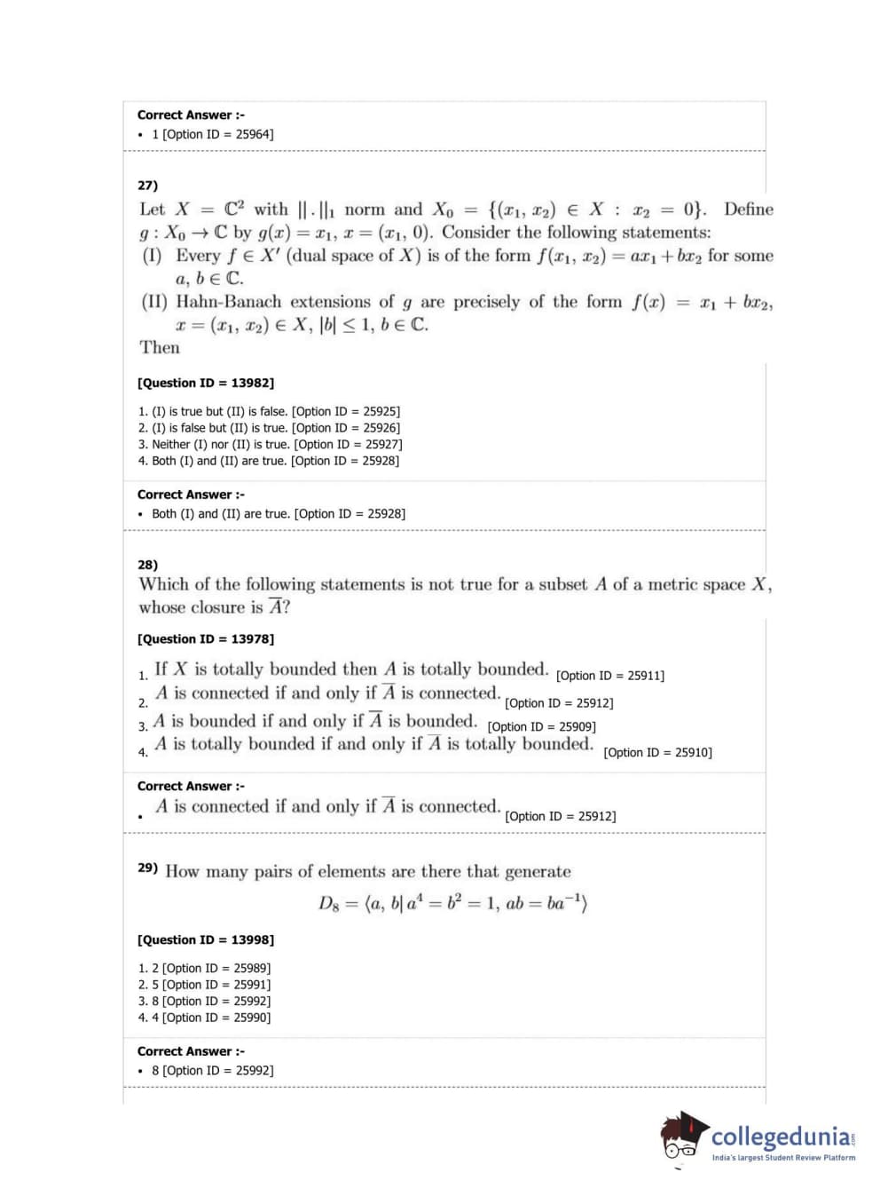 DUET 2019 M.Phil./Ph.D. in Mathematics Question Paper with Answer Key PDF Shift 2