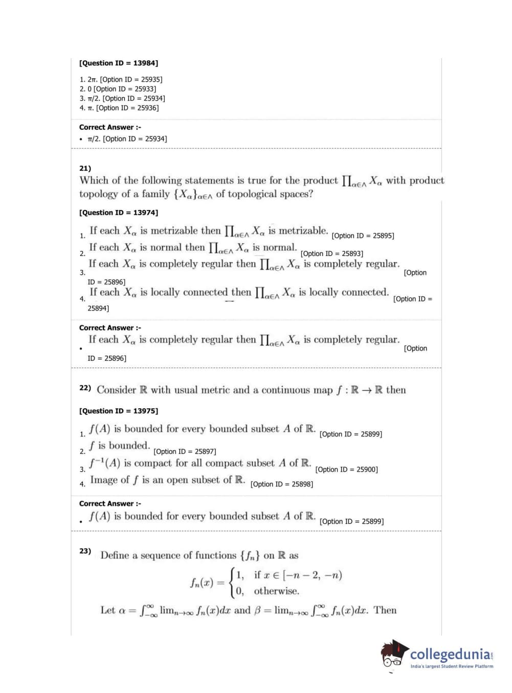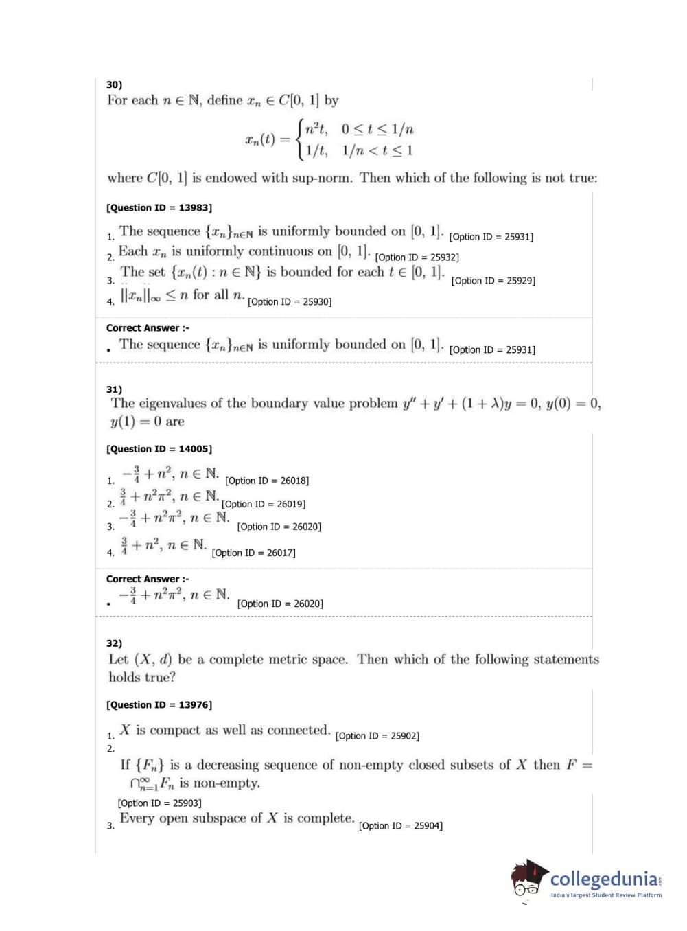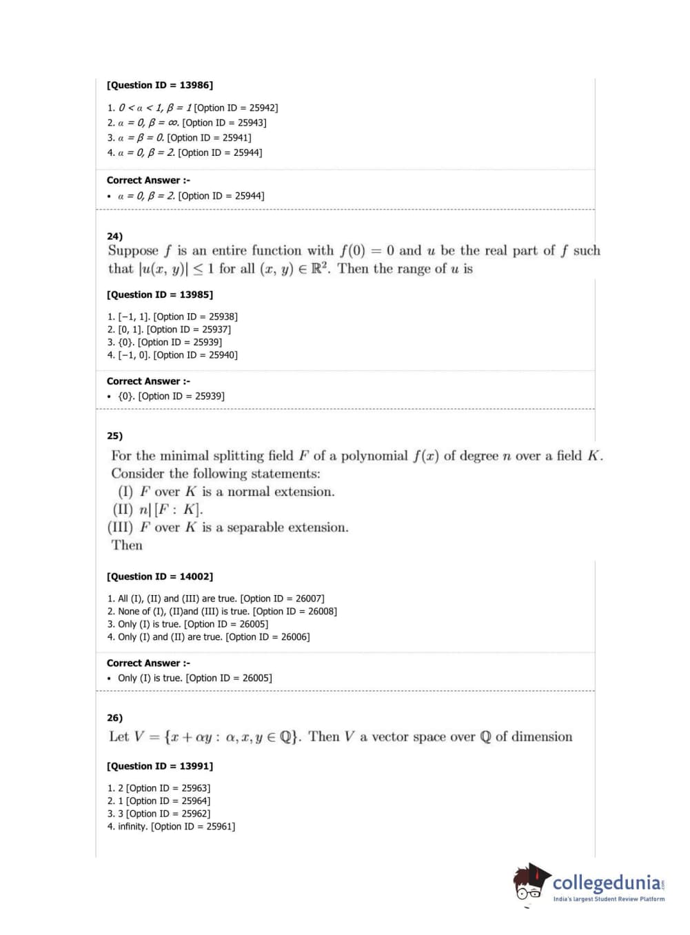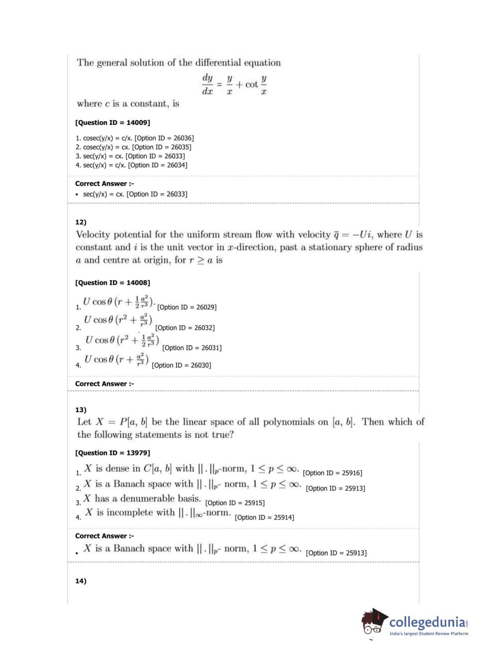 DUET 2019 M.Phil./Ph.D. in Mathematics Question Paper with Answer Key PDF Shift 2