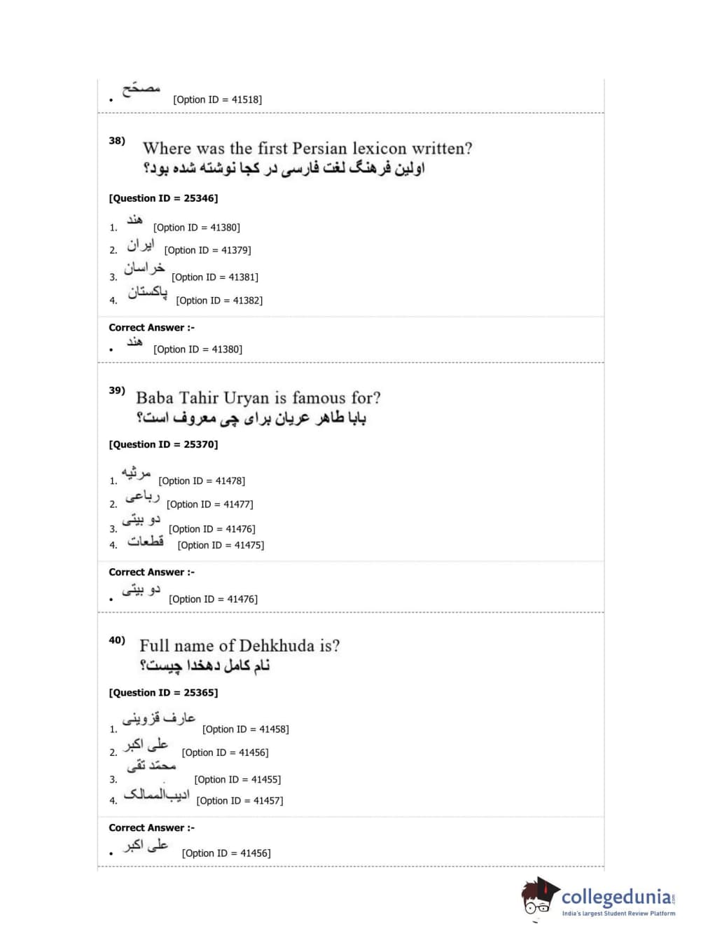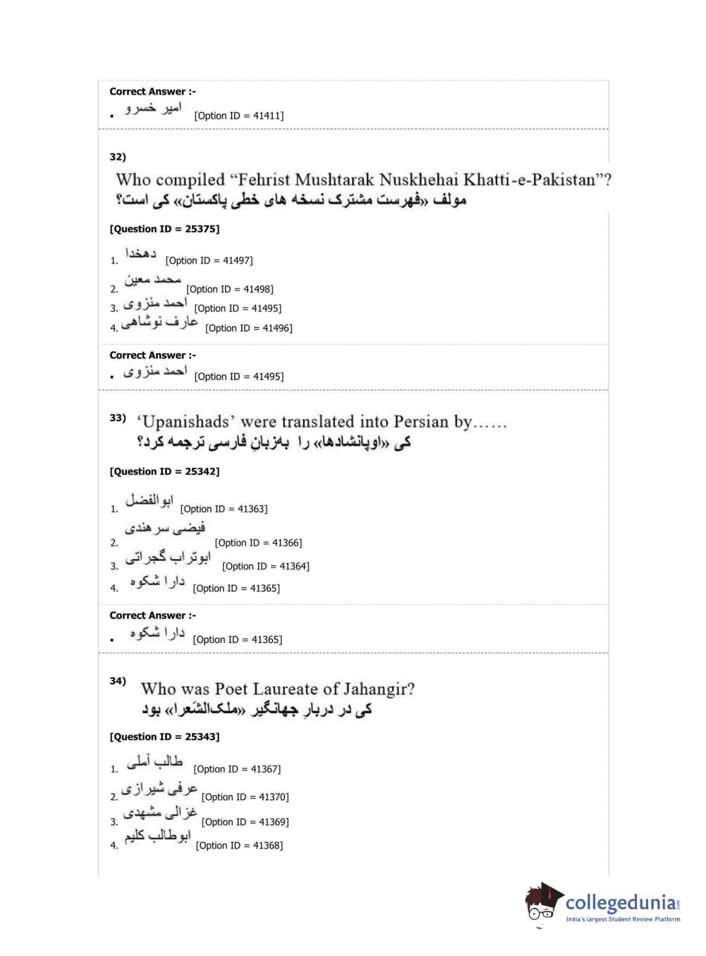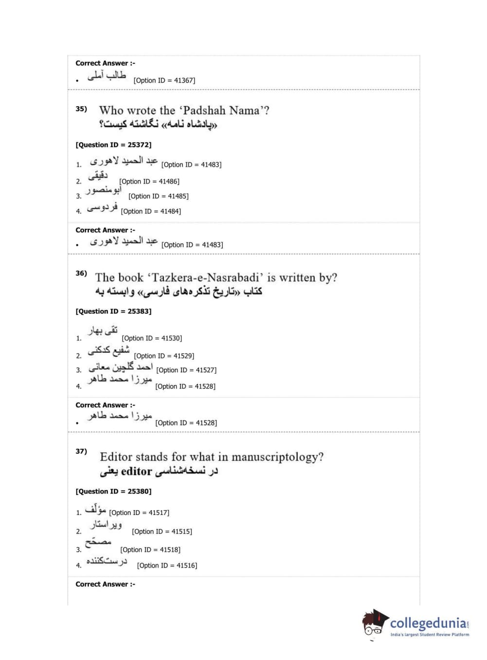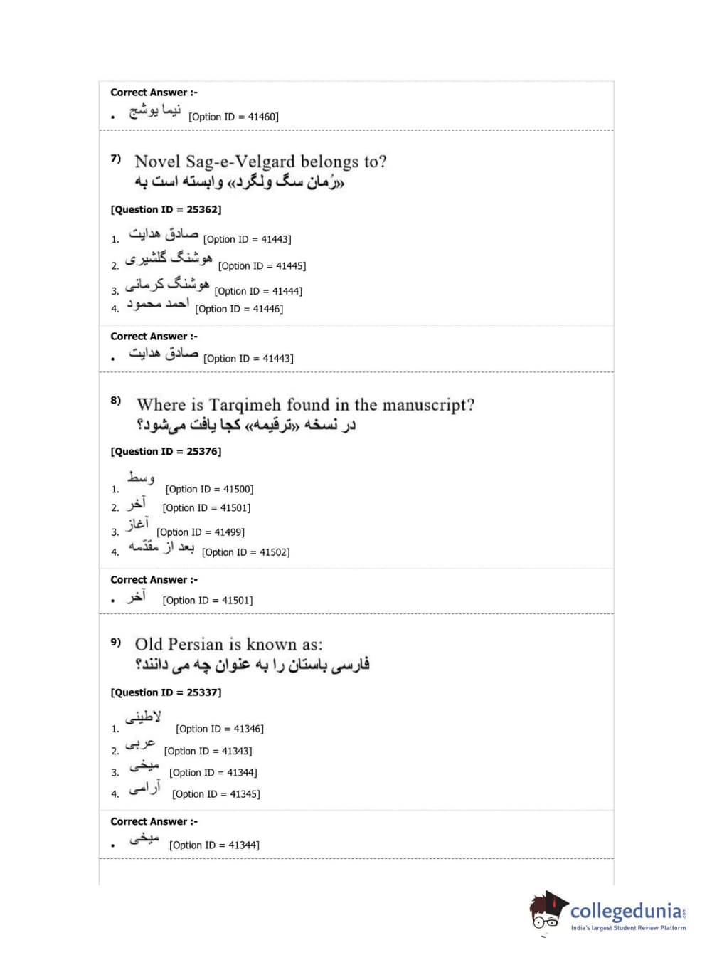 DUET 2019 M.Phil./Ph.D. in Persian Question Paper with Answer Key PDF Shift 2