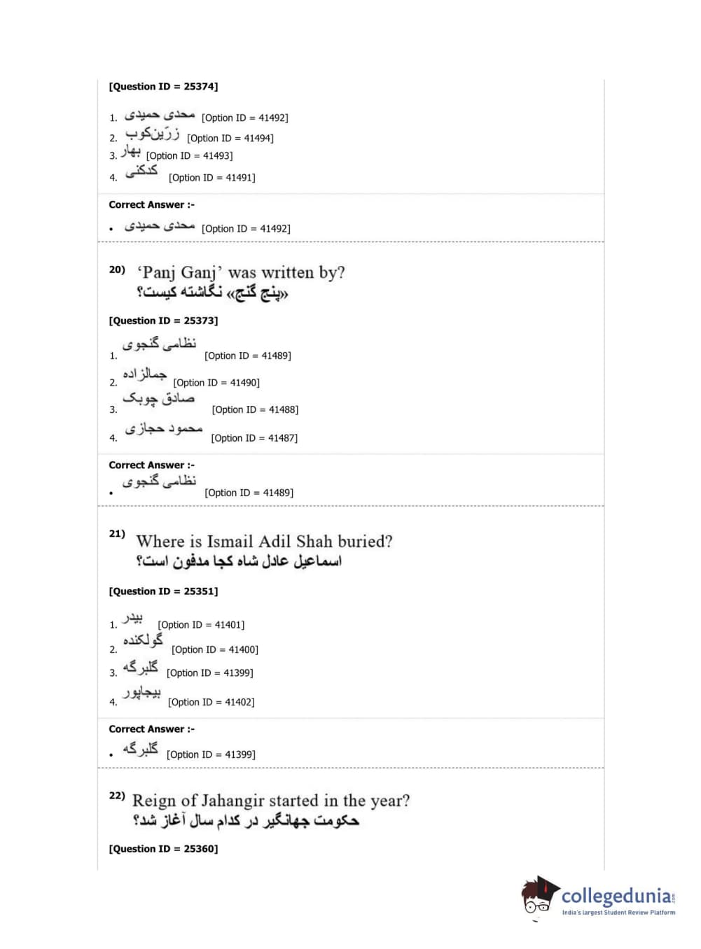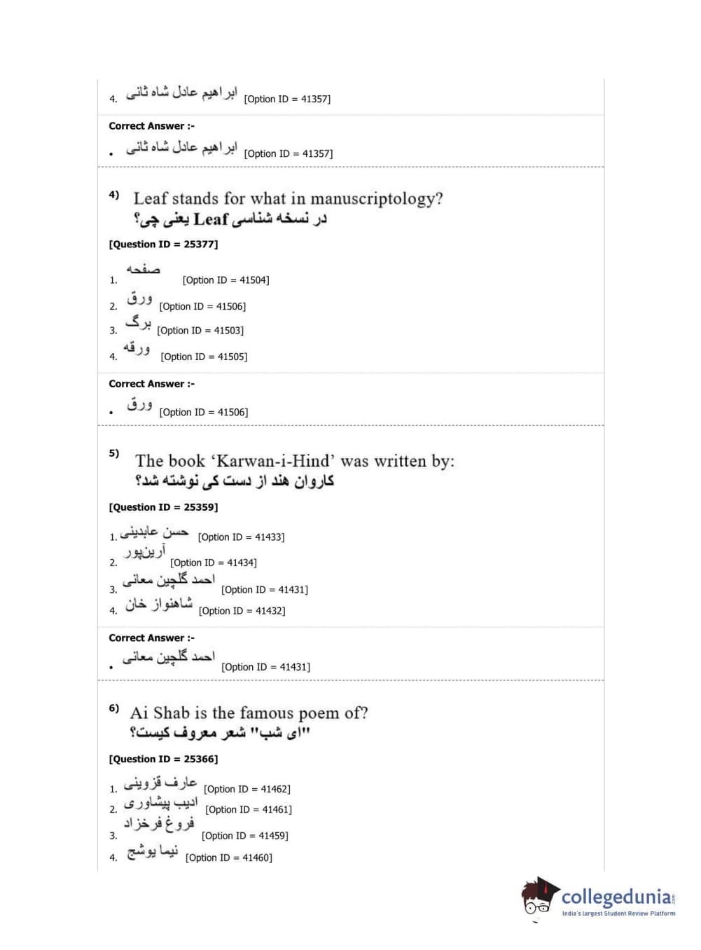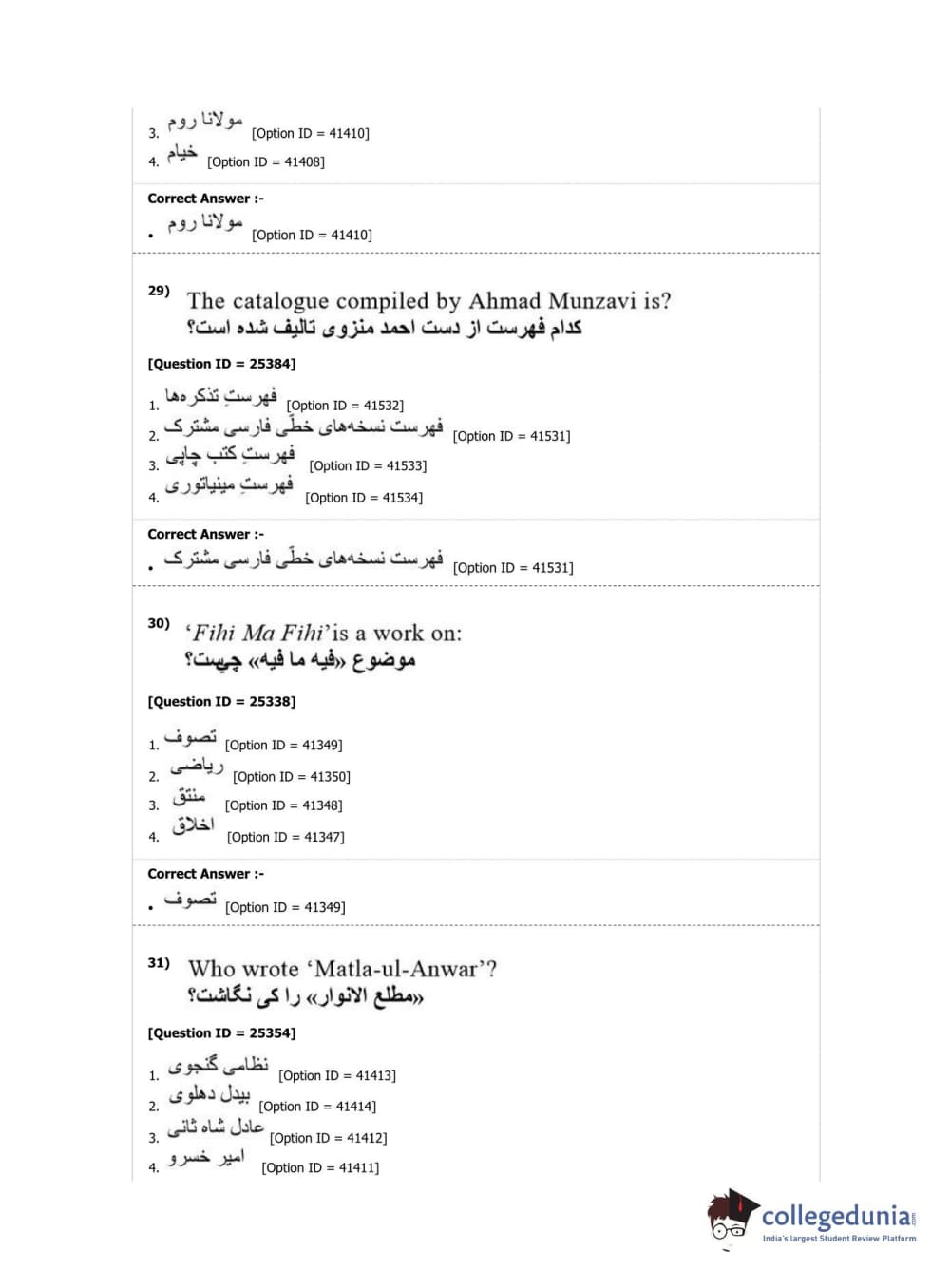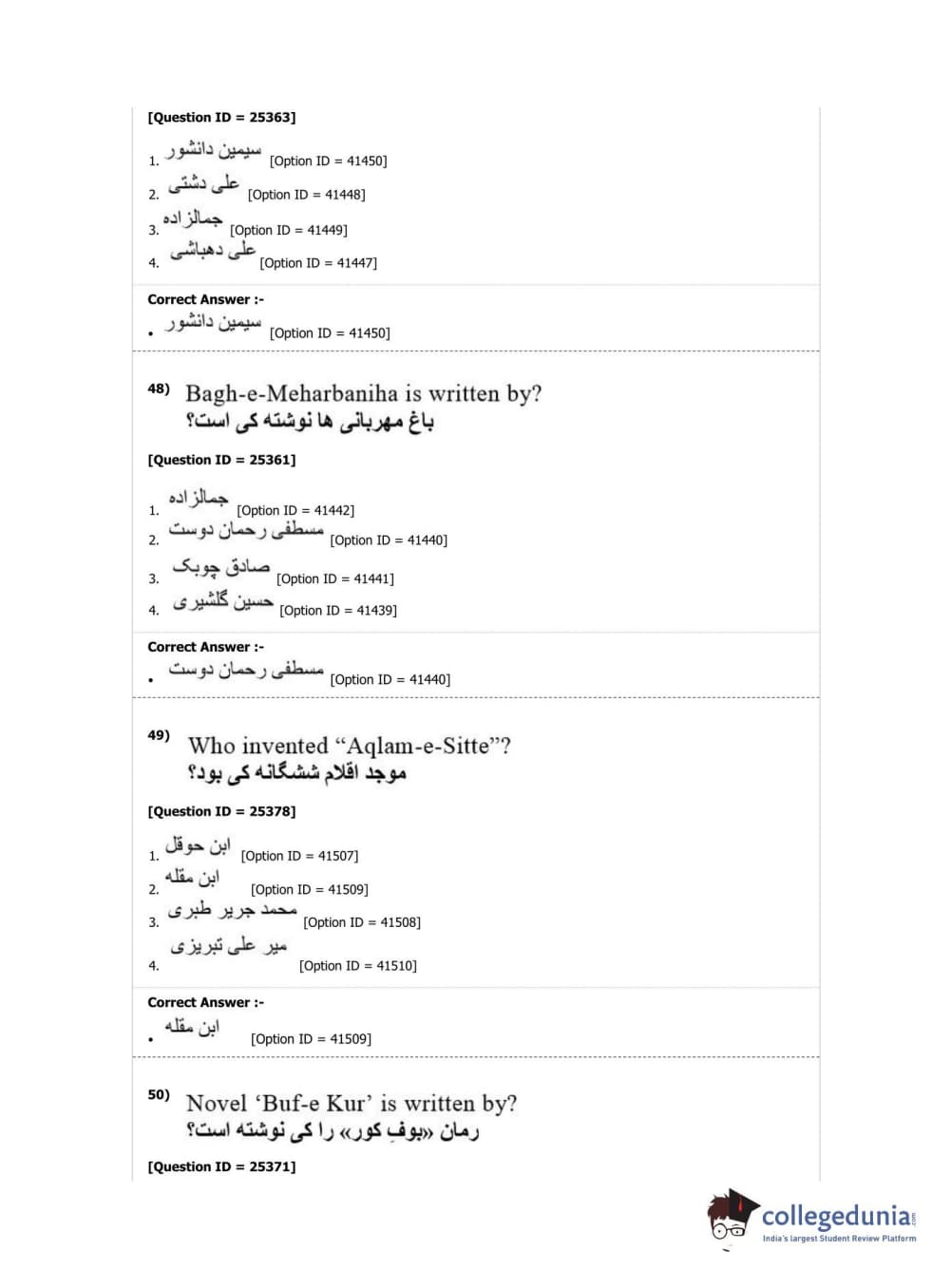 DUET 2019 M.Phil./Ph.D. in Persian Question Paper with Answer Key PDF Shift 2