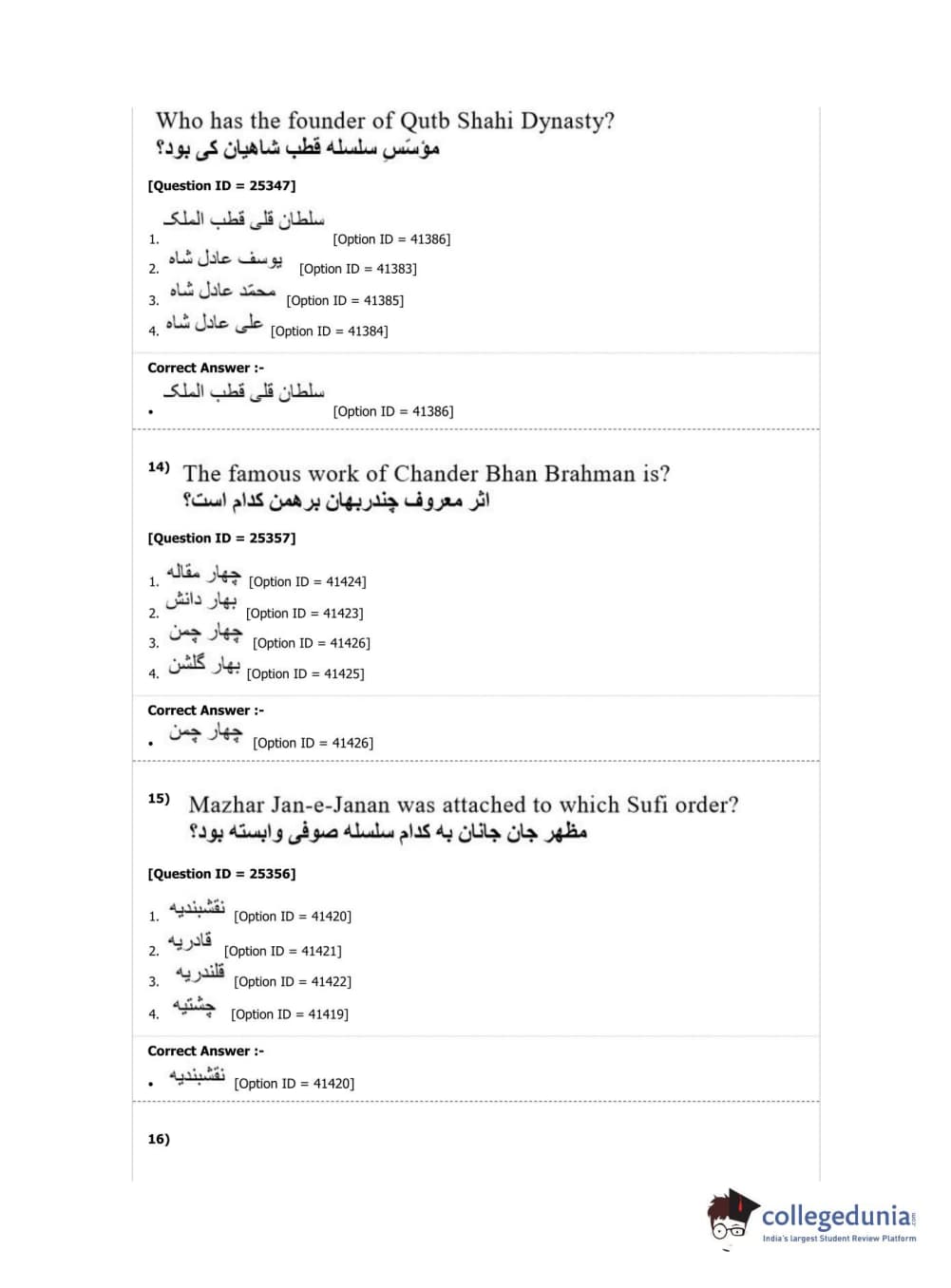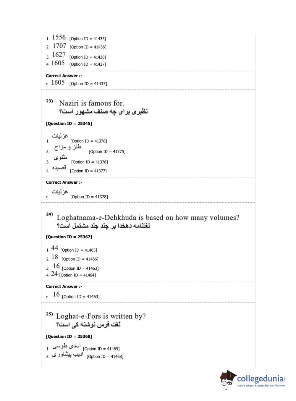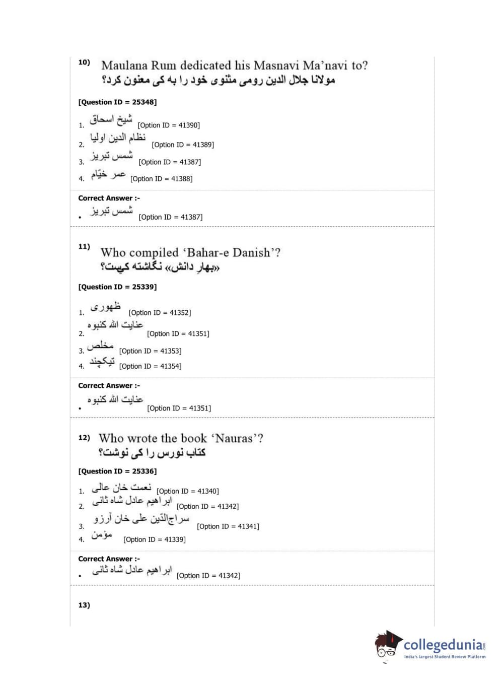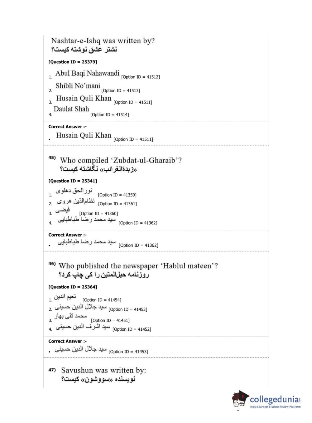 DUET 2019 M.Phil./Ph.D. in Persian Question Paper with Answer Key PDF Shift 2