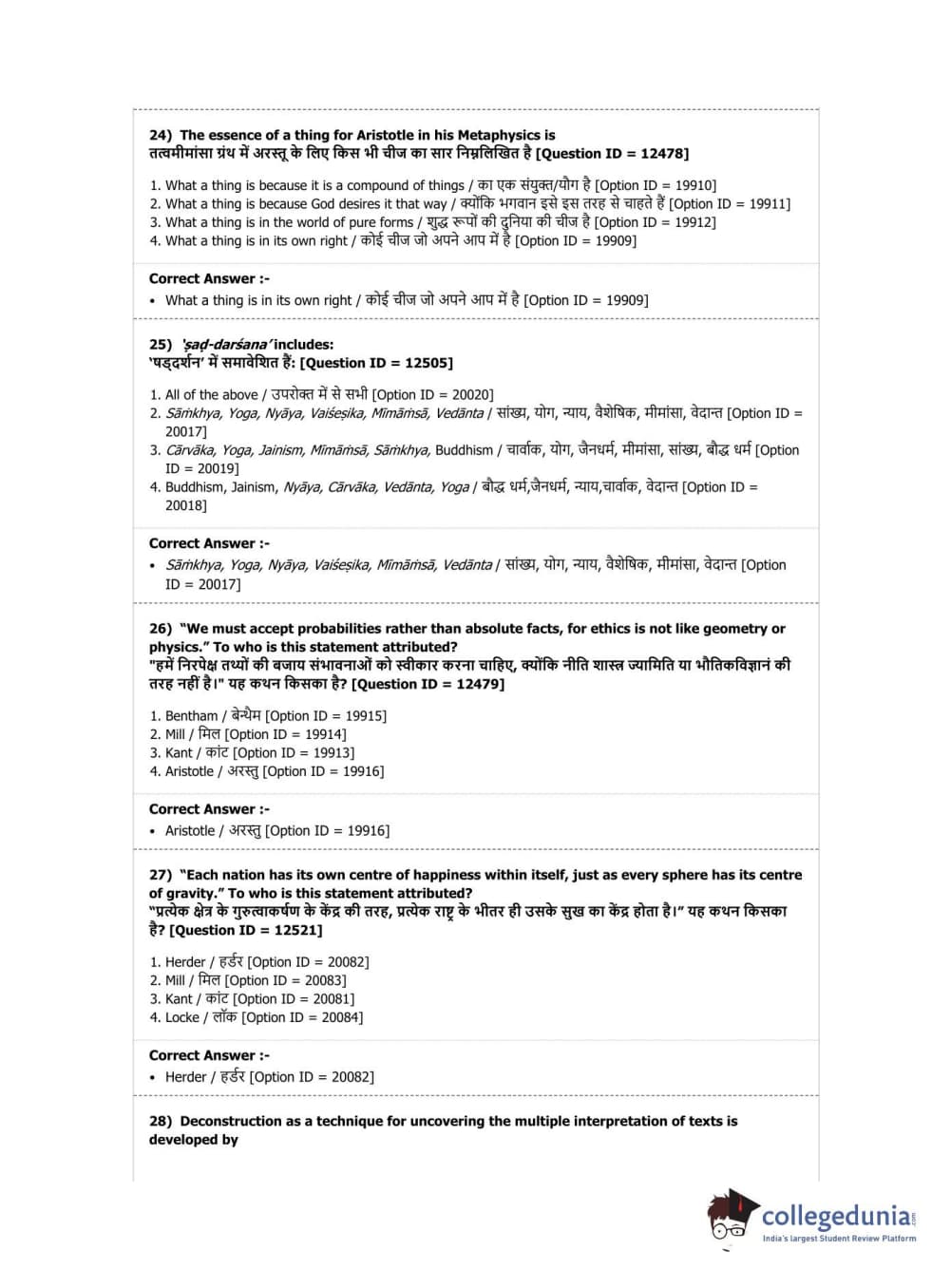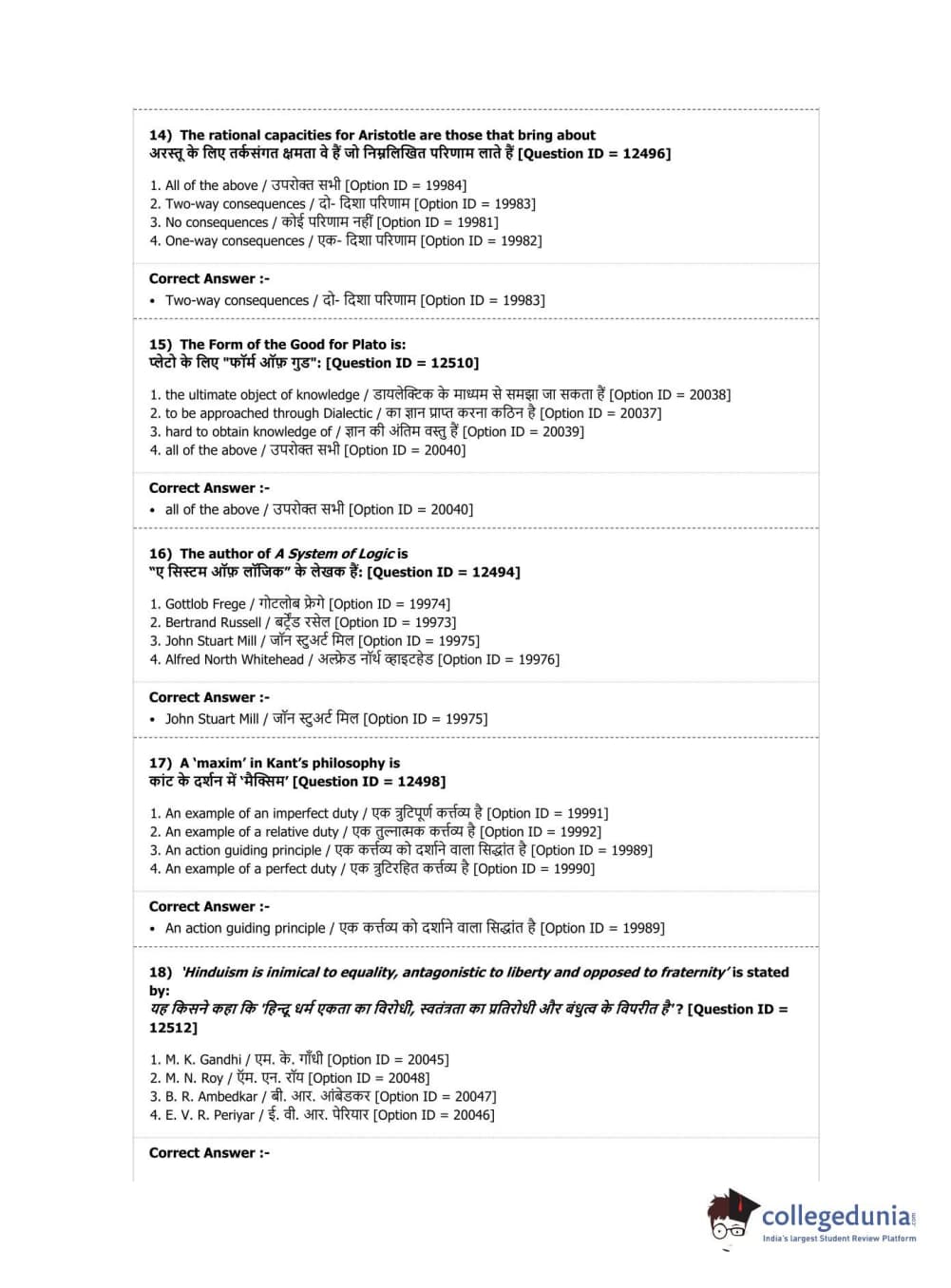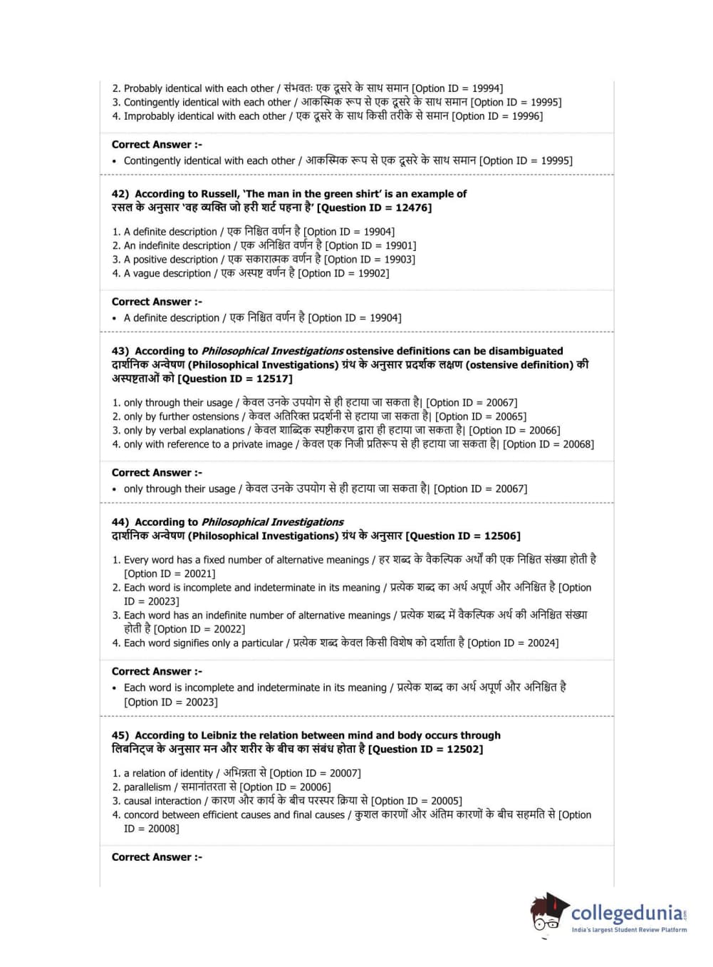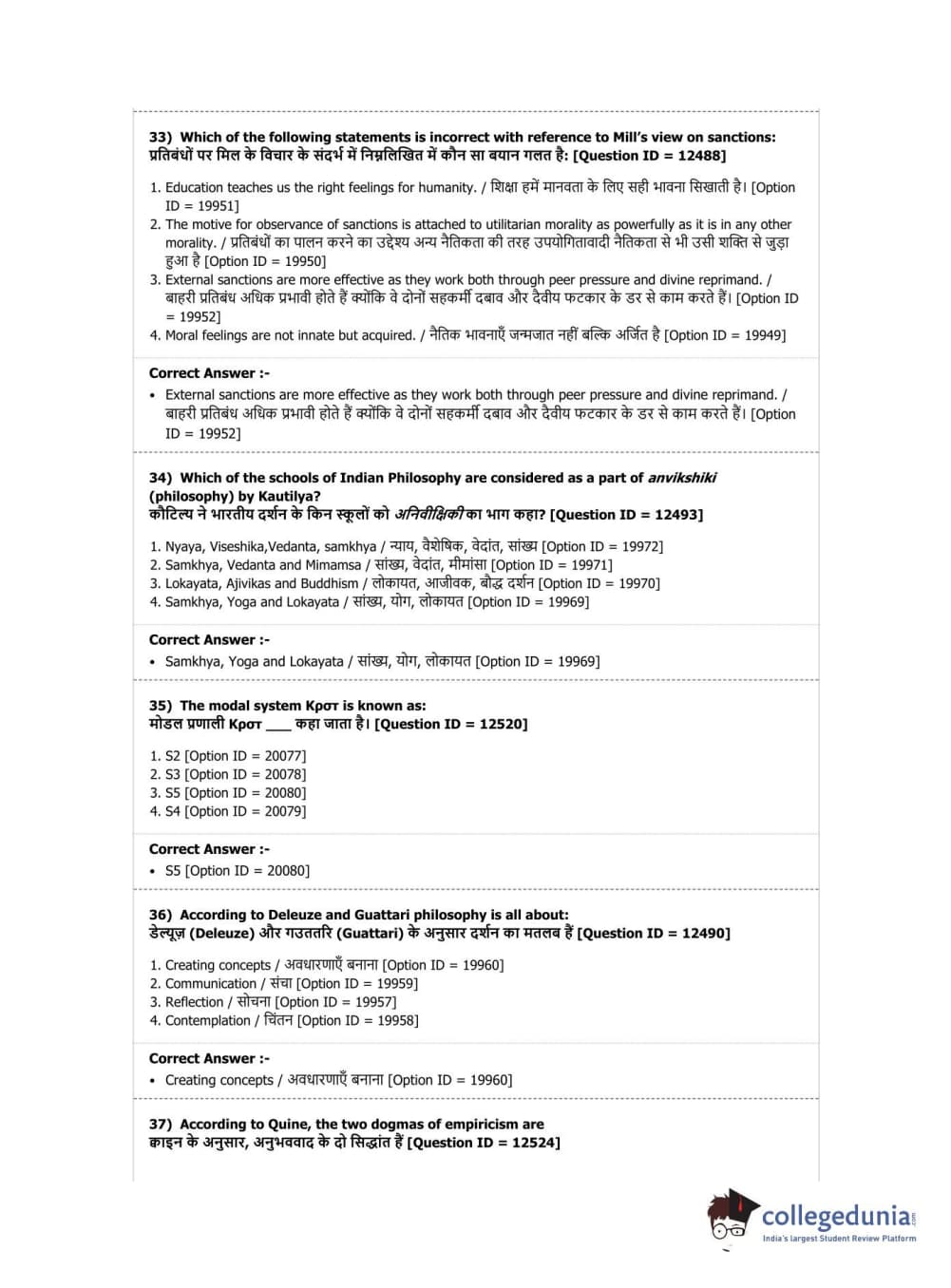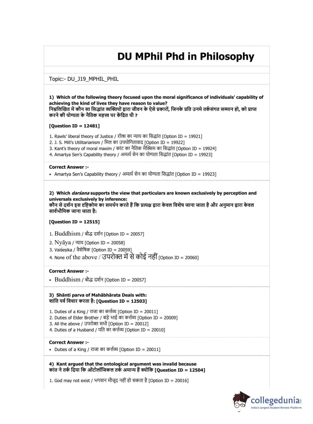 DUET 2019 M.Phil./Ph.D. in Philosophy Question Paper with Answer Key PDF Shift 3