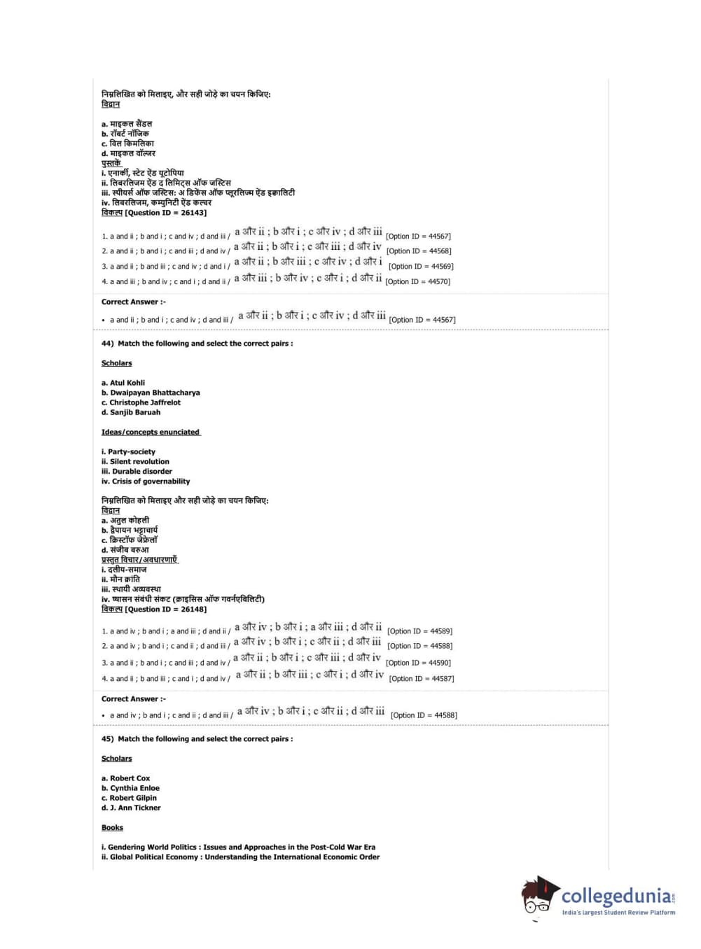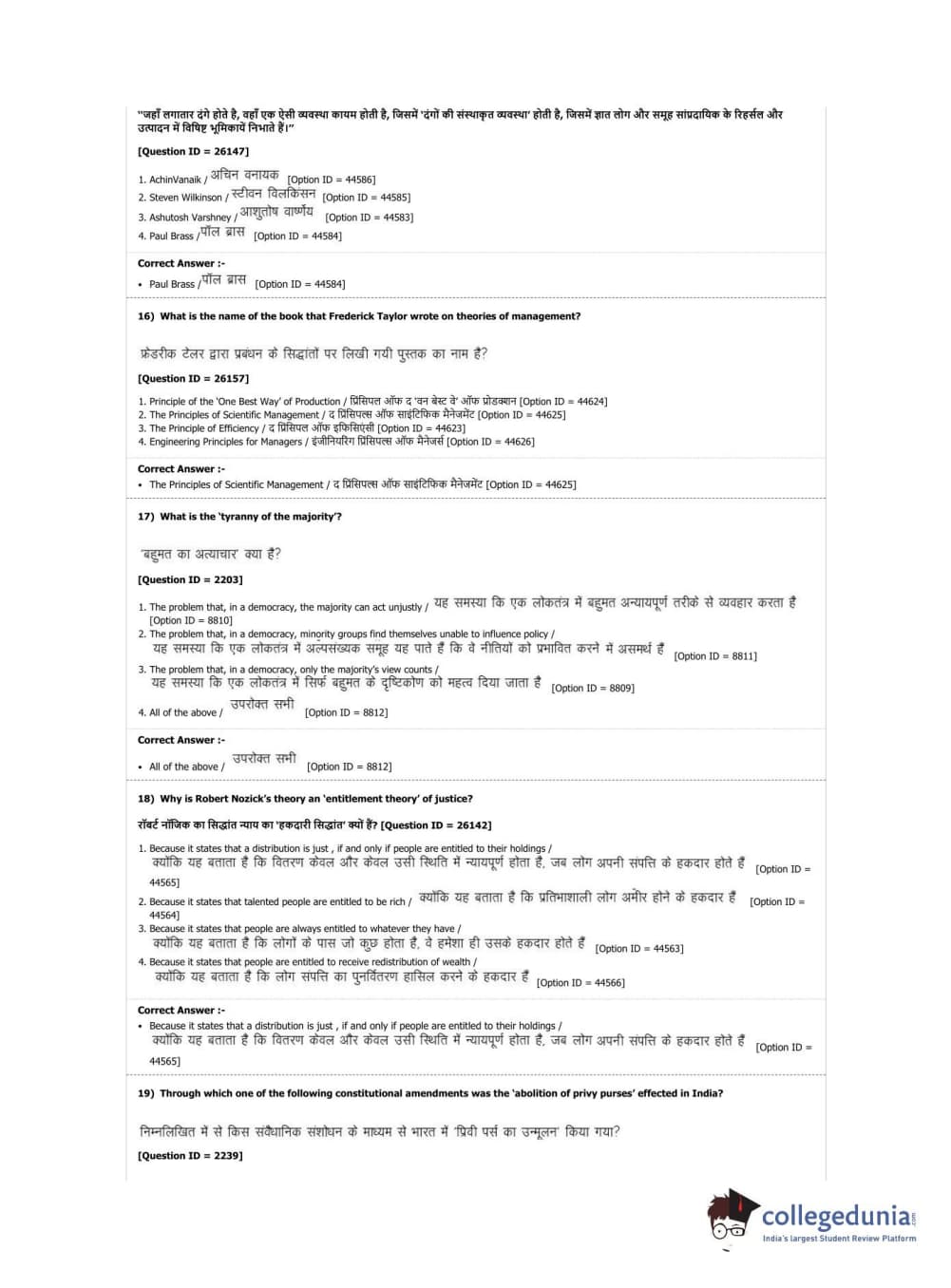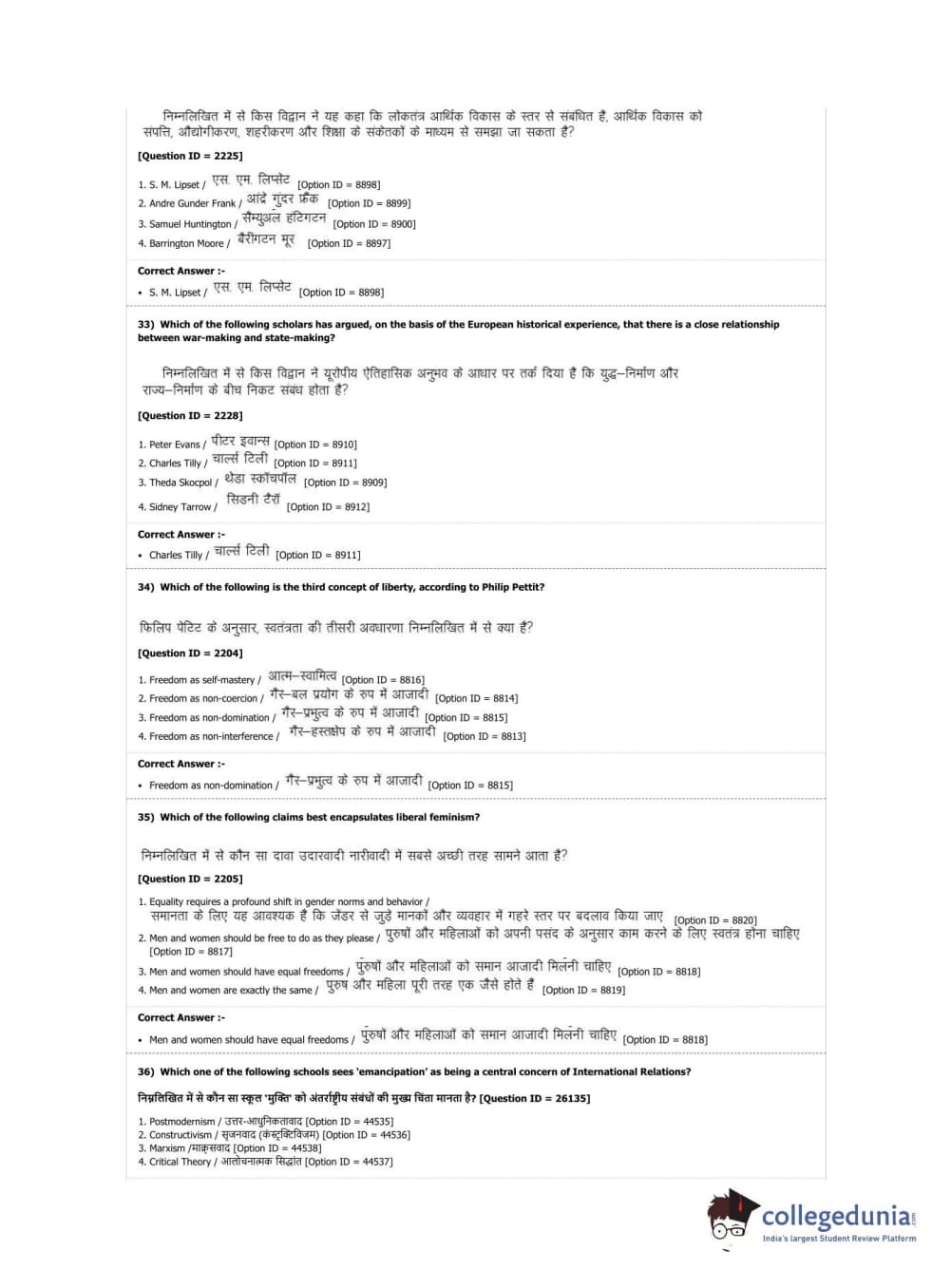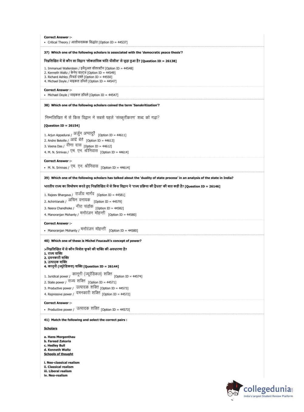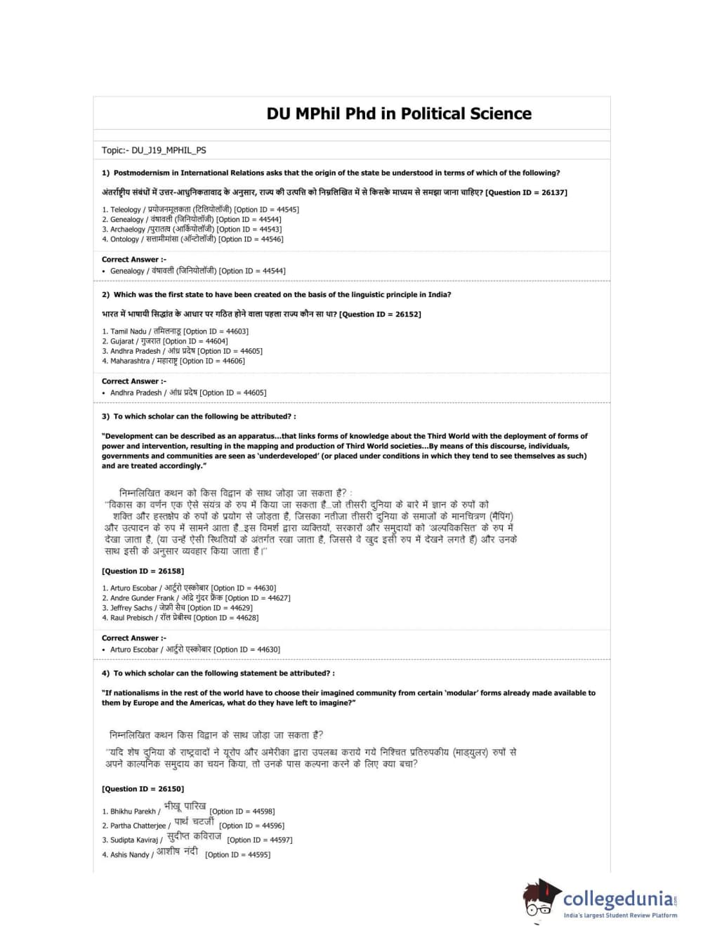 DUET 2019 M.Phil./Ph.D. in Political Science Question Paper with Answer Key PDF Shift 2
