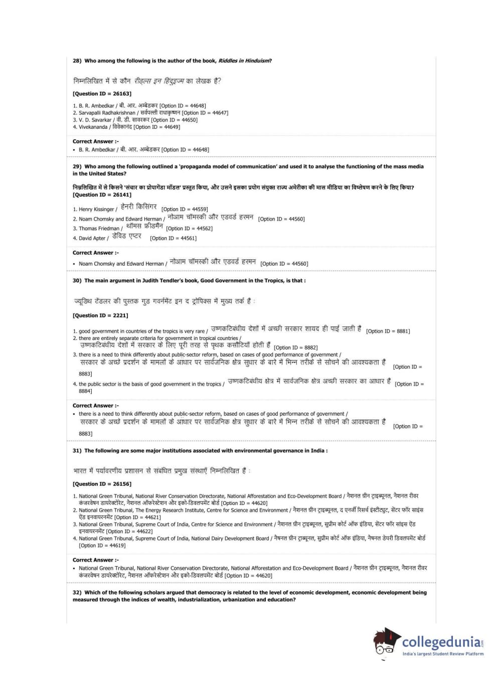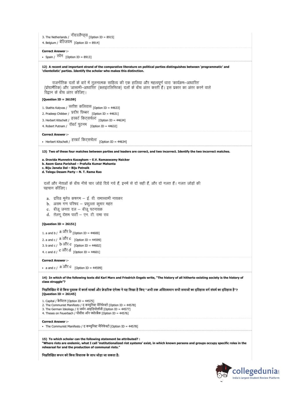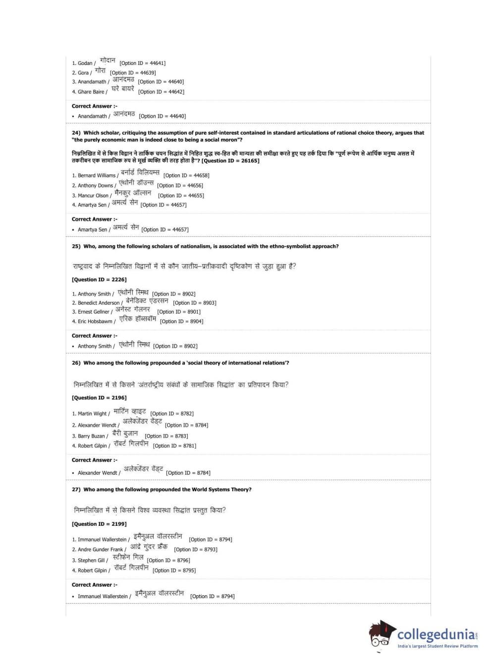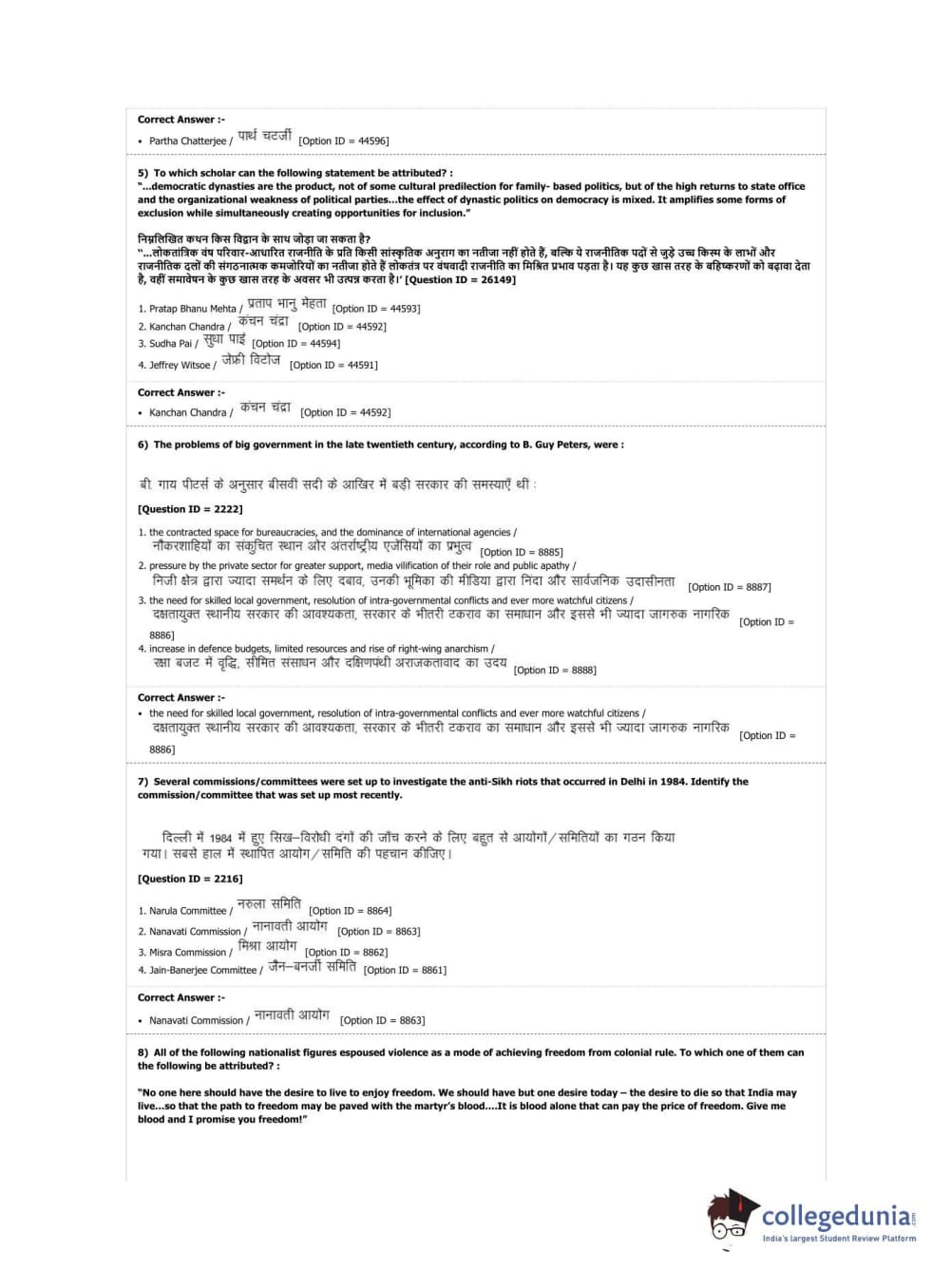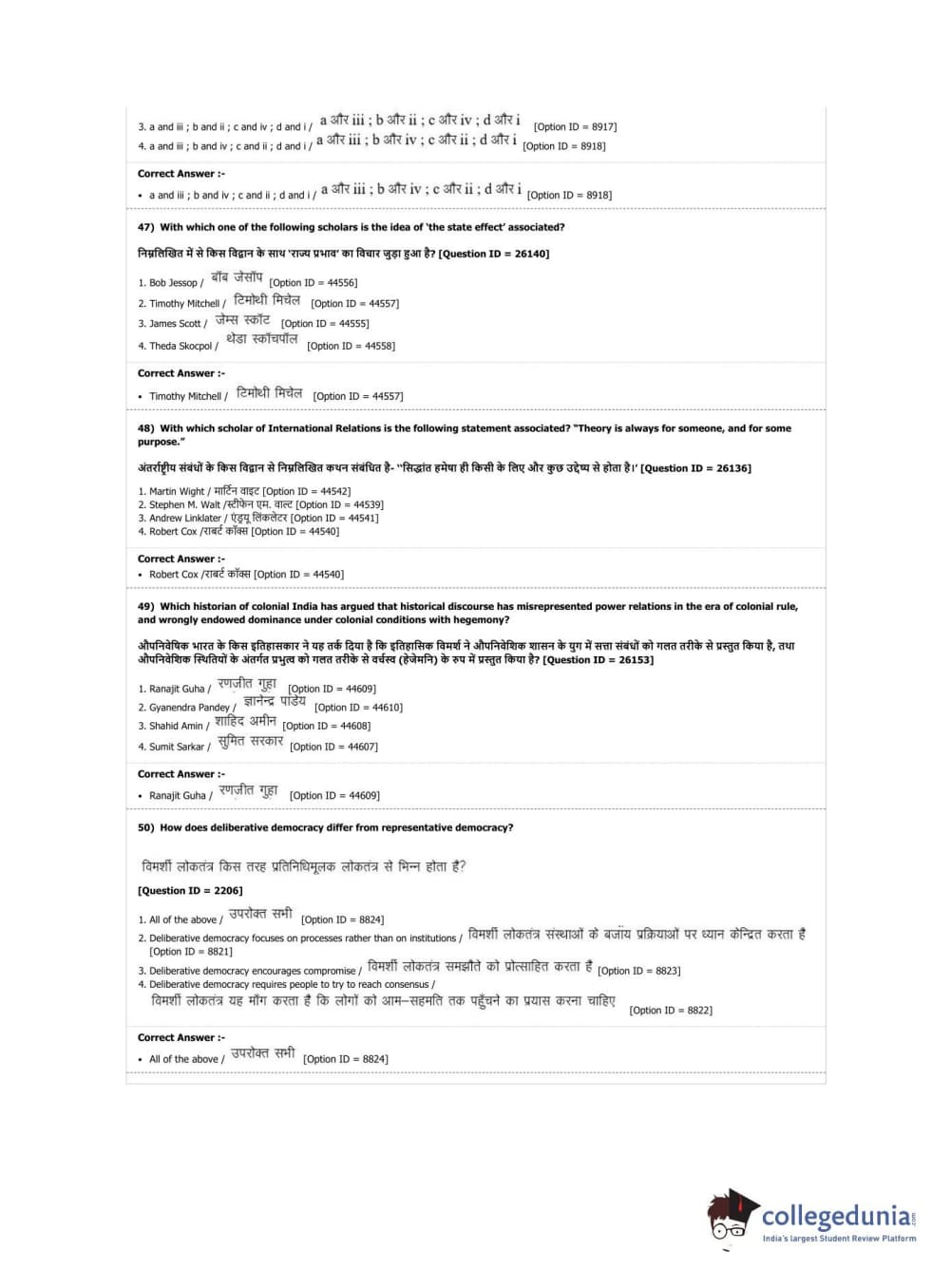DUET 2019 M.Phil./Ph.D. in Political Science Question Paper with Answer Key PDF Shift 2