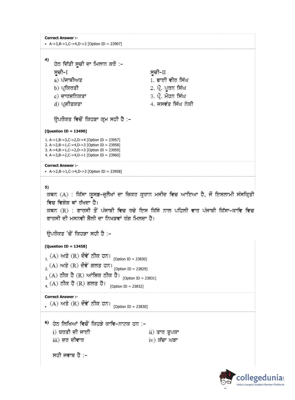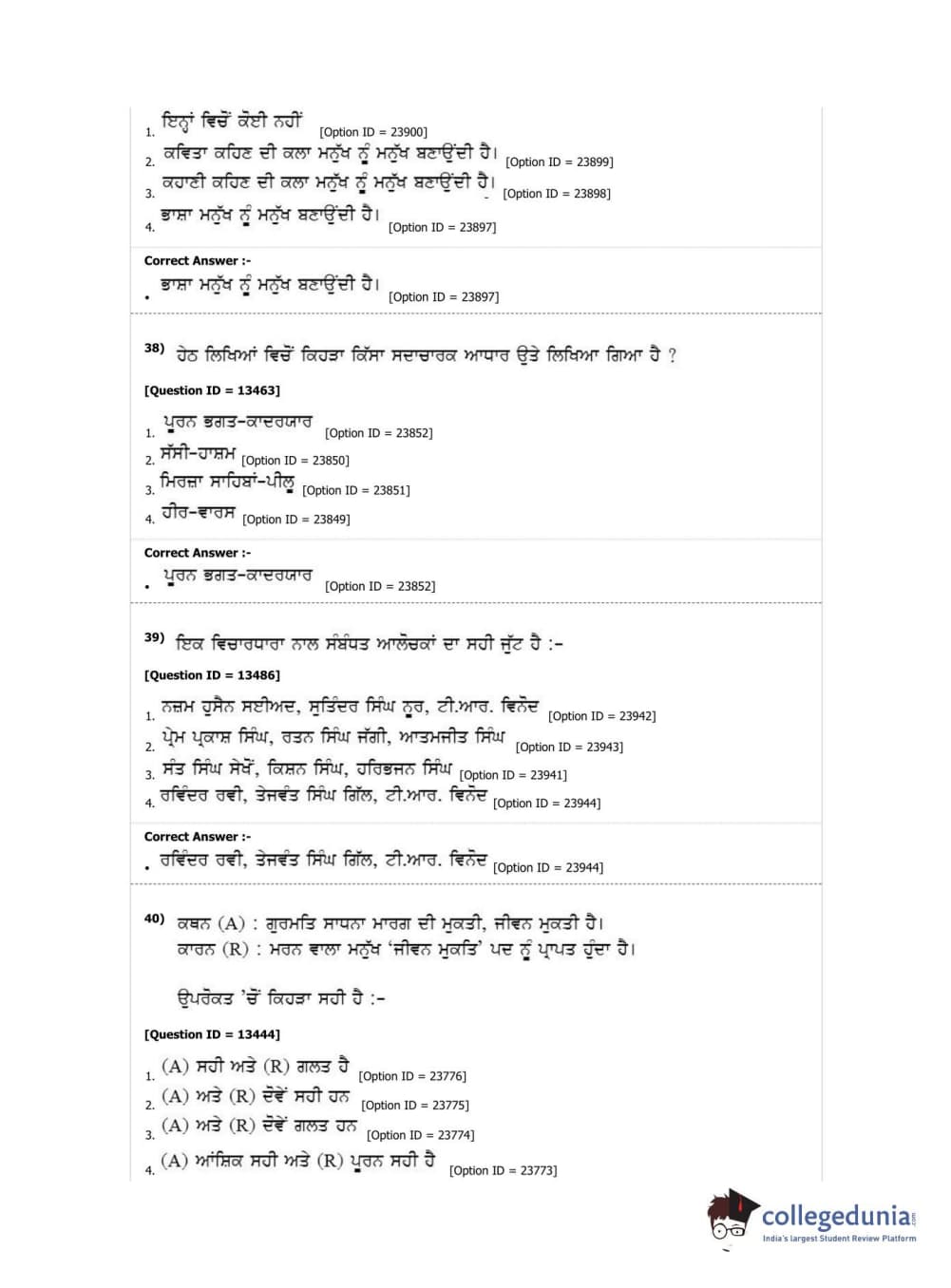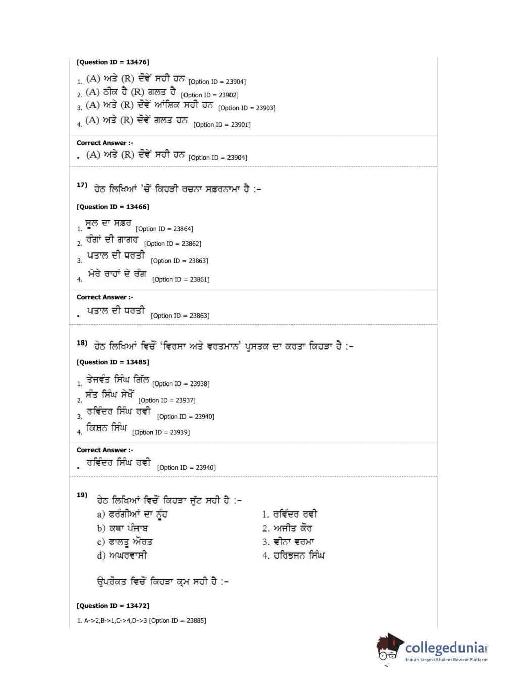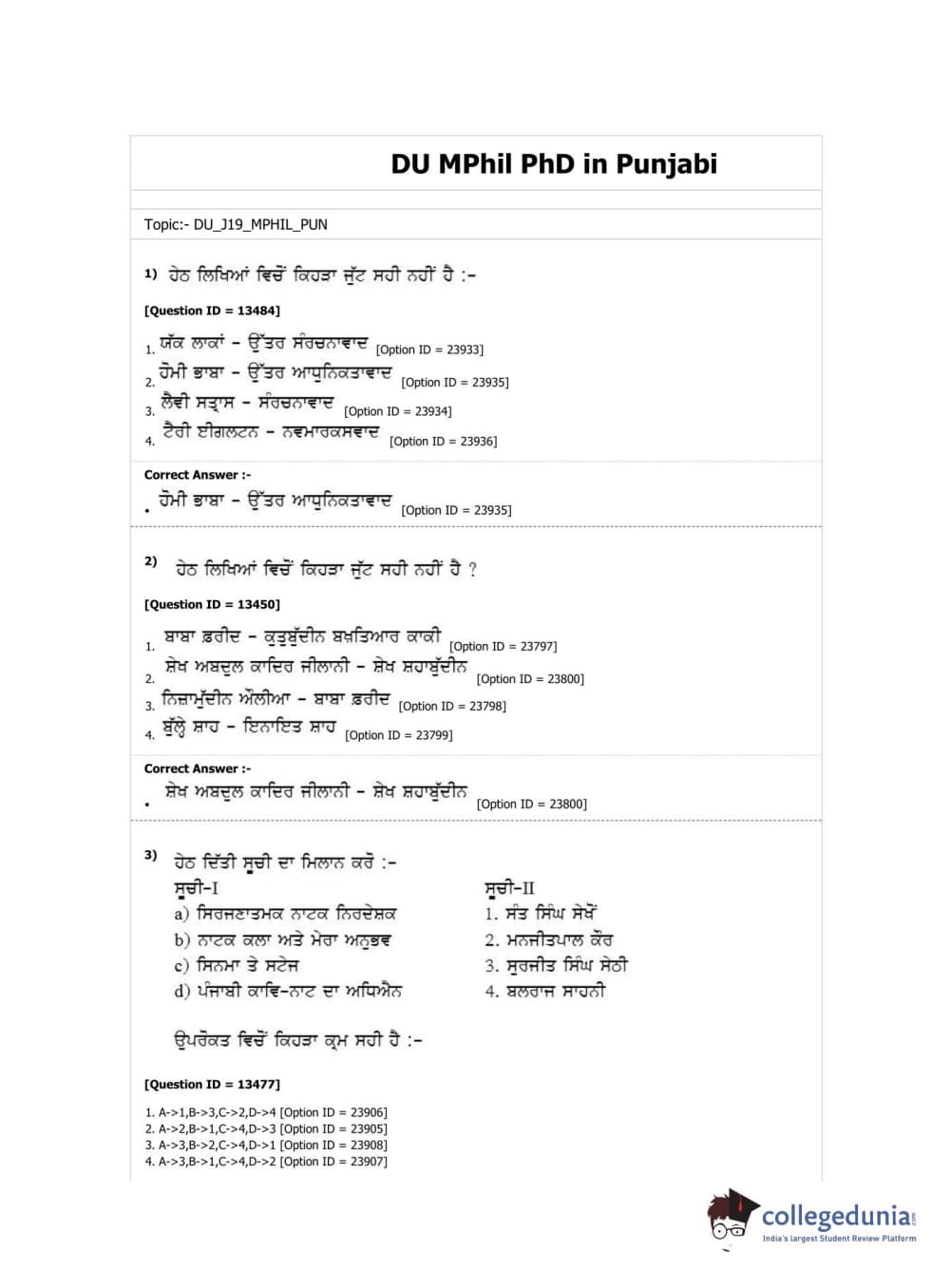 DUET 2019 M.Phil./Ph.D. in Punjabi Question Paper with Answer Key PDF Shift 1