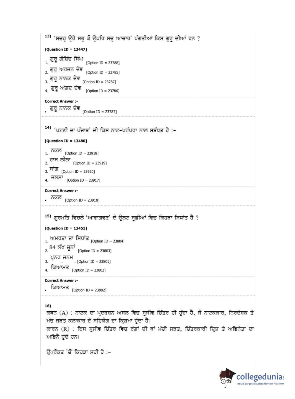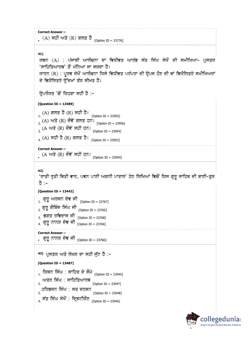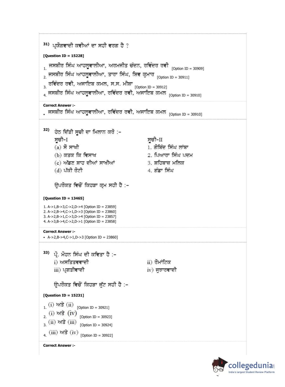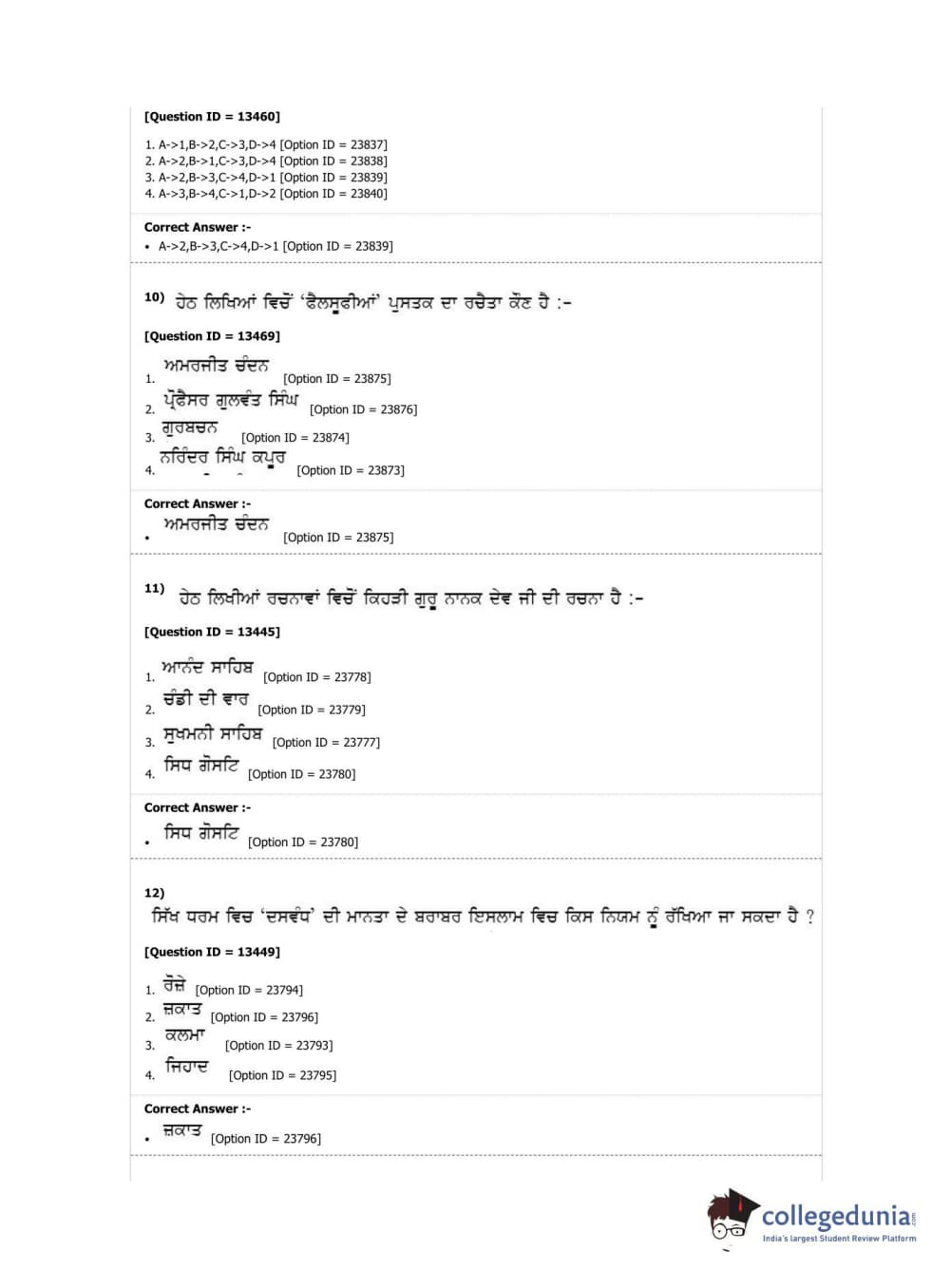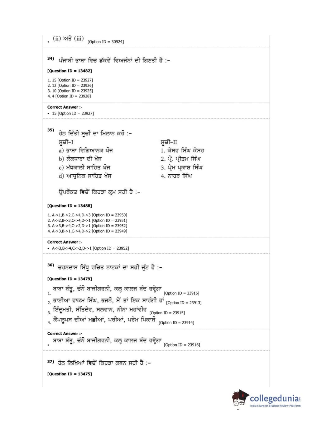 DUET 2019 M.Phil./Ph.D. in Punjabi Question Paper with Answer Key PDF Shift 1