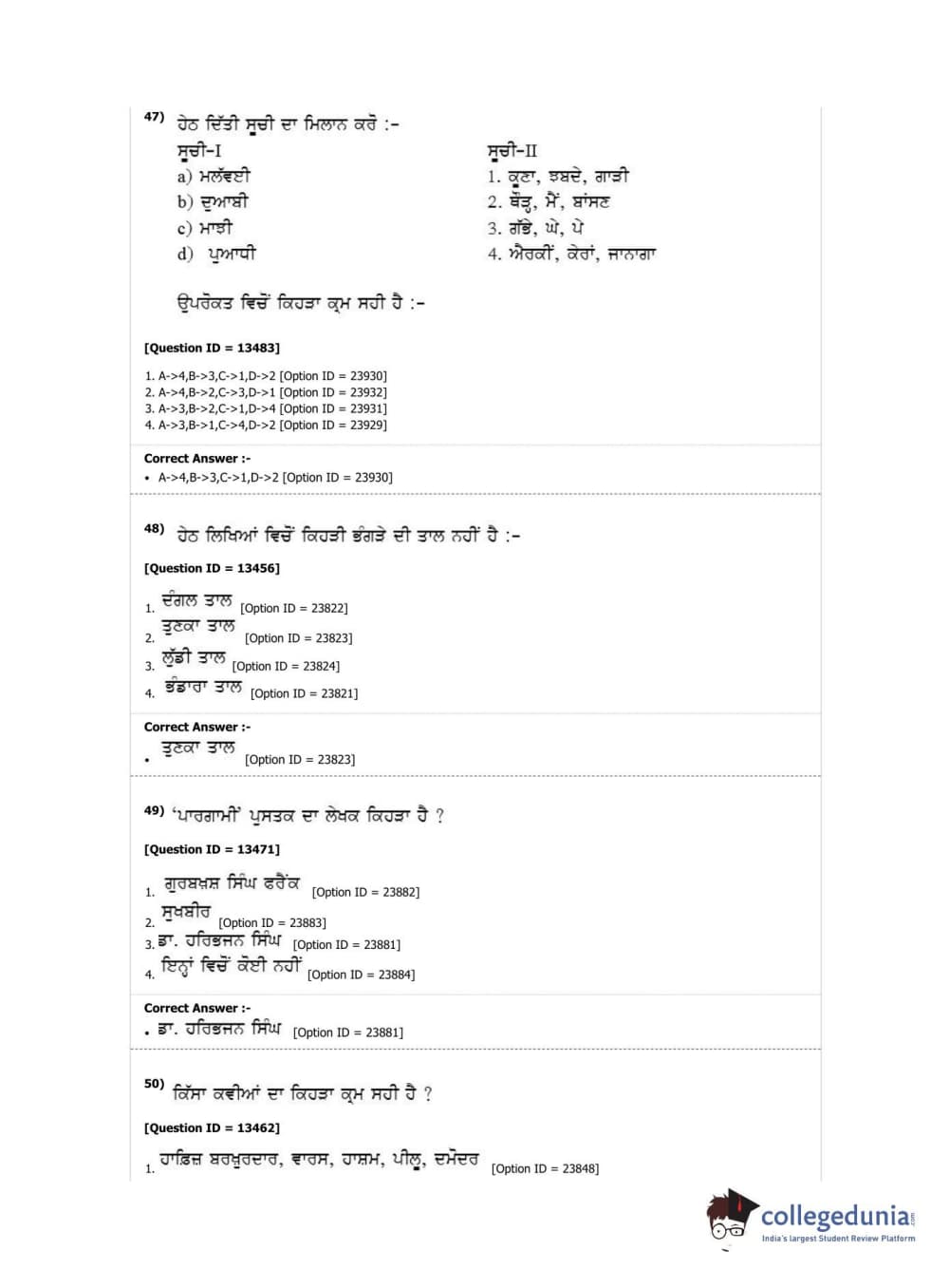 DUET 2019 M.Phil./Ph.D. in Punjabi Question paper with answer key pdf conducted on August 7, 2019 in Shift 1 is available for download. The exam was successfully organized by National Testing Agency (NTA). The question paper comprised a total of 50 questions.